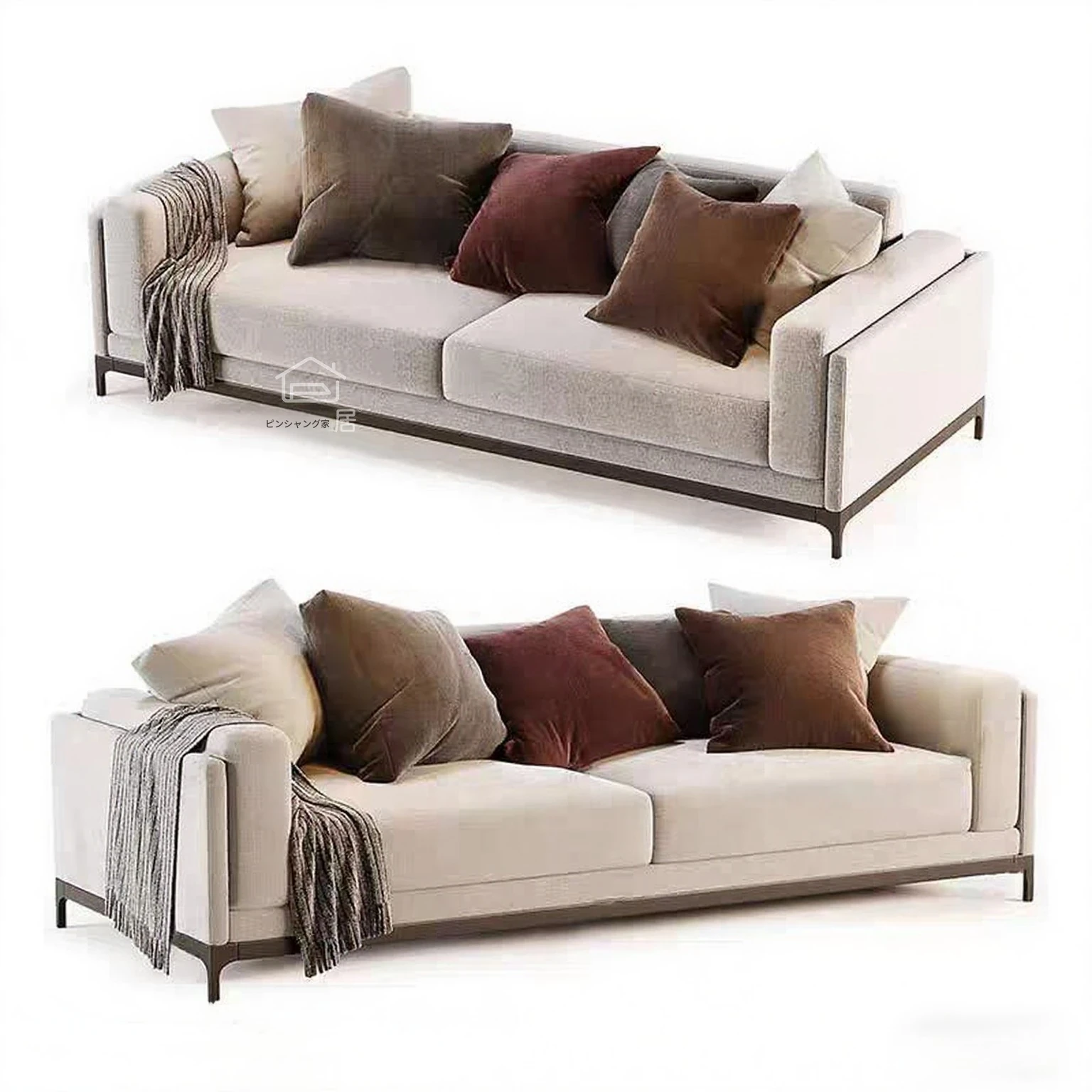 モダンミニマリストデザインのホテル用商談ソファ|販売オフィスの休憩エリアに最適なストレート三人掛けソファ|リビングや別荘にもぴったりなイタリアンスタイルソファ!
