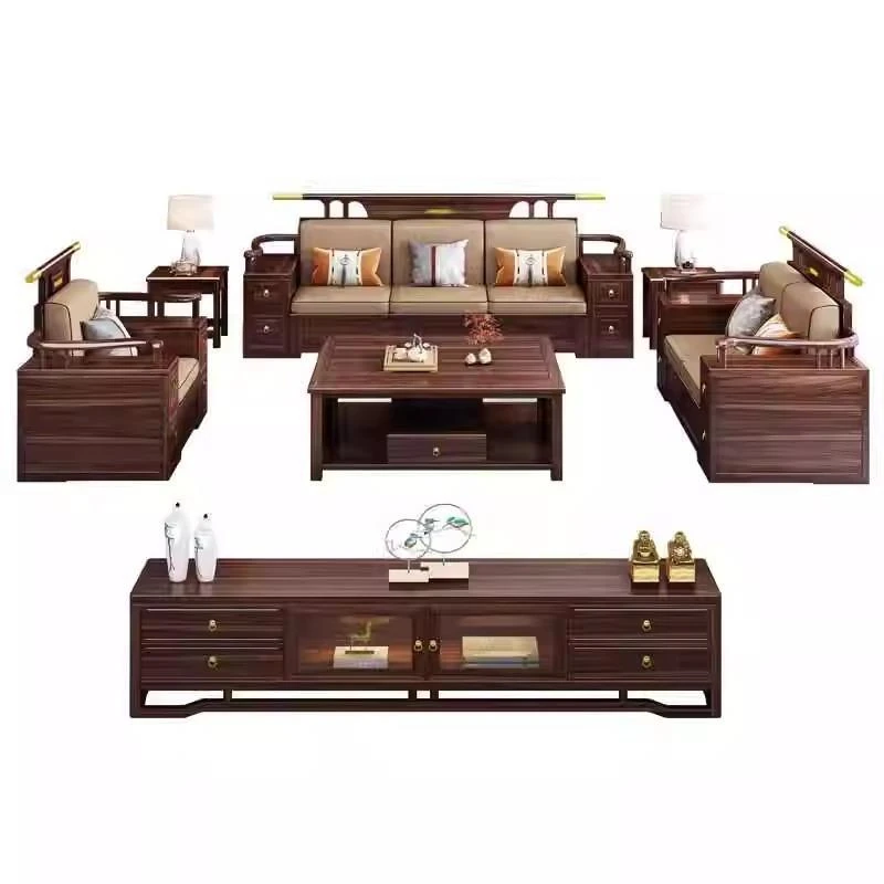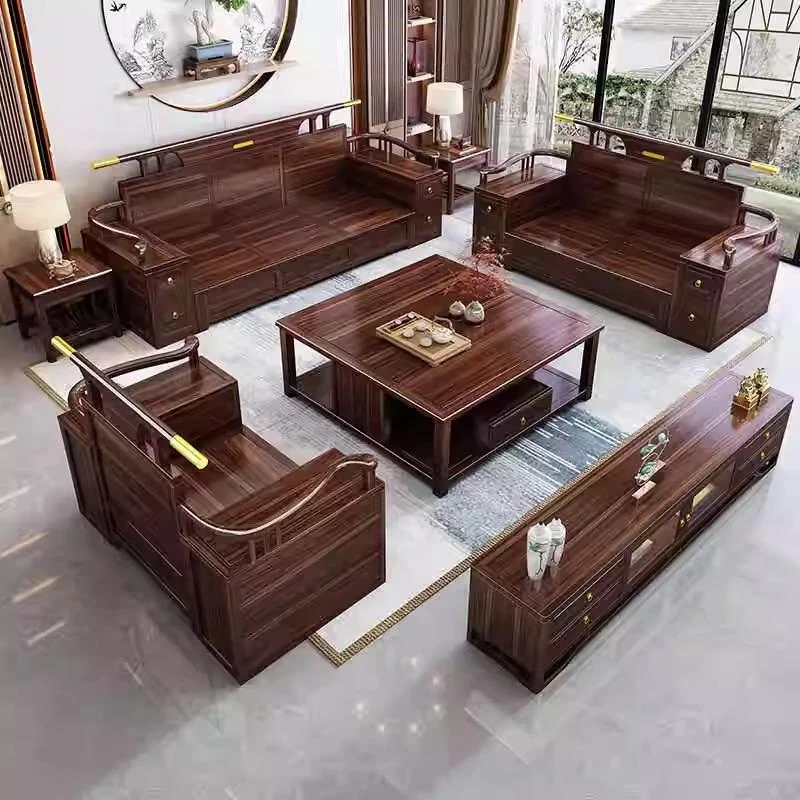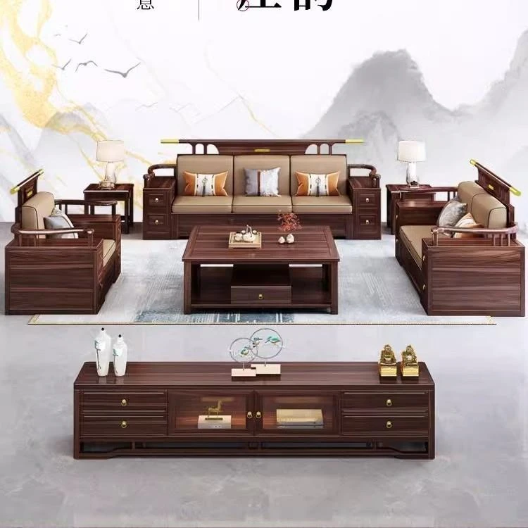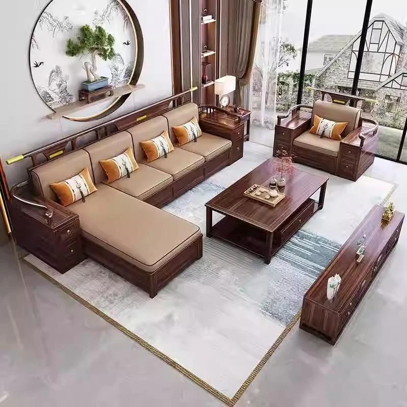 新中式ウッド調ウールブラックソファー - モダンでシンプルなデザイン、大型リビングに最適!収納機能付きの2WAYコンビネーション、工場直送でお得に手に入れよう!