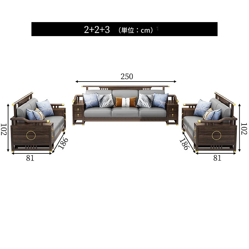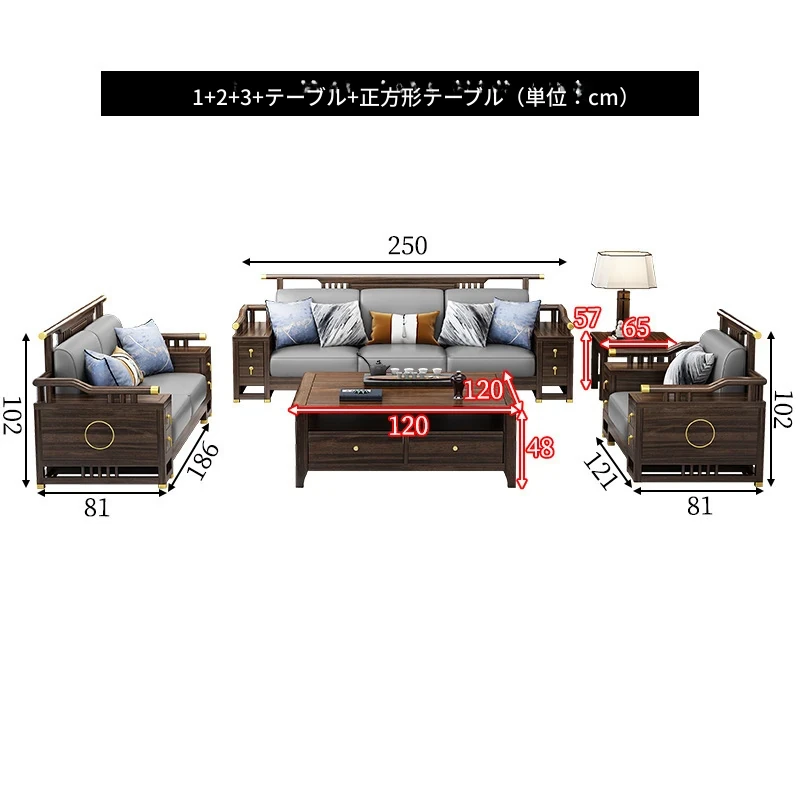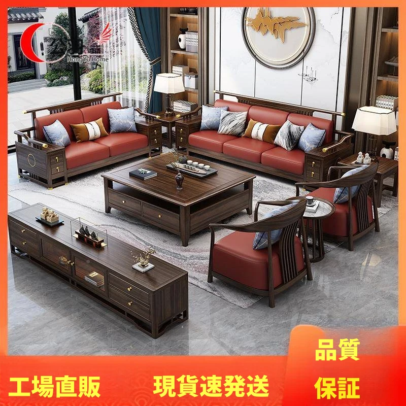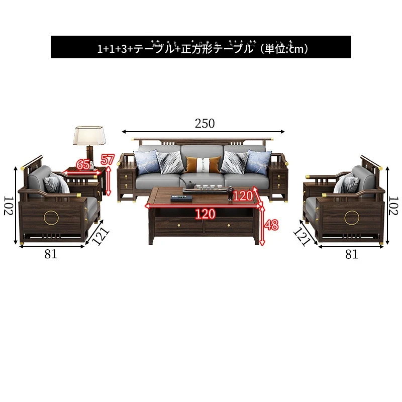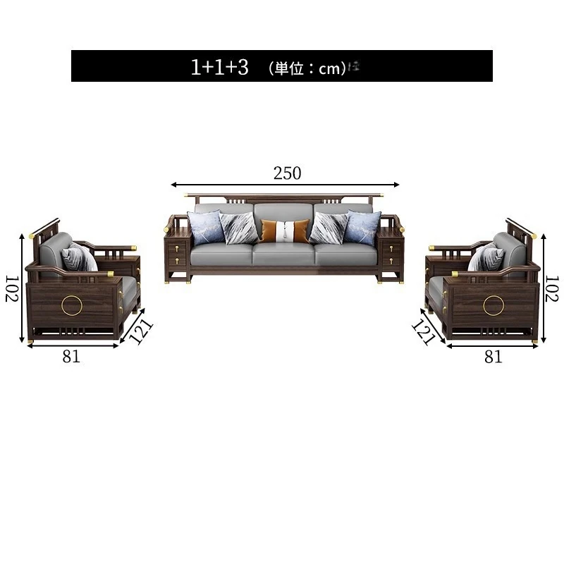 新中式デザインの金木製実木ソファセット - モダンでシンプルな小型住宅向け、軽やかなウ布カバーと木質の豪華感を兼ね備えた5013リビングルーム用ソファ。快適な座り心地とスタイリッシュな空間を実現します!