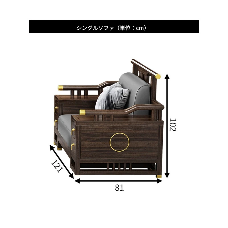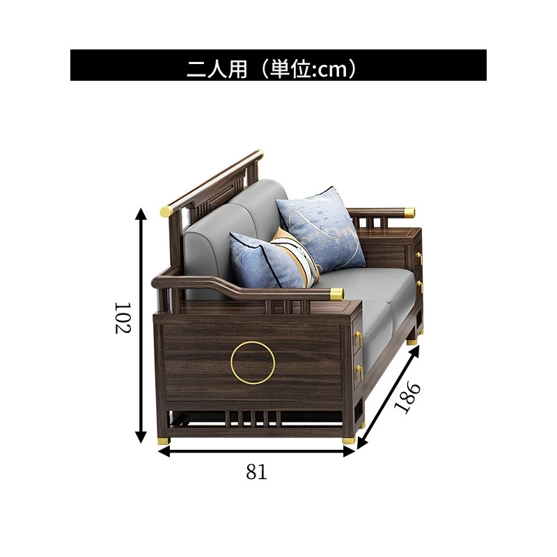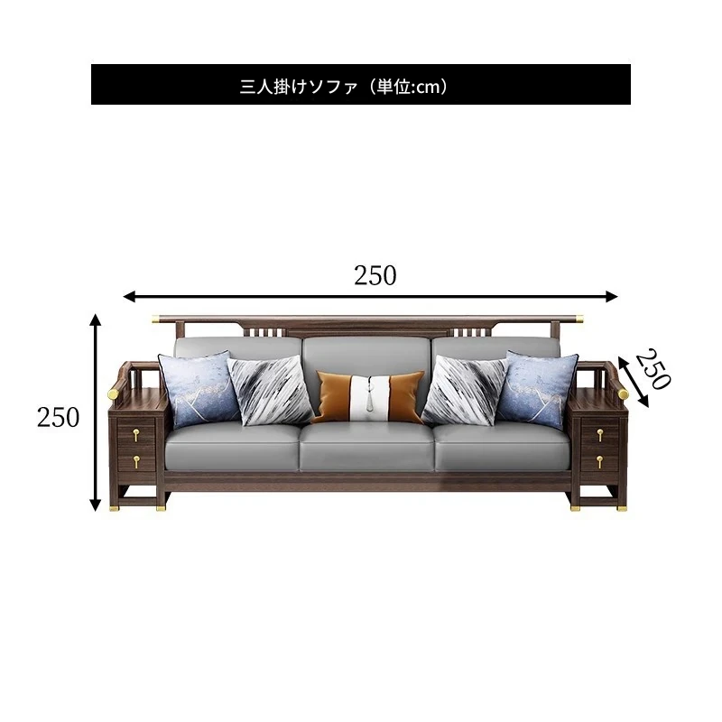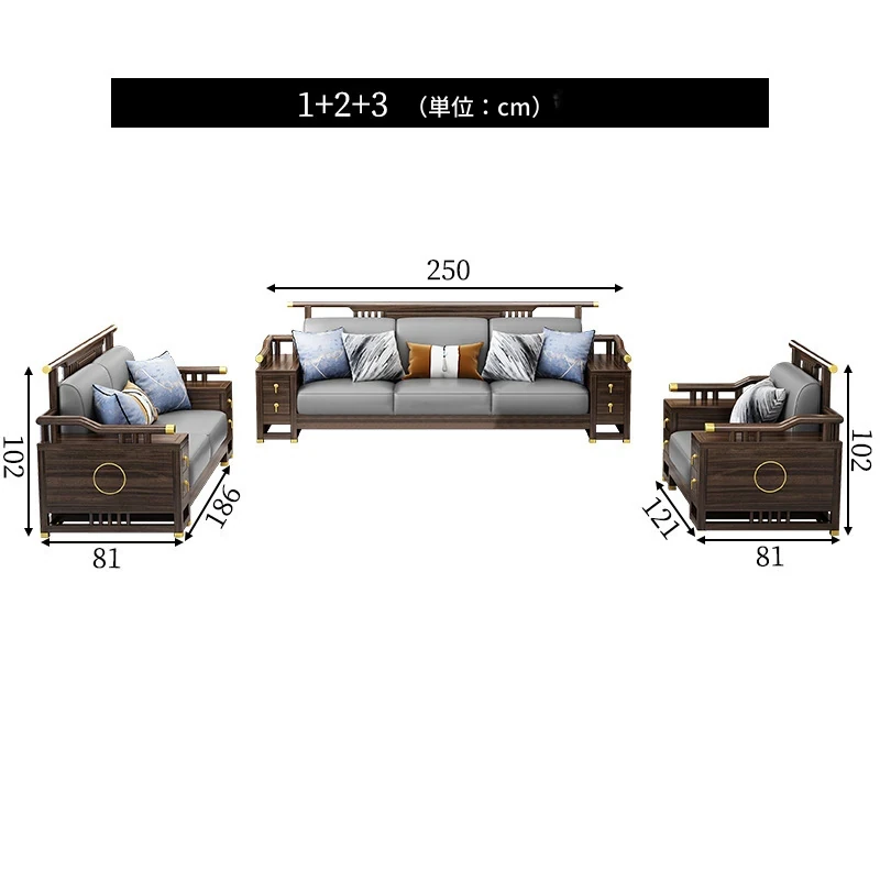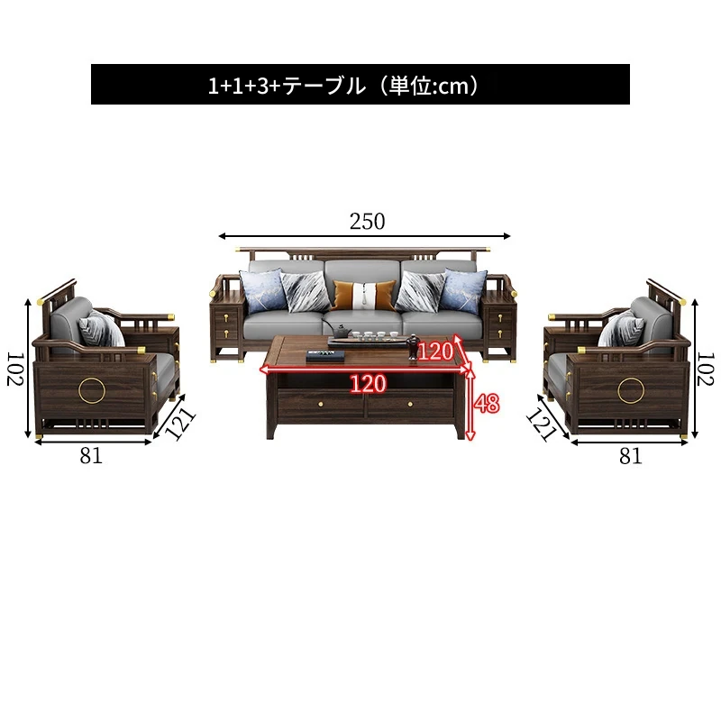 新中式デザインの金木製実木ソファセット - モダンでシンプルな小型住宅向け、軽やかなウ布カバーと木質の豪華感を兼ね備えた5013リビングルーム用ソファ。快適な座り心地とスタイリッシュな空間を実現します!