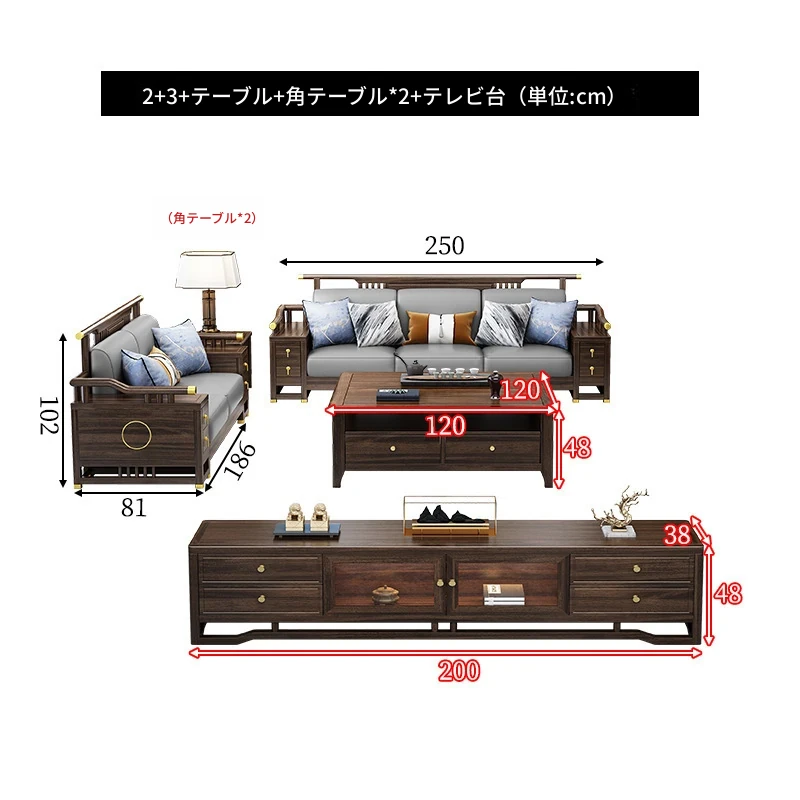 2+3+コーヒーテーブル+正方形テーブル*2+3点セット+テレビボード