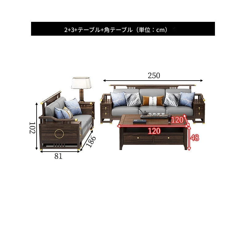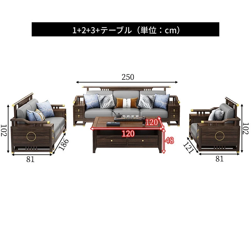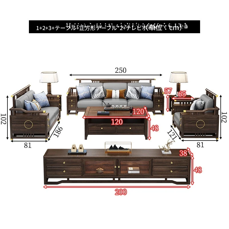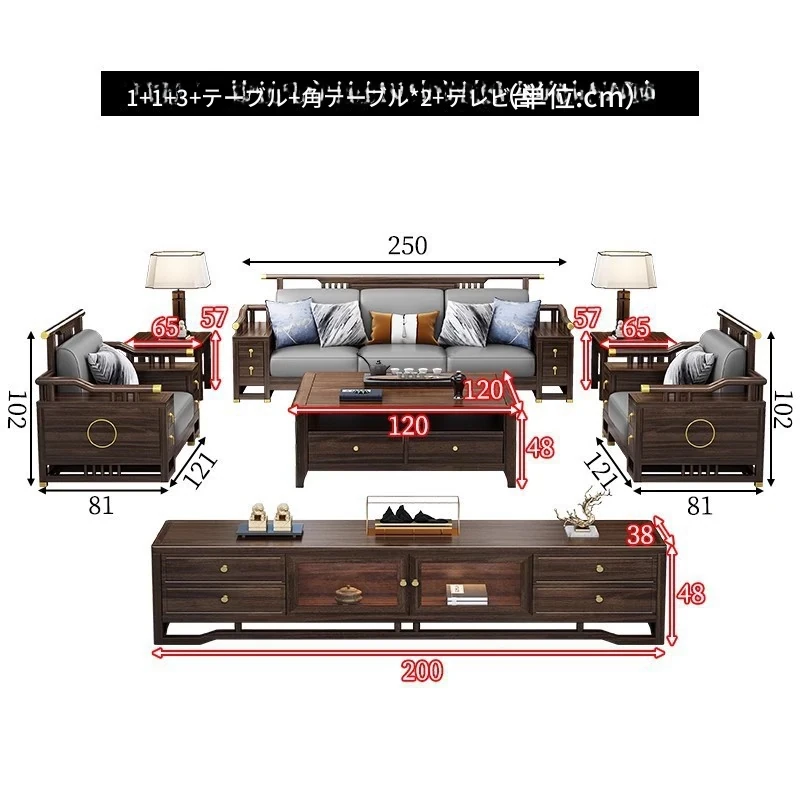 フォースソファ+ティーキャビネット+貴妃椅子+コーヒーテーブル