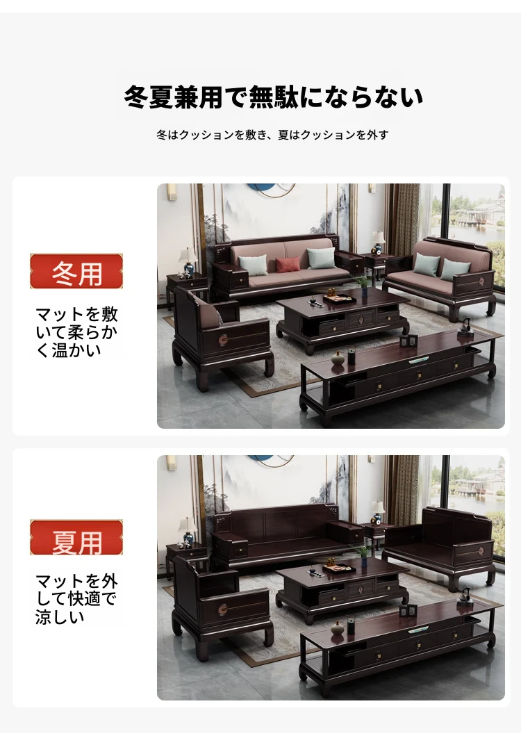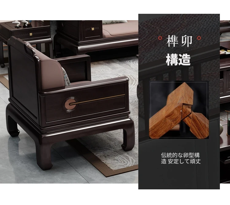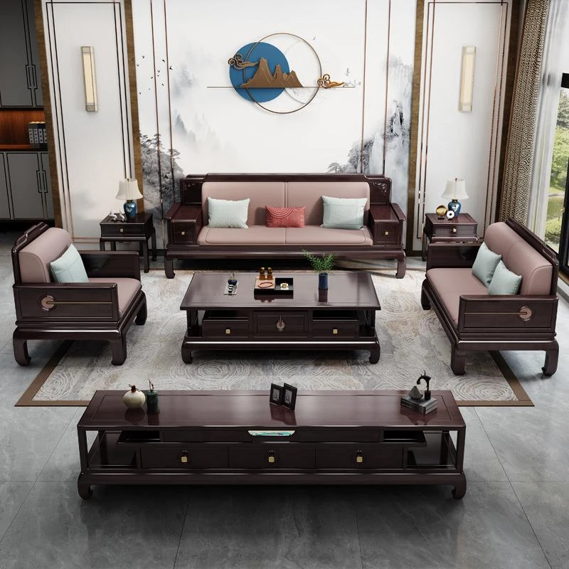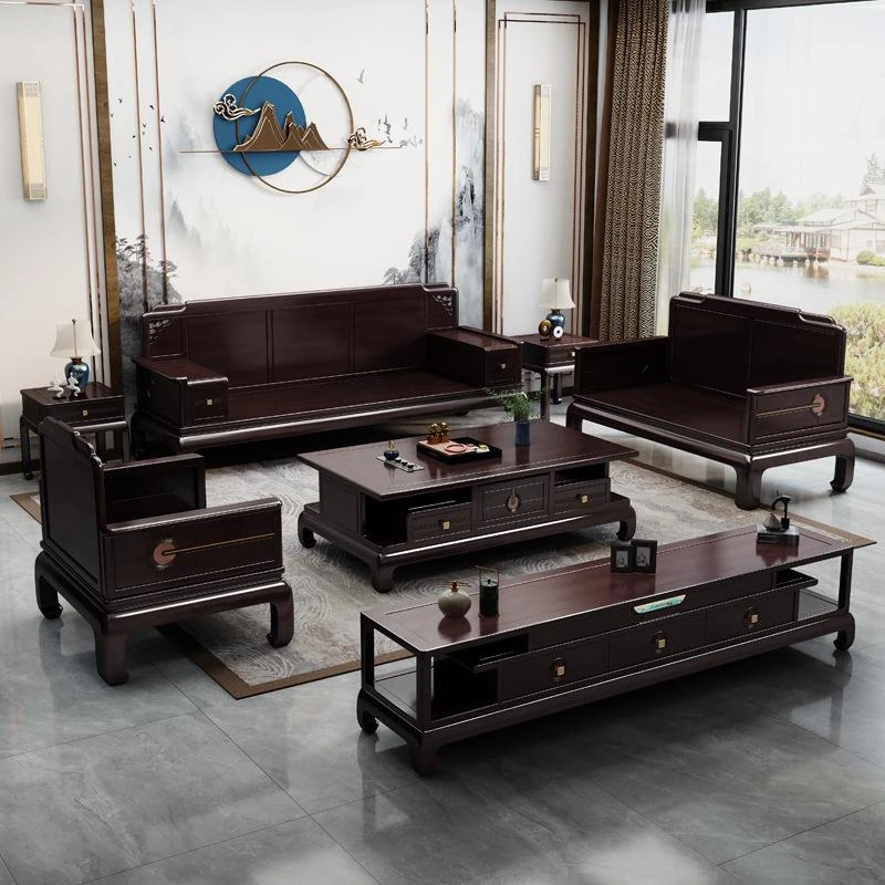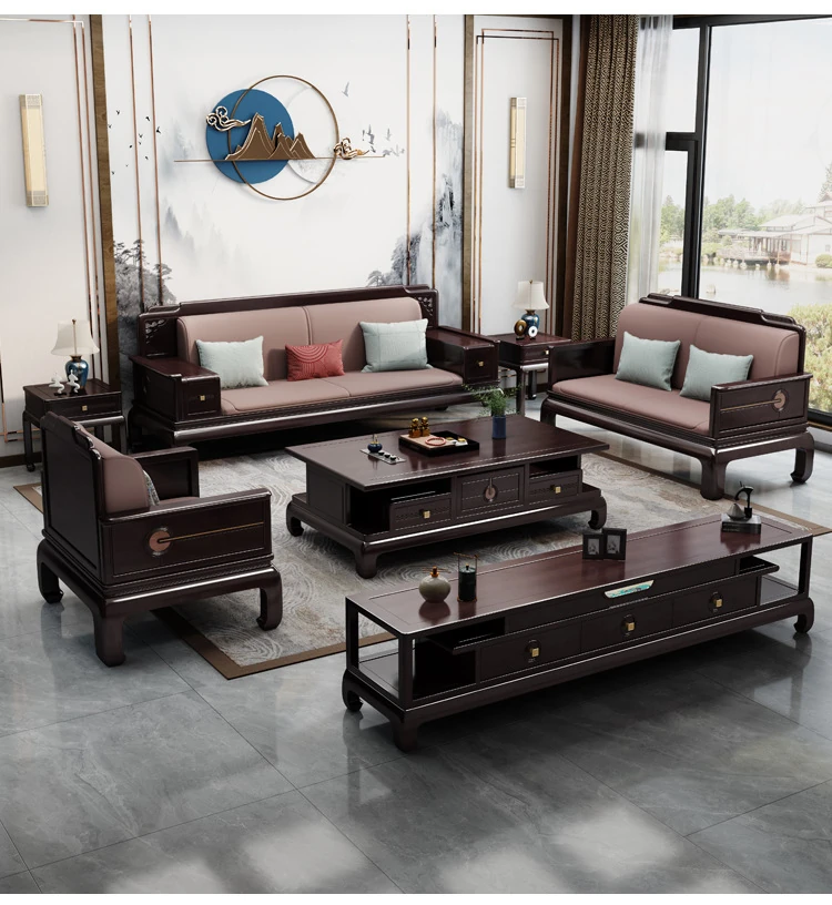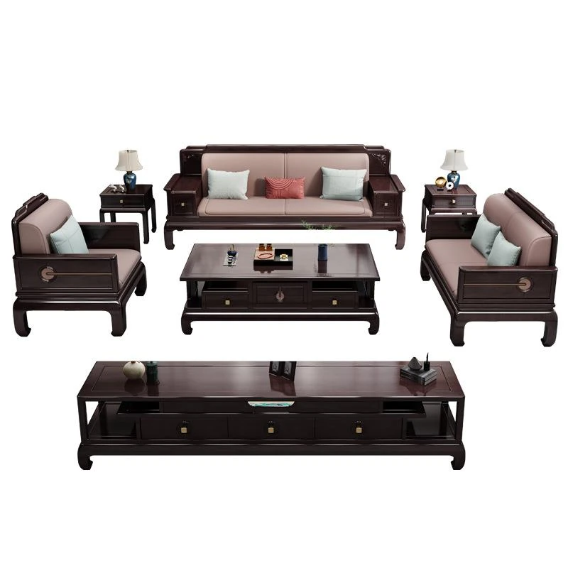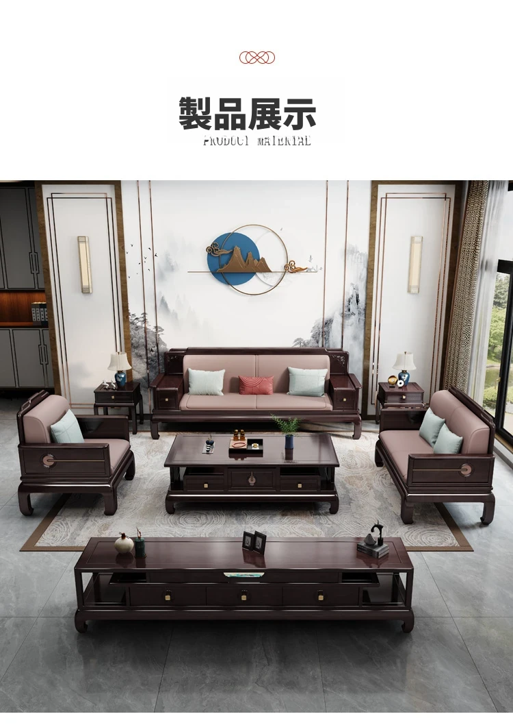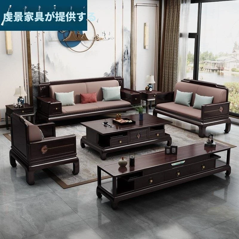 新中式スタイルの全木製ソファセット|モダンでシンプルなデザイン|古典的な中式リビングにぴったり|大小様々な部屋に対応したフルセット家具で、上質なひとときを演出します!