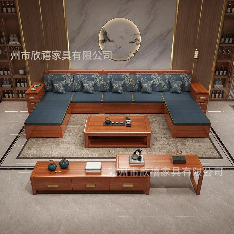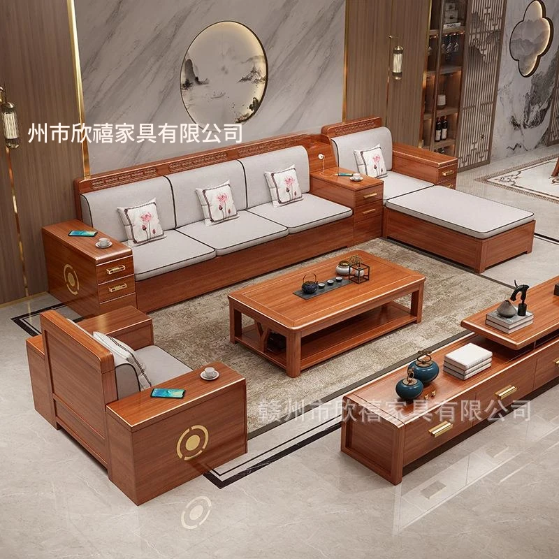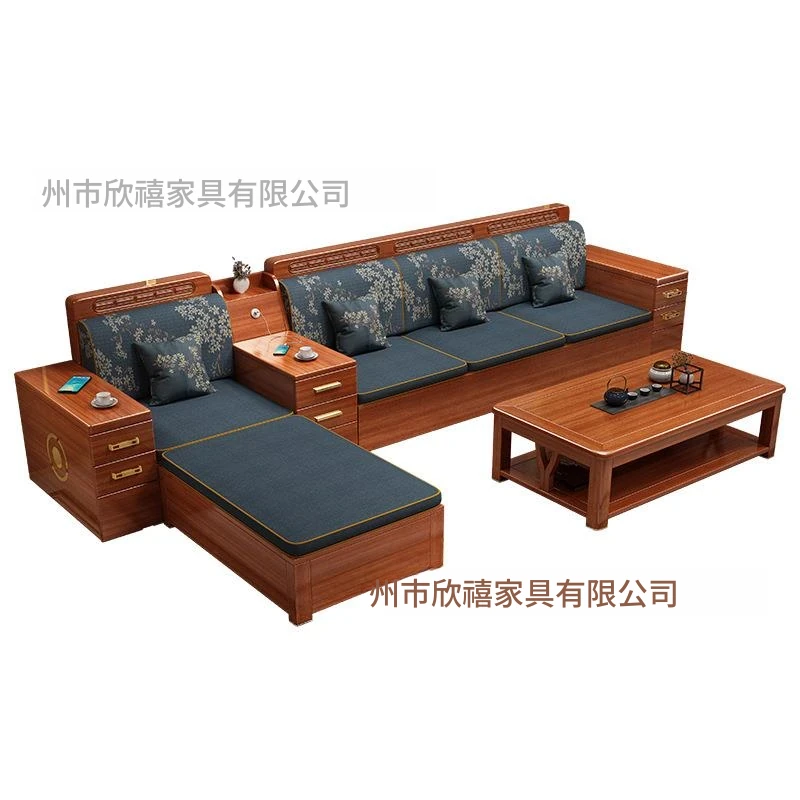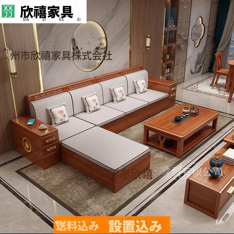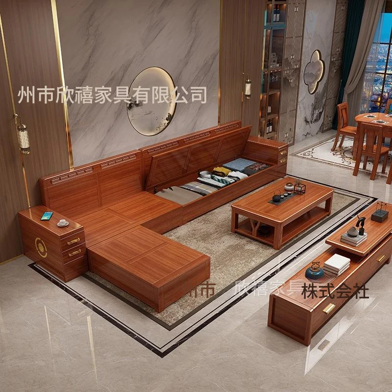 新中式デザインの高級ソファ、ウエスタンウォールナット材使用!現代的でシンプルなスタイルの角型貴妃ソファ、収納機能付き。小さなリビングにもぴったりなコンパクトサイズで、快適な空間を演出します!