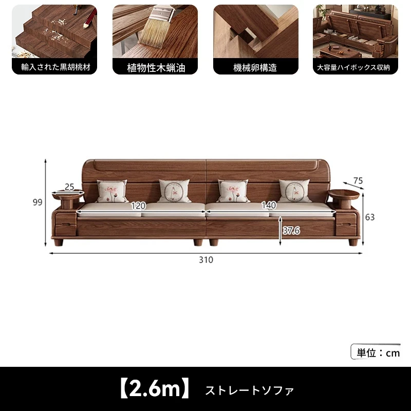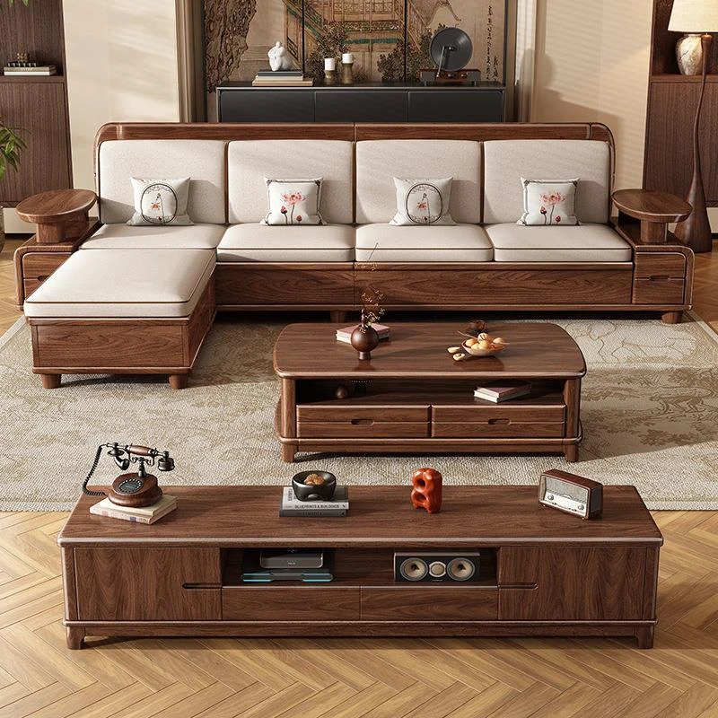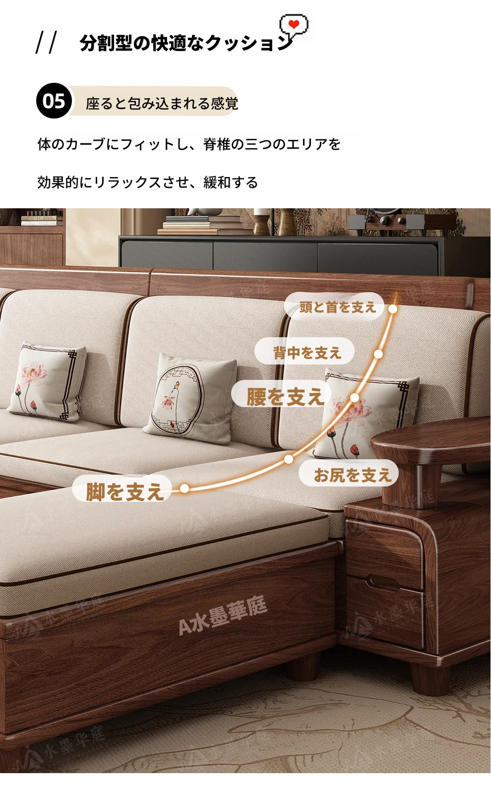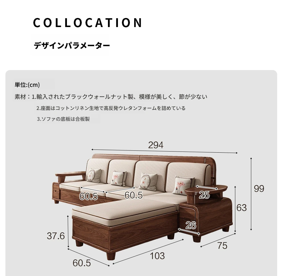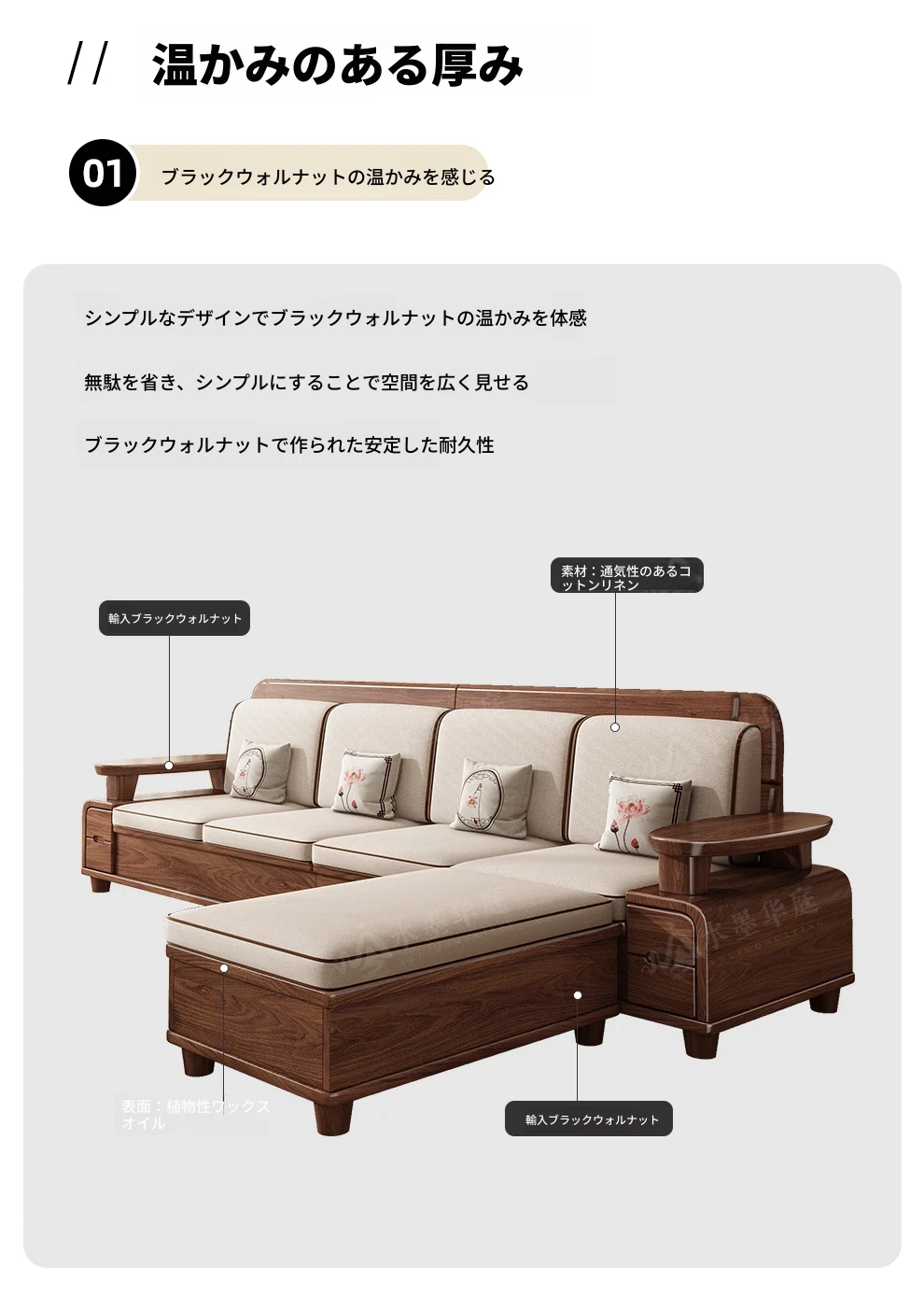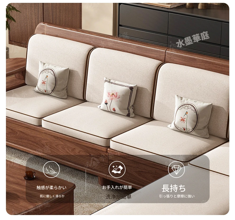 新中式スタイルのブラックウォールナット無垢材ソファー|コンパクトな高箱デザインで小さなリビングにも最適!モダンでシンプルな家具、洗練された空間を演出します。
