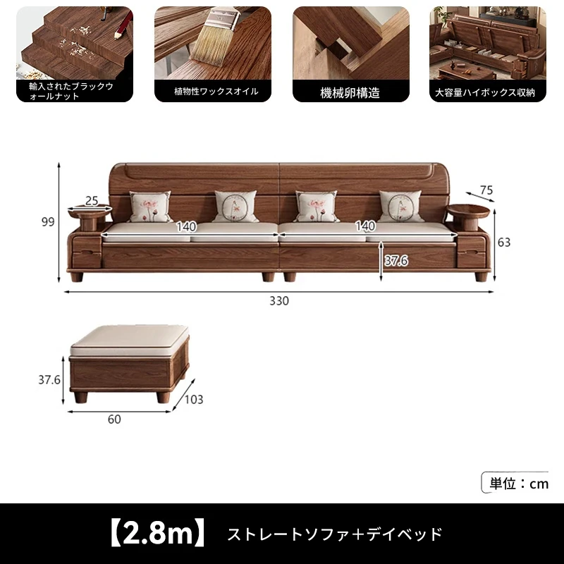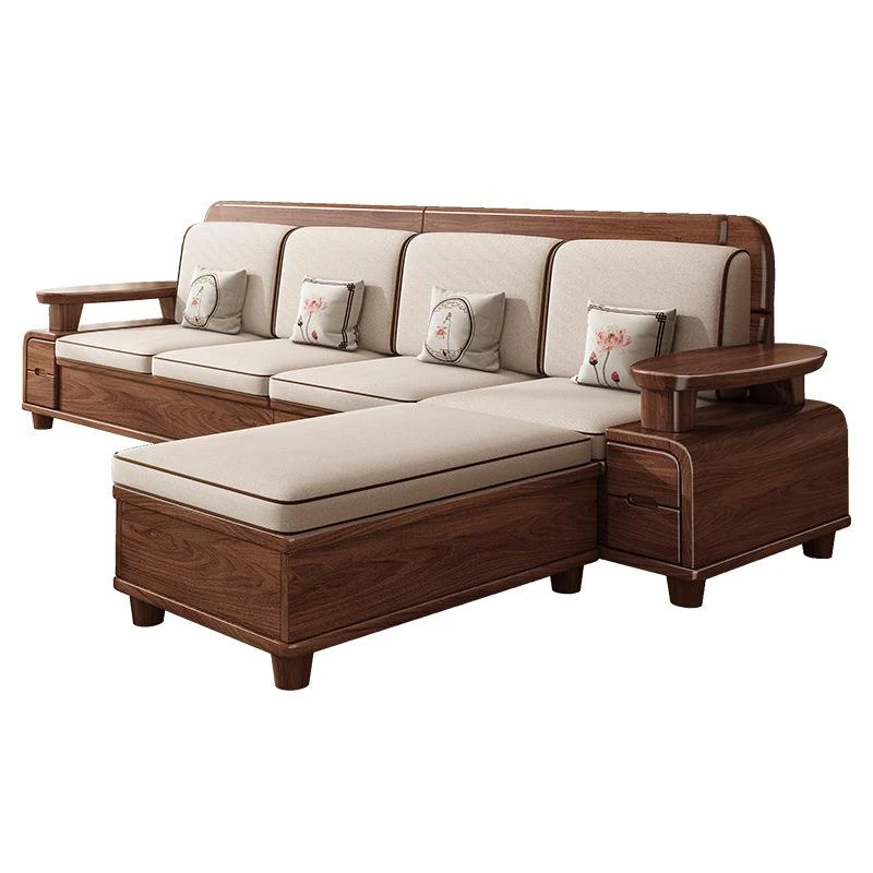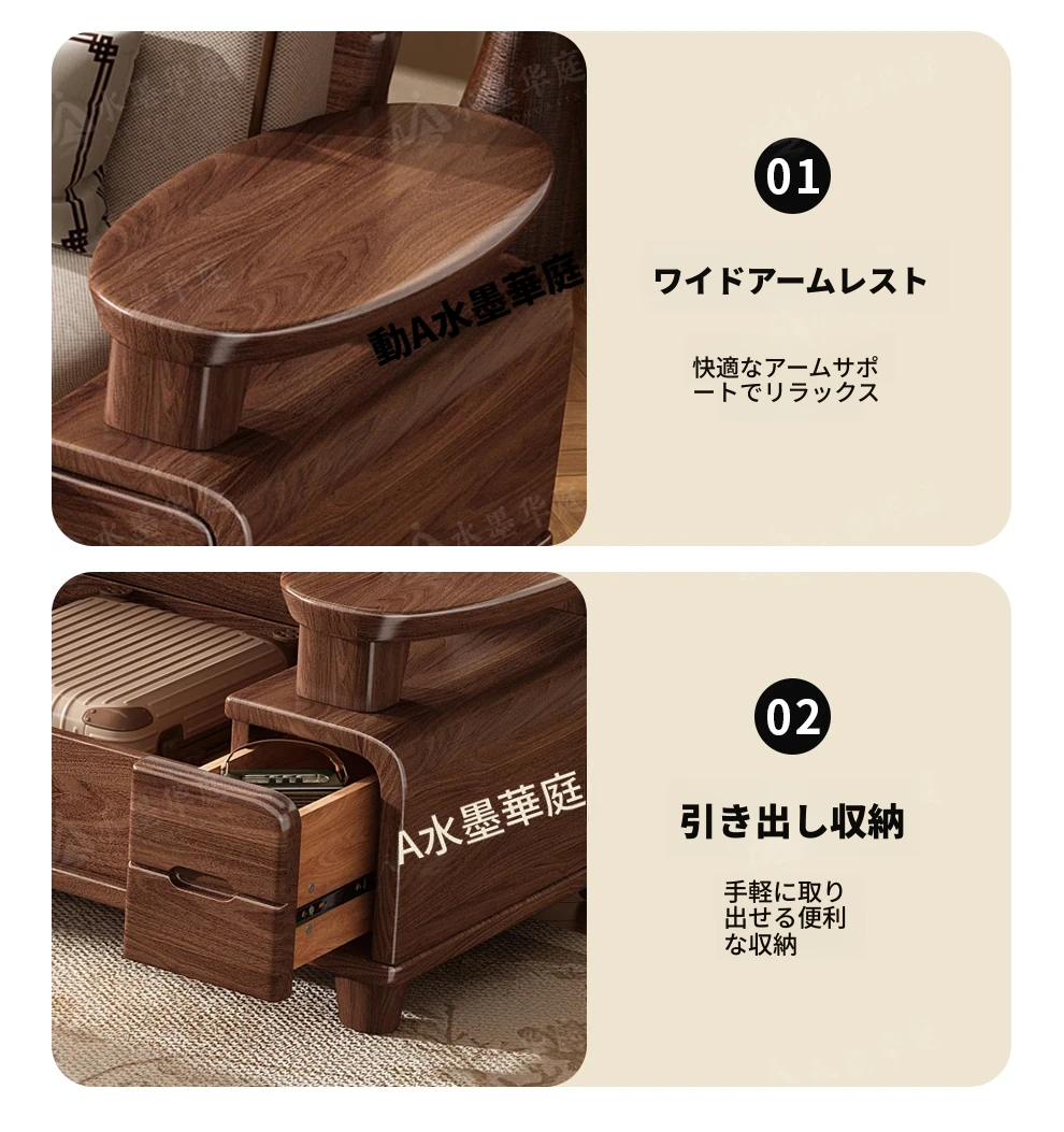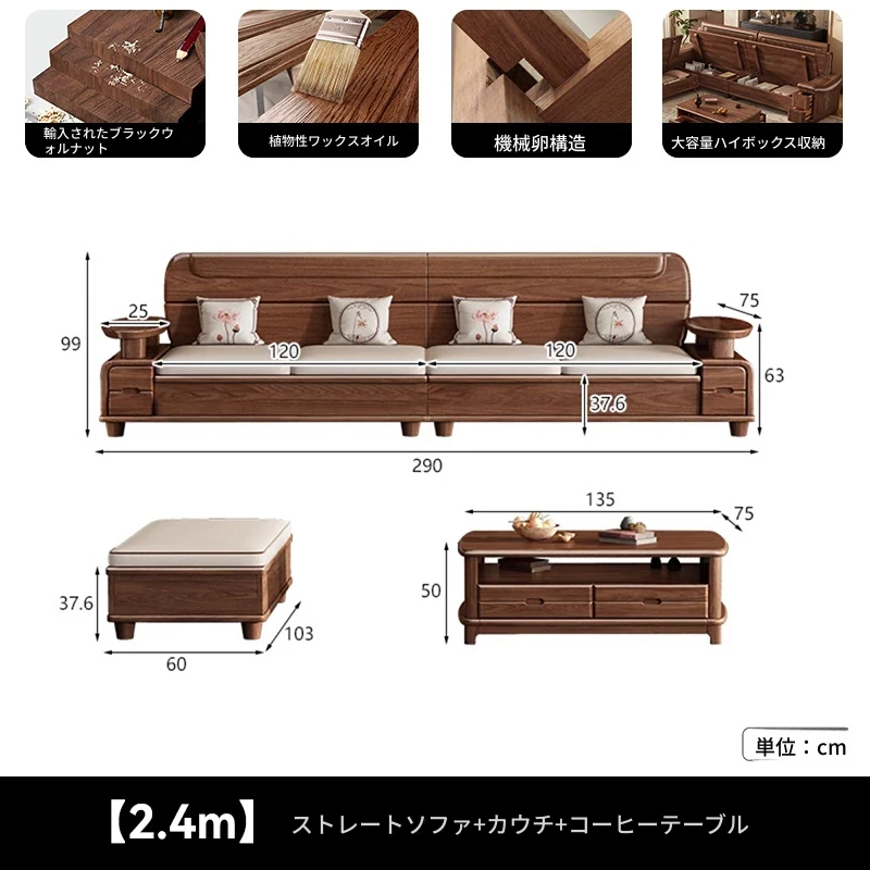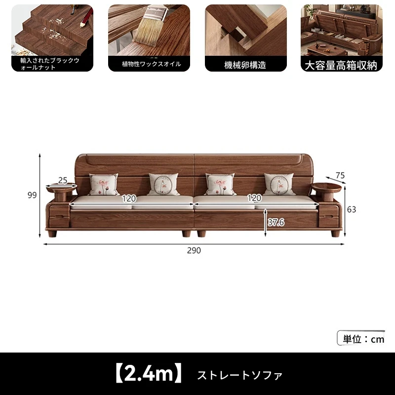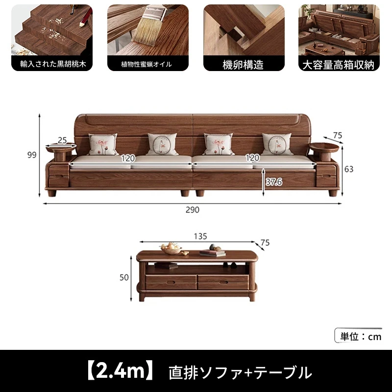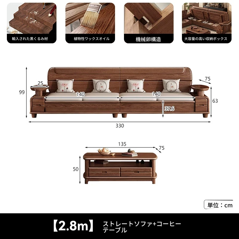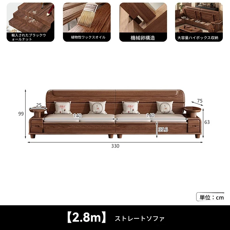 新中式スタイルのブラックウォールナット無垢材ソファー|コンパクトな高箱デザインで小さなリビングにも最適!モダンでシンプルな家具、洗練された空間を演出します。