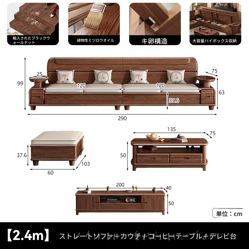 【2.4m】ストレートソファ+テーブル+テレビ台