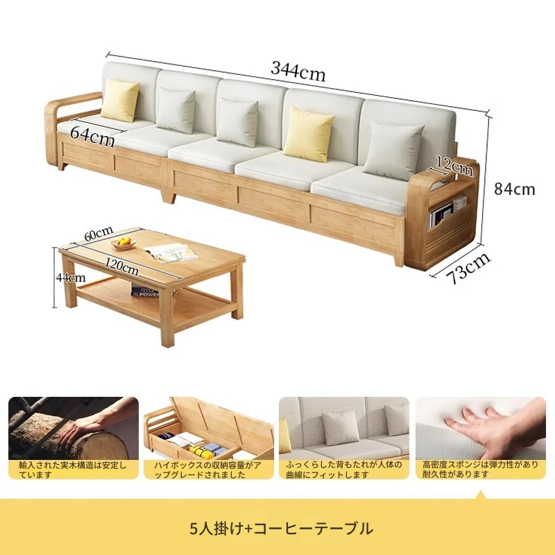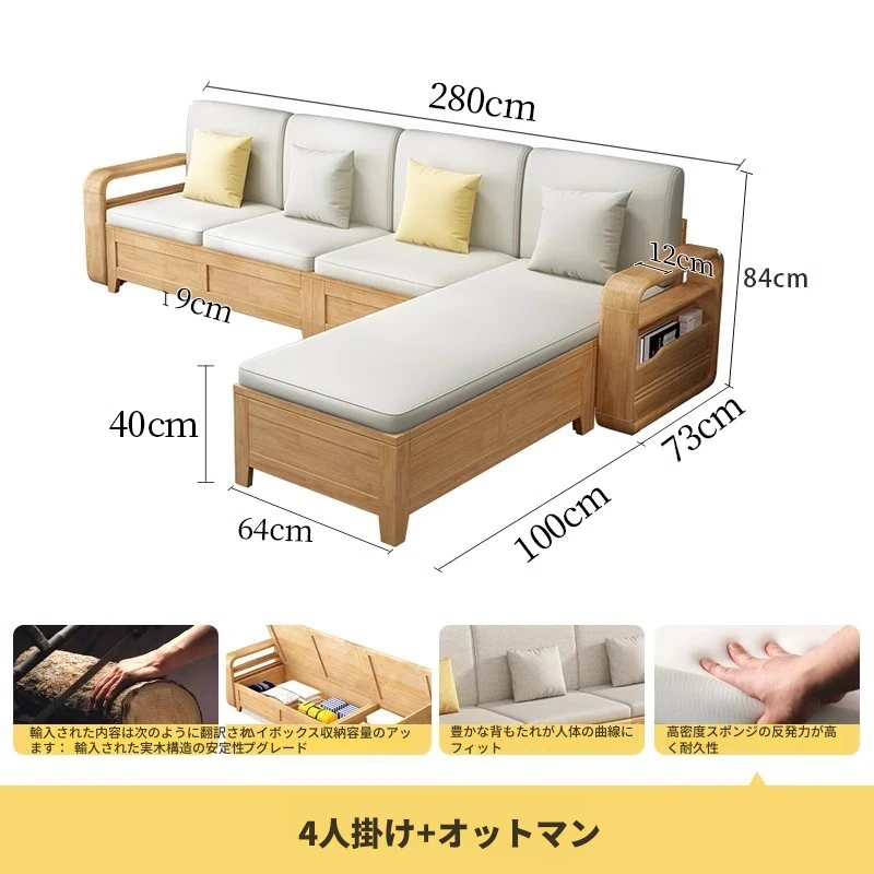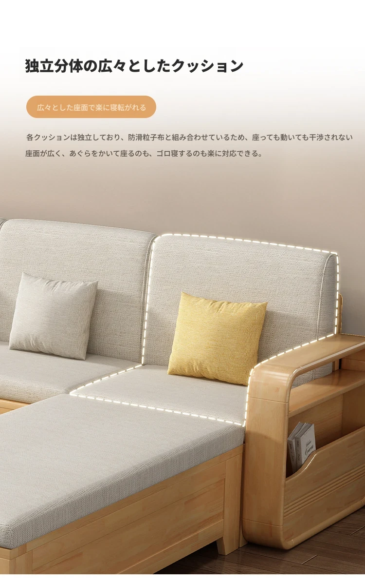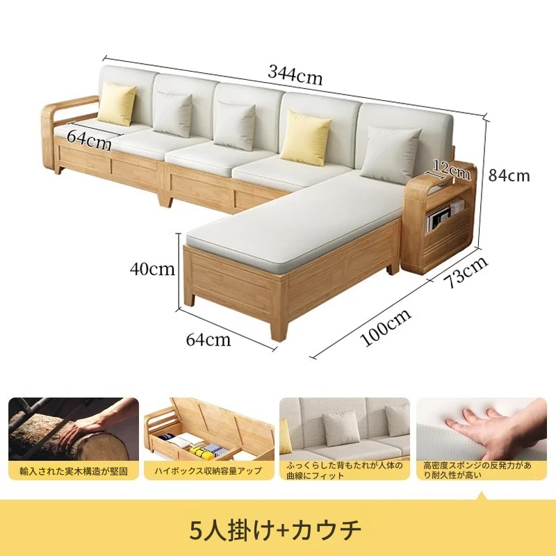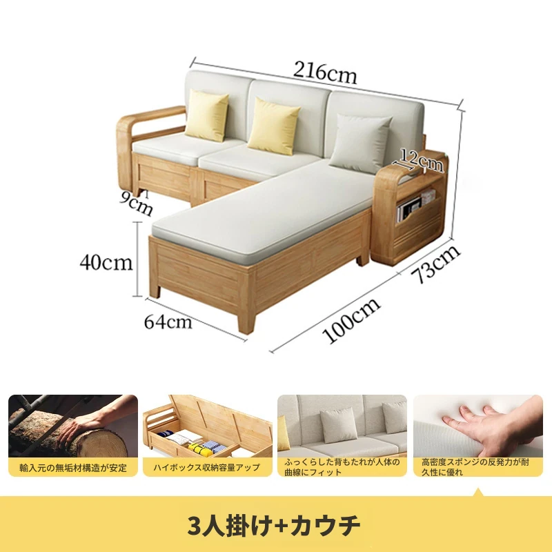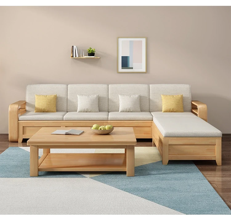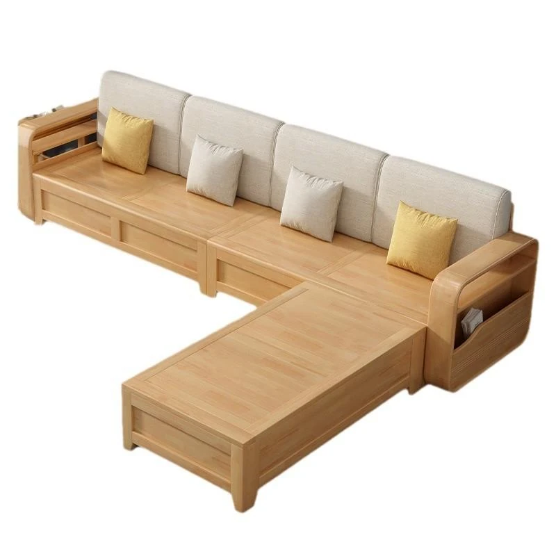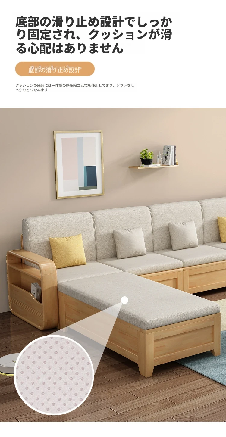 モダンでシンプルな実木ソファとコーヒーテーブルのセット - 冬夏両用の布製高箱収納付きコーナーソファ!おしゃれなリビングに最適な家具です。心地よい空間を演出し、収納力も抜群!