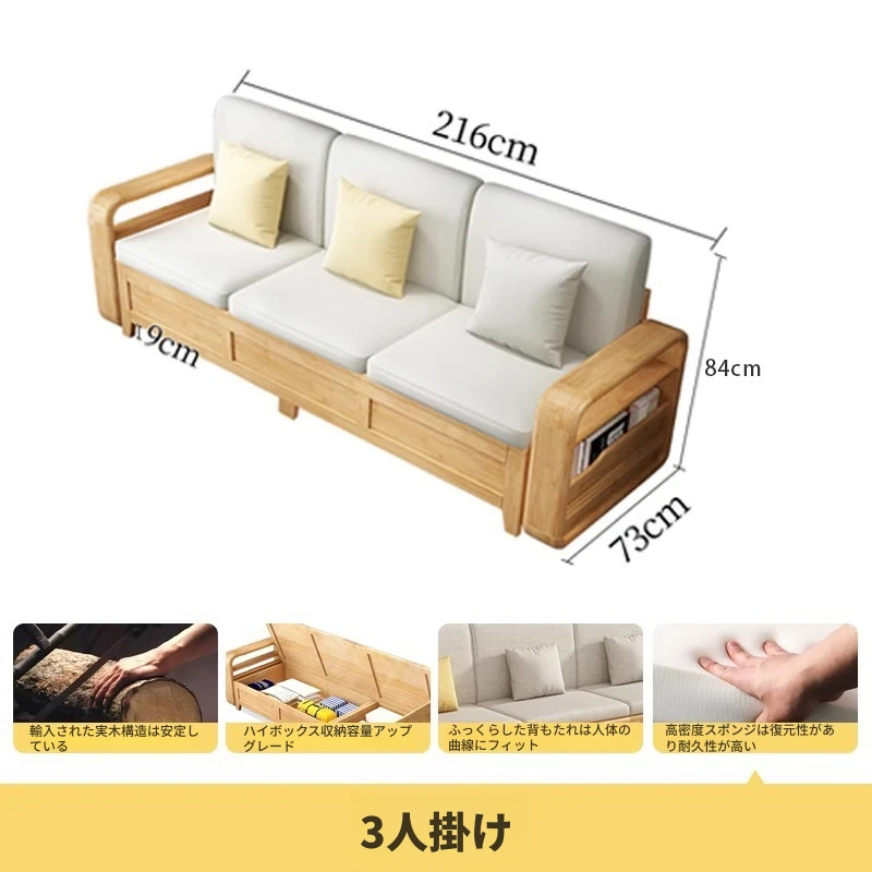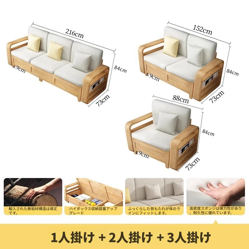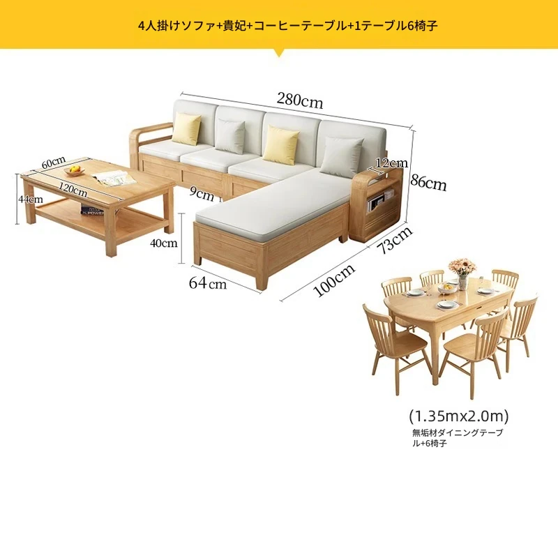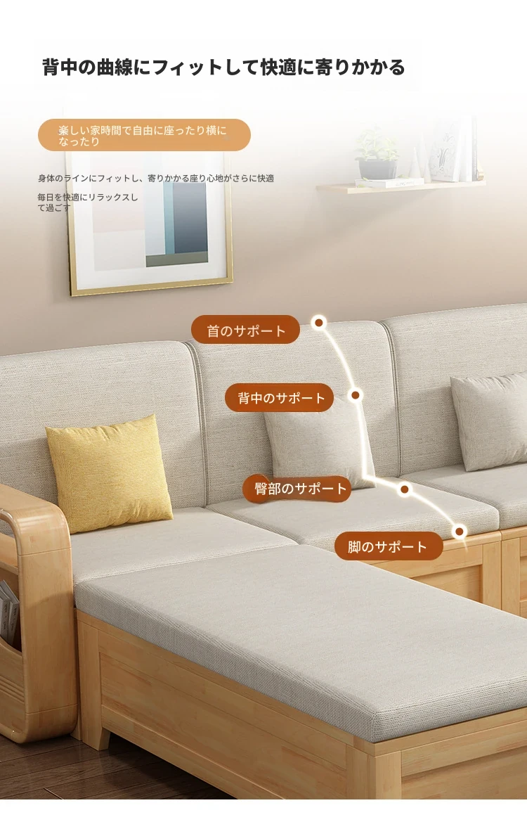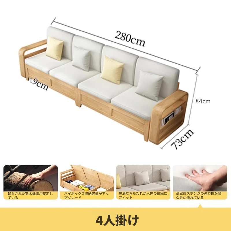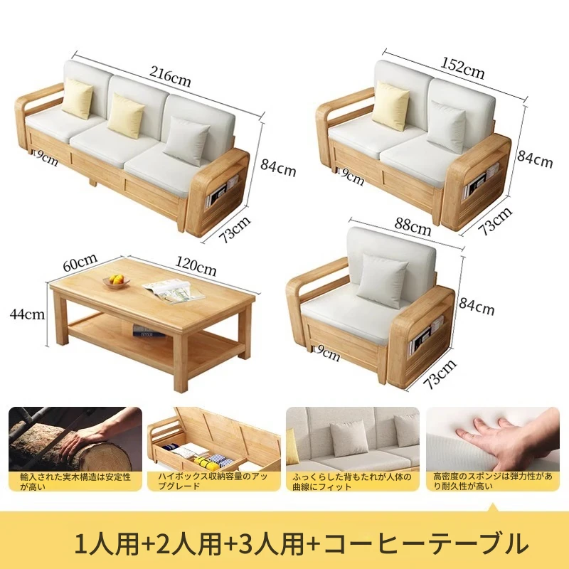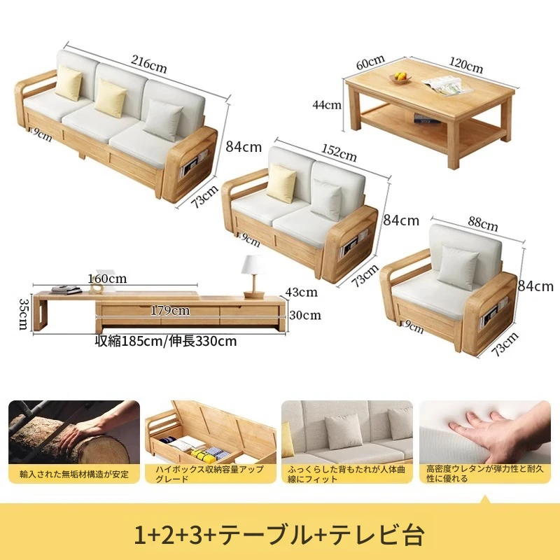 モダンでシンプルな実木ソファとコーヒーテーブルのセット - 冬夏両用の布製高箱収納付きコーナーソファ!おしゃれなリビングに最適な家具です。心地よい空間を演出し、収納力も抜群!