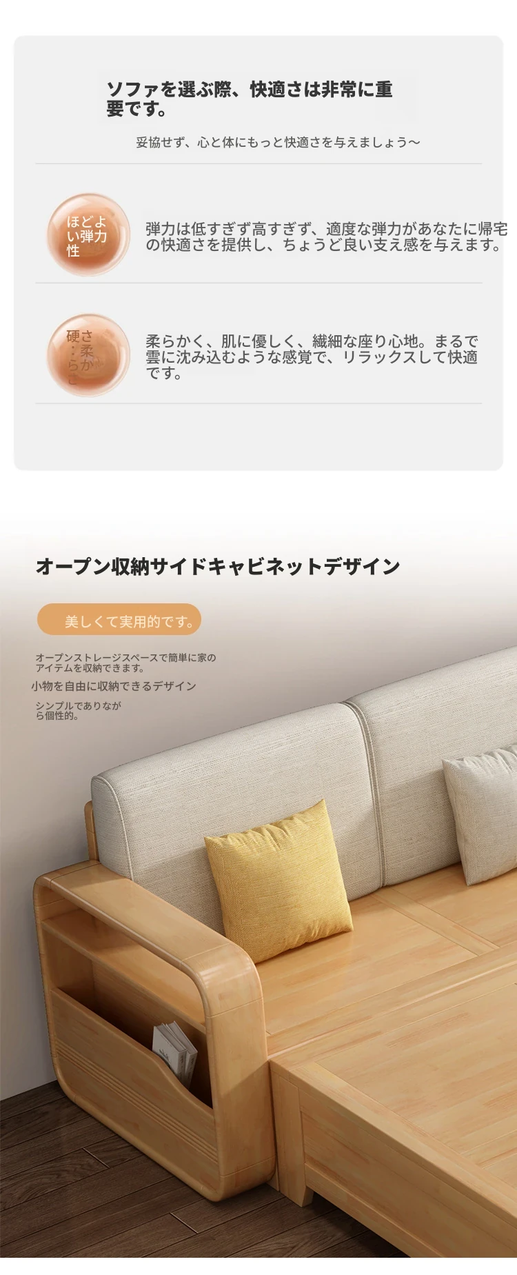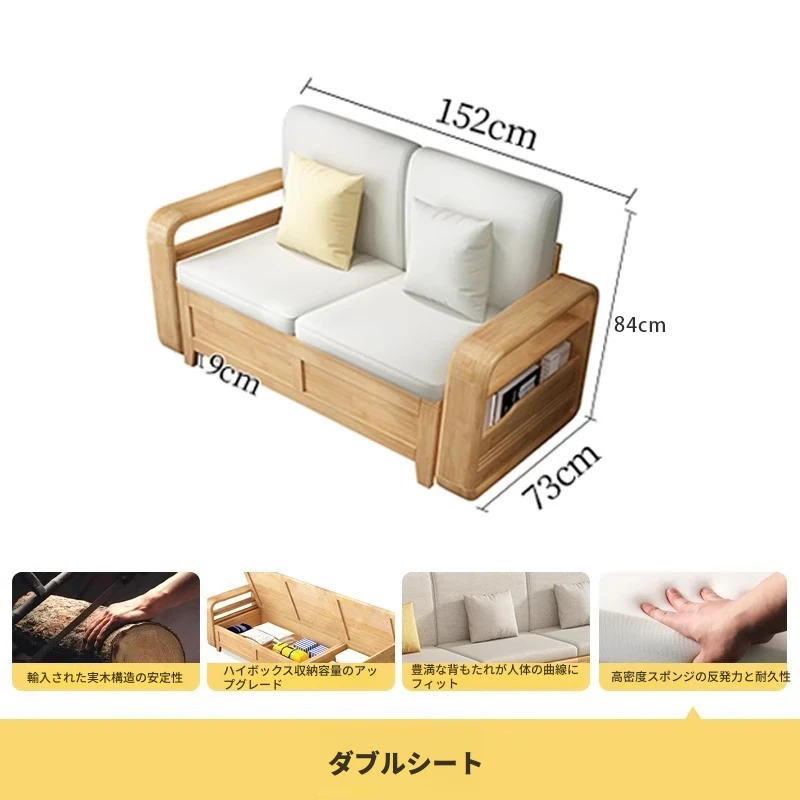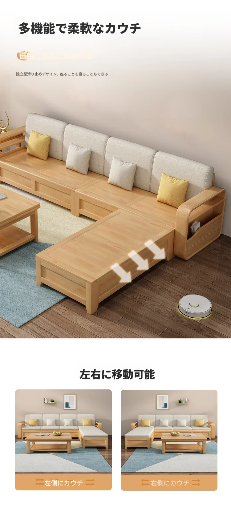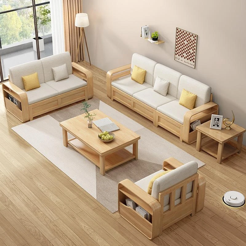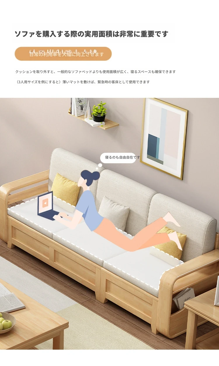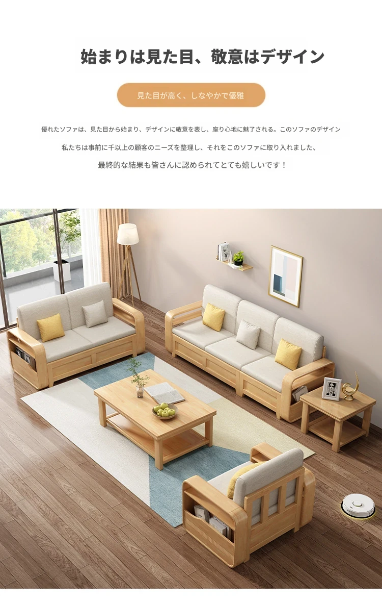 モダンでシンプルな実木ソファとコーヒーテーブルのセット - 冬夏両用の布製高箱収納付きコーナーソファ!おしゃれなリビングに最適な家具です。心地よい空間を演出し、収納力も抜群!
