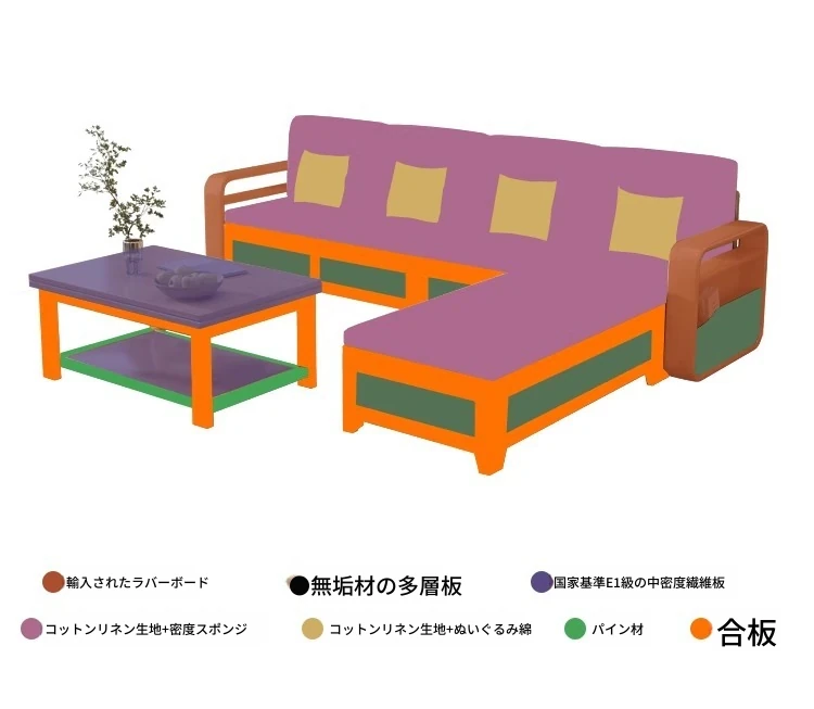 無垢材ソファ自由組み合わせ