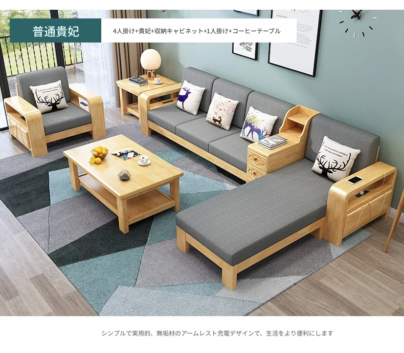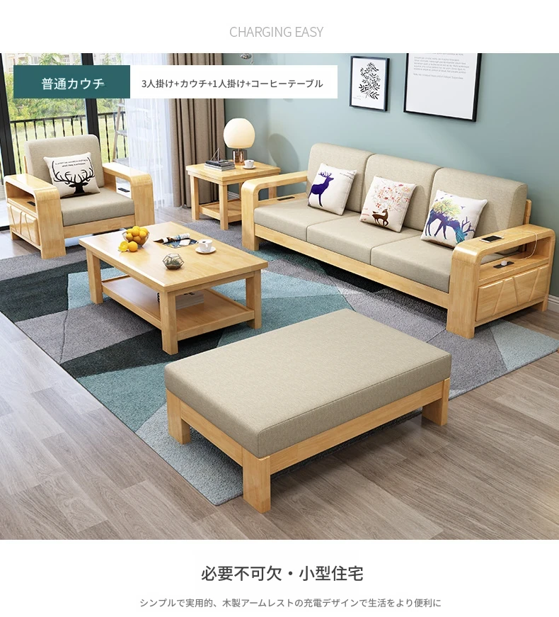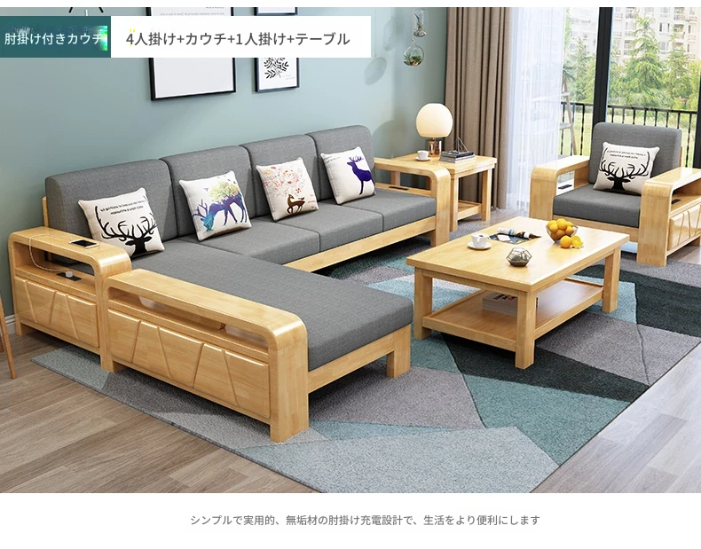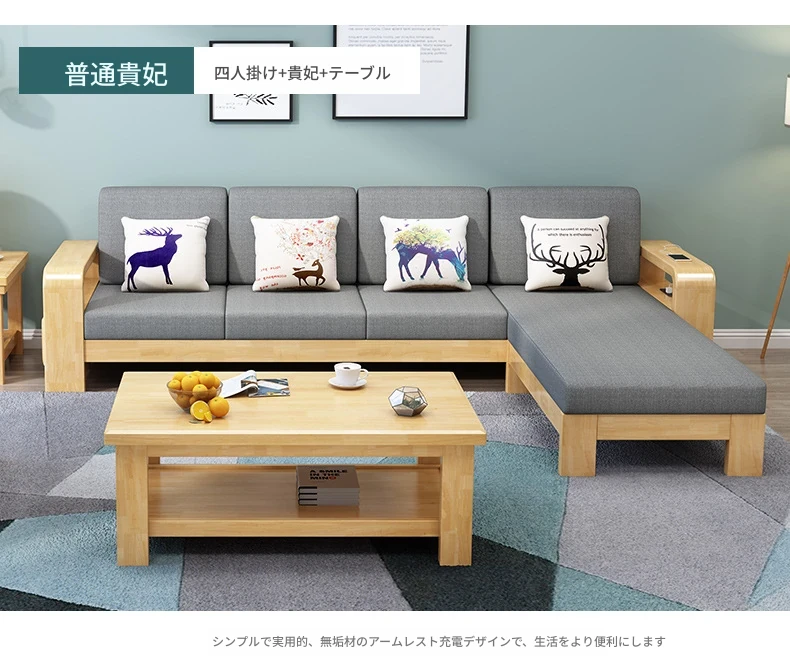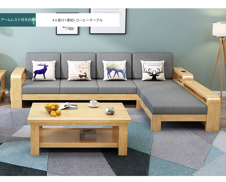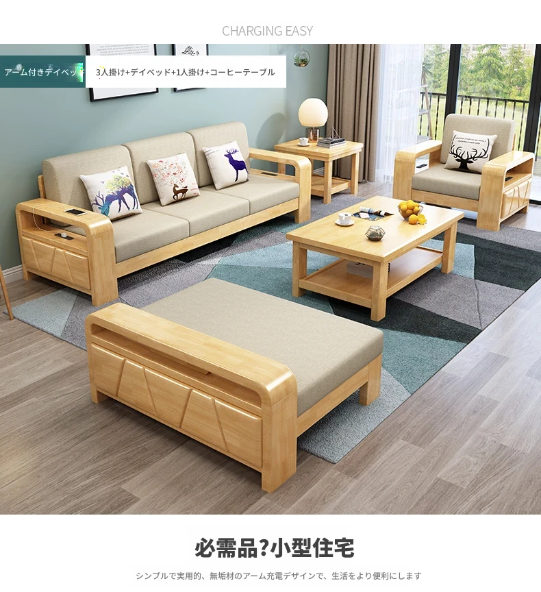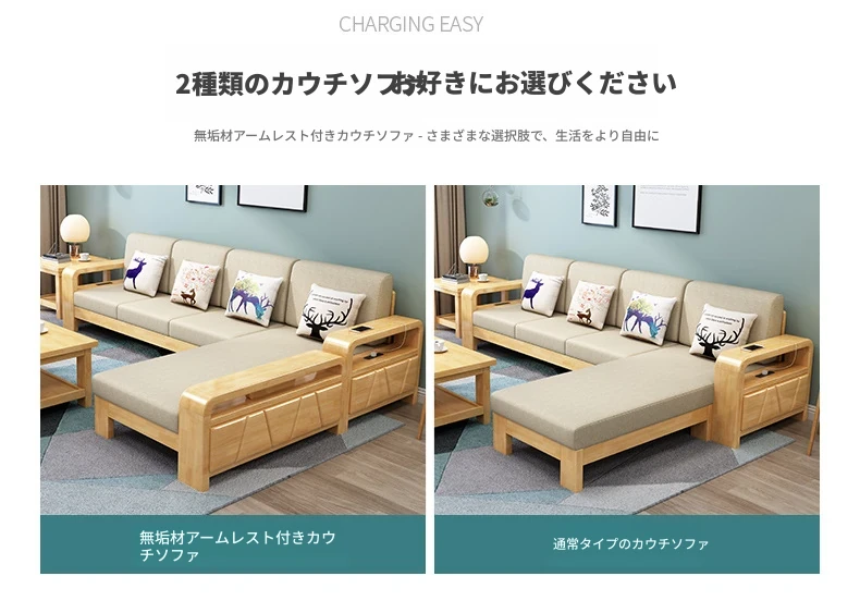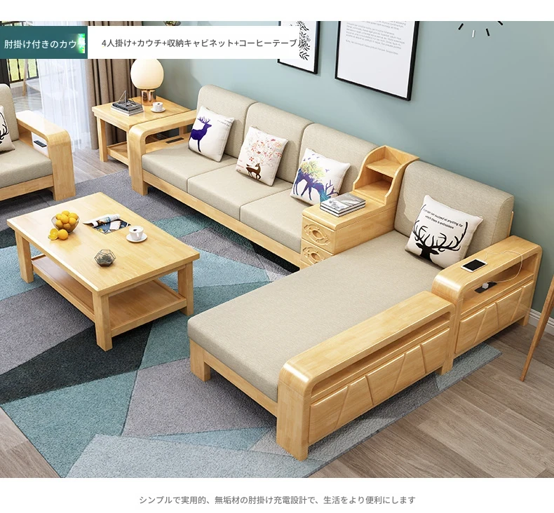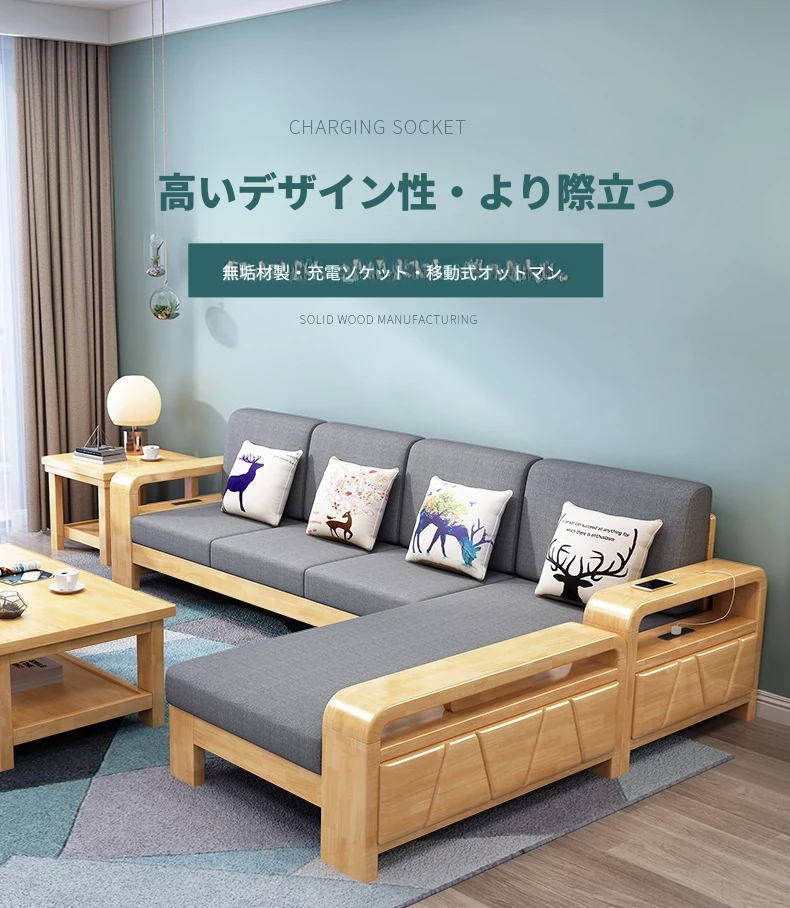 モダンでシンプルな実木製カウチソファ - 小さなリビングにぴったり!北欧スタイルのファブリック家具、エレガントなコーナーソファセットで心地よい空間を実現。