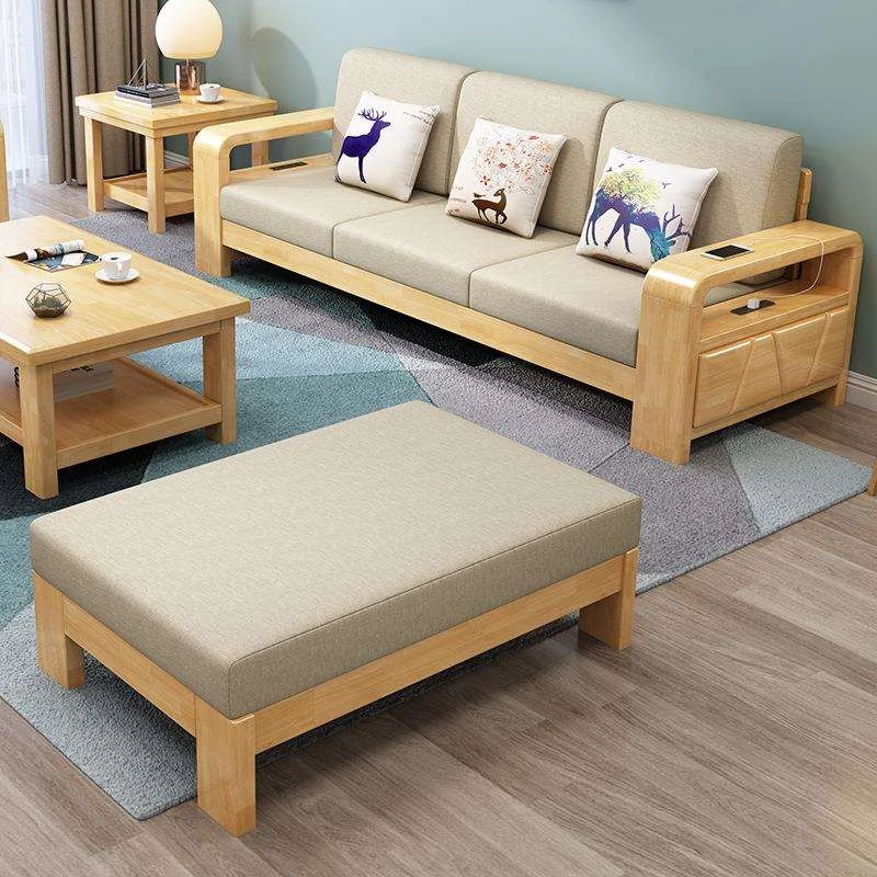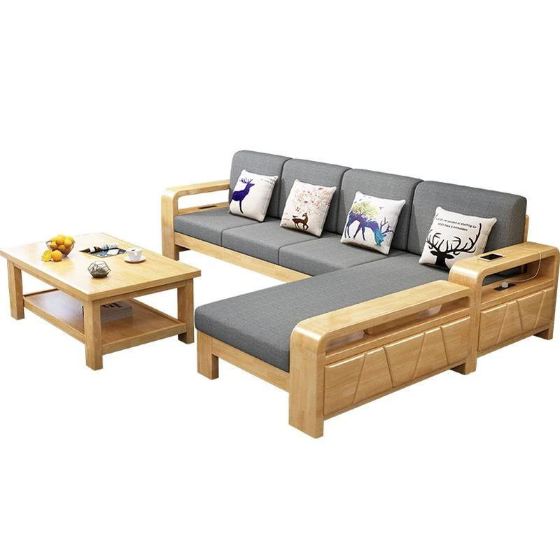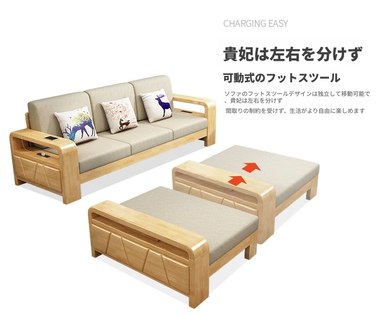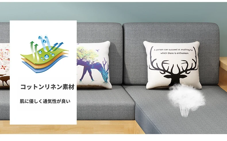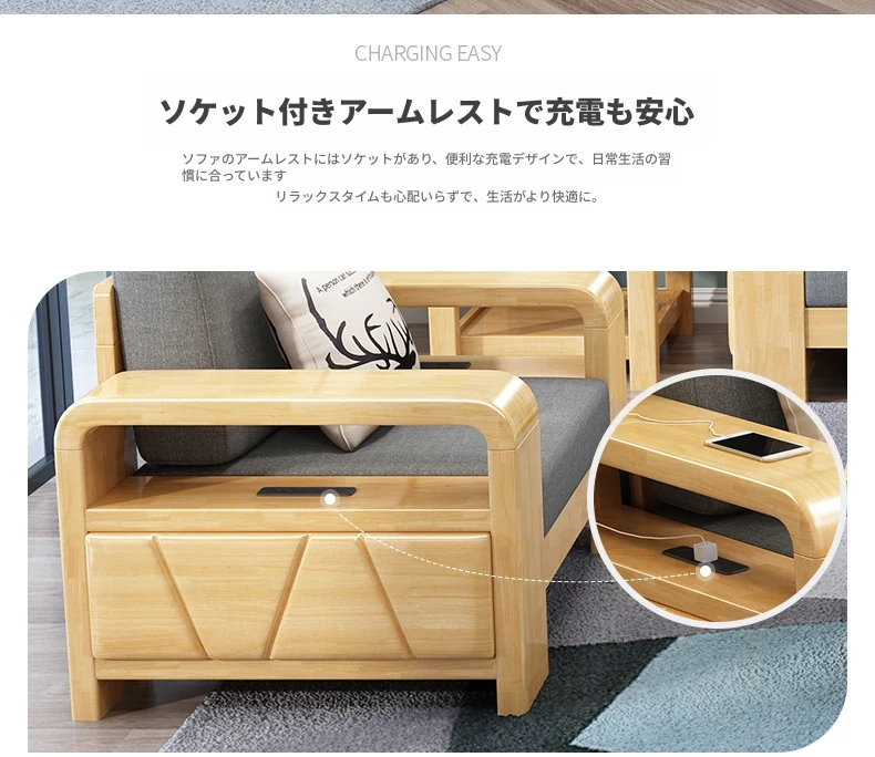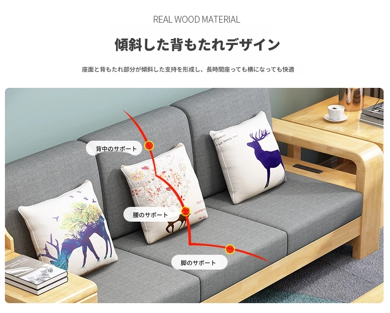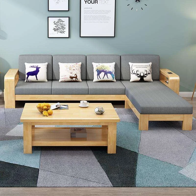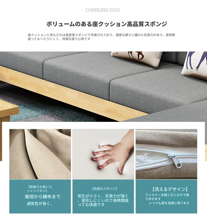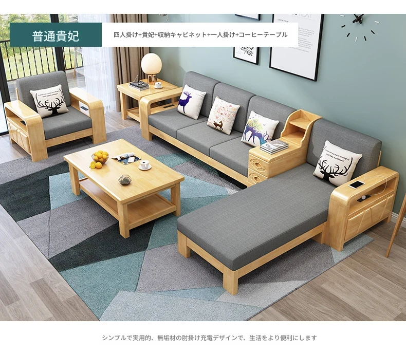 モダンでシンプルな実木製カウチソファ - 小さなリビングにぴったり!北欧スタイルのファブリック家具、エレガントなコーナーソファセットで心地よい空間を実現。