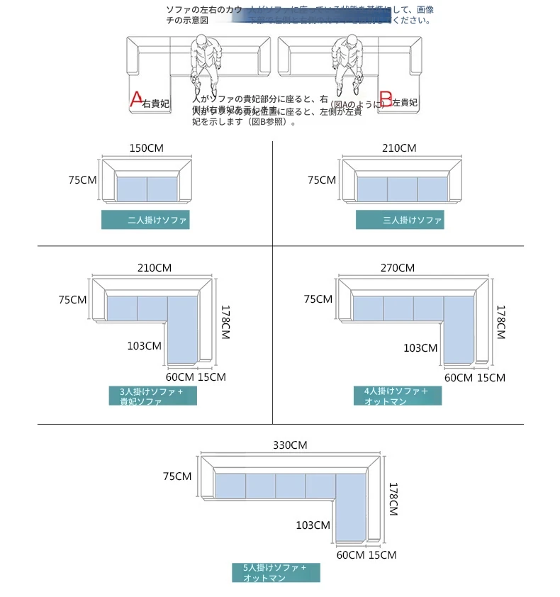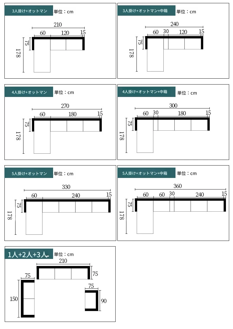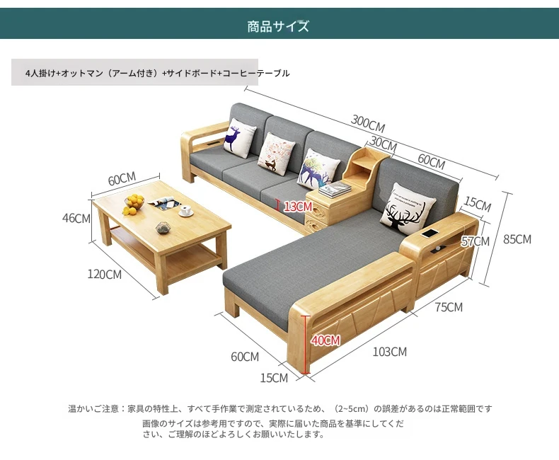【アーム付きカウチ】5人用ソファ+オットマン+コーヒーテーブル【腰枕プレゼント】