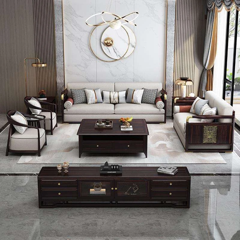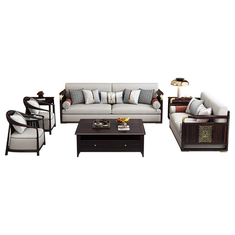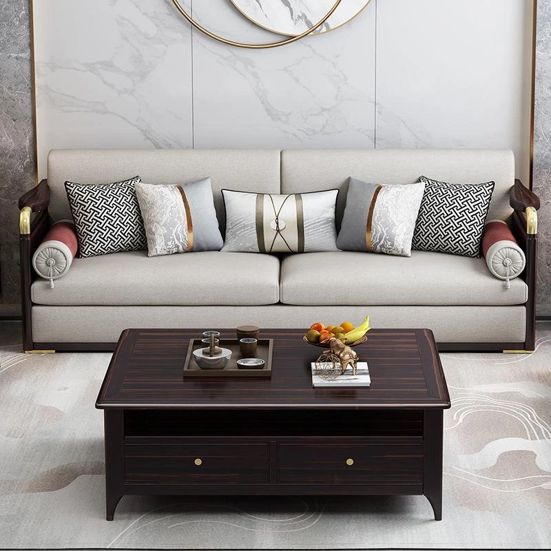 新中式スタイルの無垢材ソファセット|モダンでシンプルなデザイン|小スペースに最適|洗えるカバー付き|高級ウッディブラックソファで快適なリビング空間を演出!