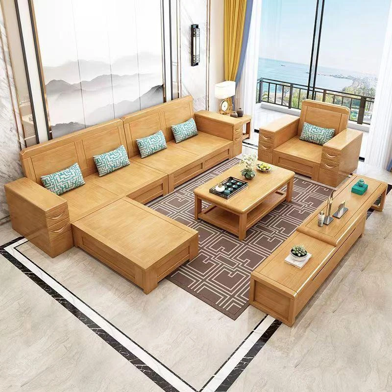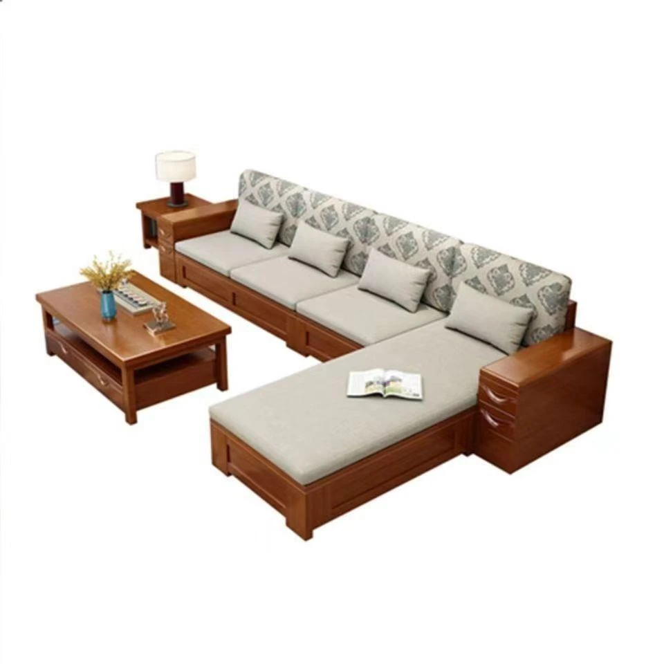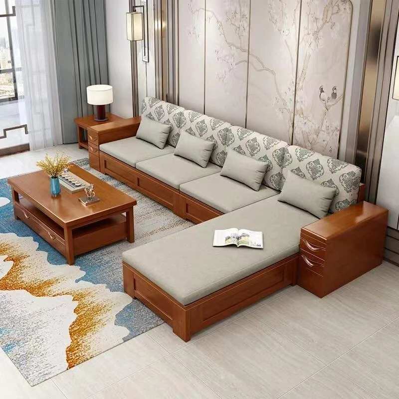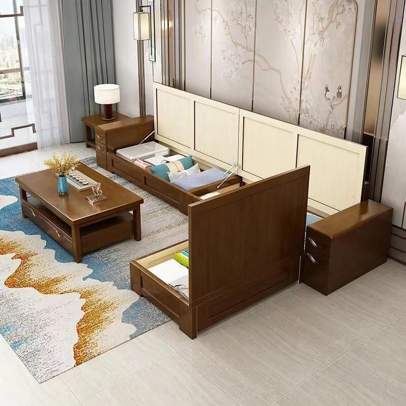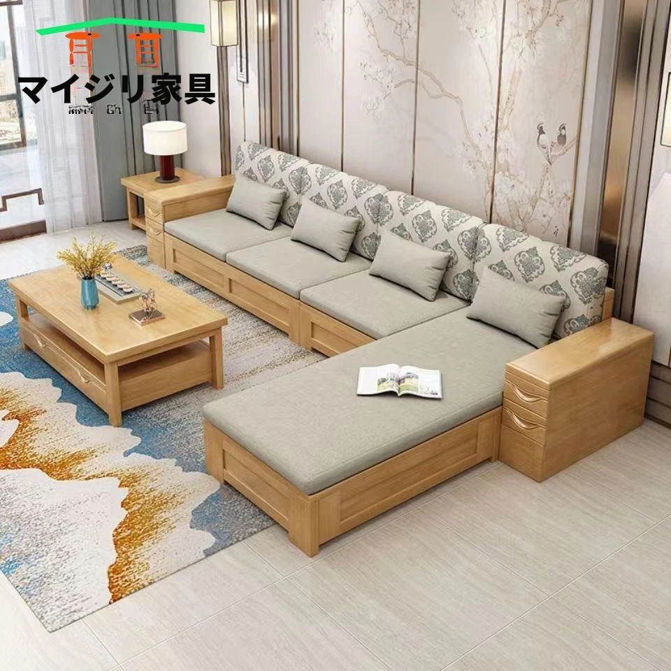 冬夏兼用の実木ソファセット - モダンでシンプルなデザイン、小さな部屋にもぴったりな新中式スタイル!高級感あふれる収納機能付き、リビングをおしゃれに演出します。