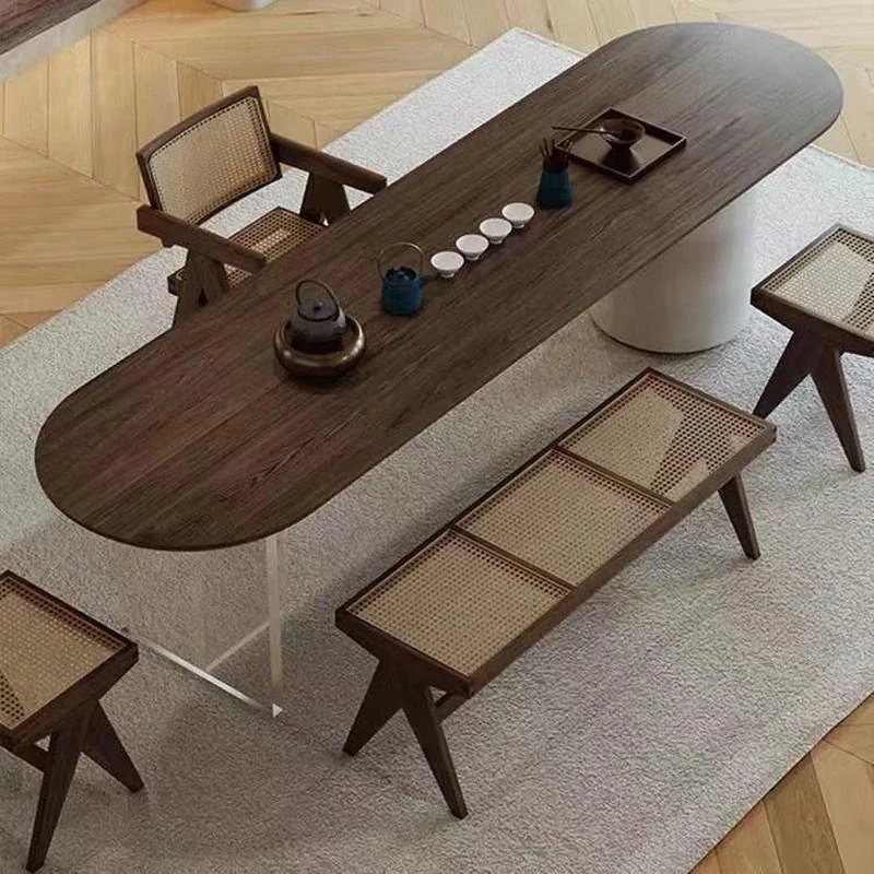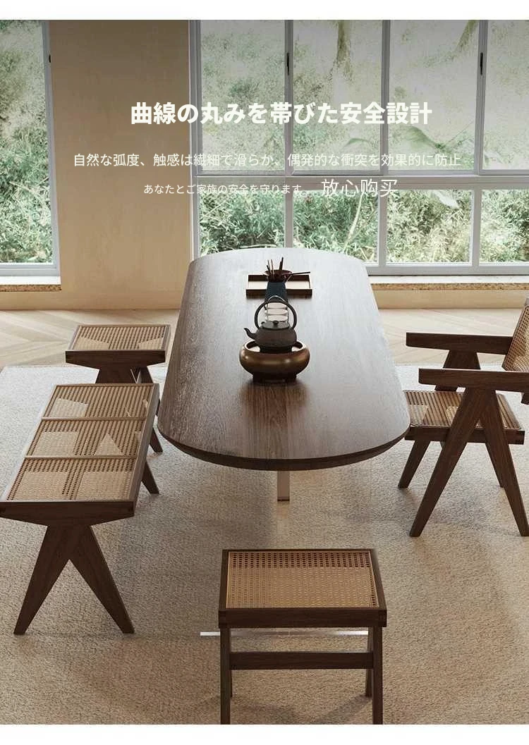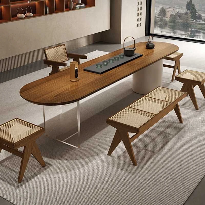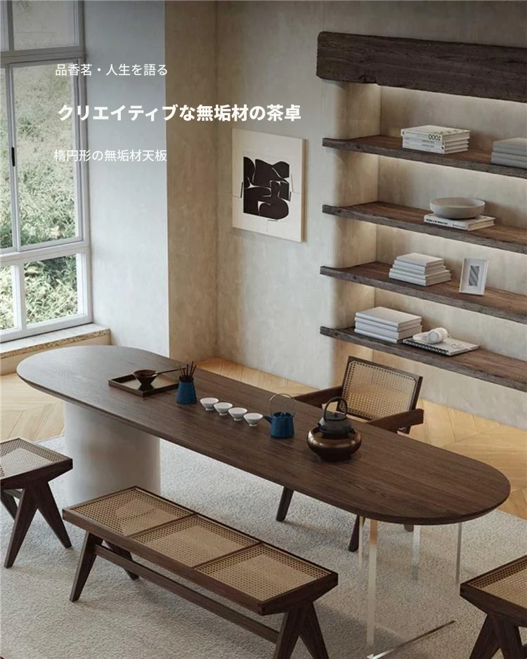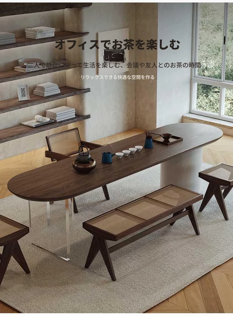現代侘寂スタイルの茶卓椅子セット - オフィスやリビングに最適な無垢材製の新中式デザイン、自然な木の温もりを感じるバルコニーにもぴったり!