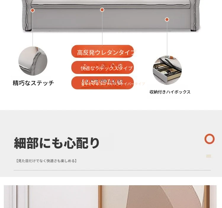 2.06メートル背中を守るココナッツファイバータイプ+無垢材収納ボックス