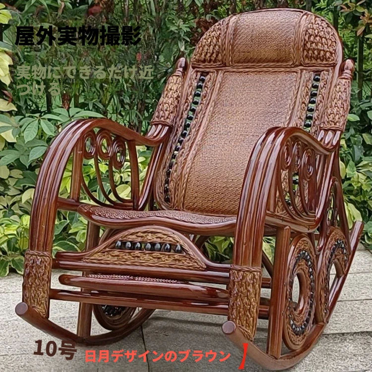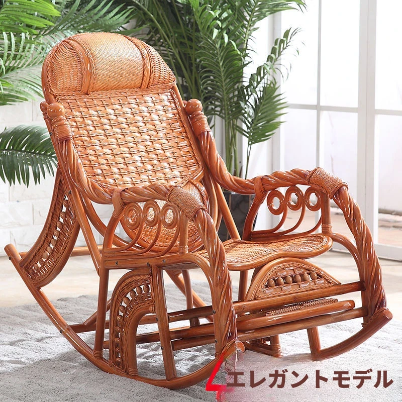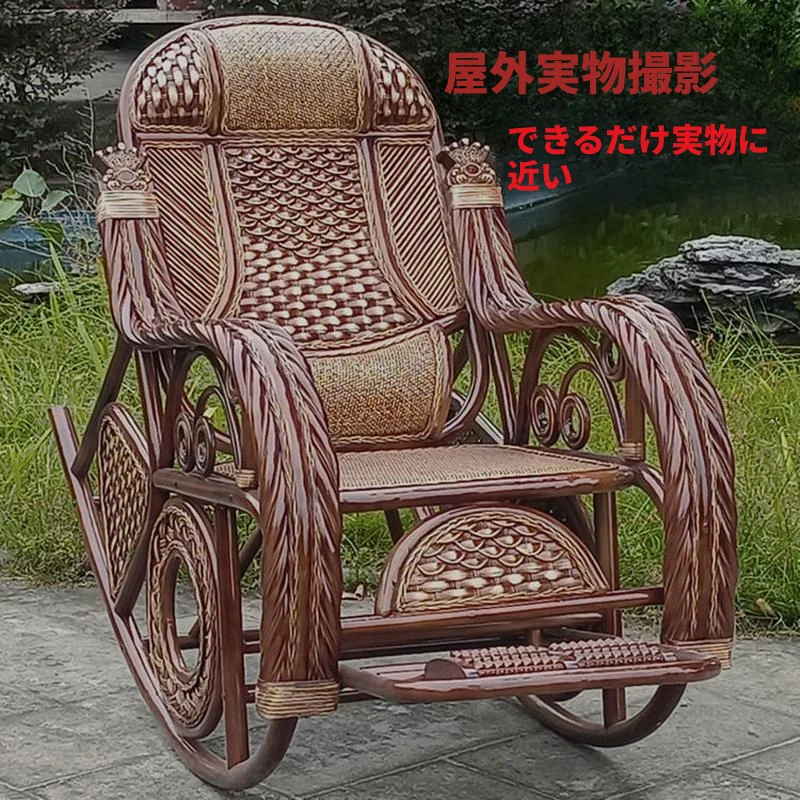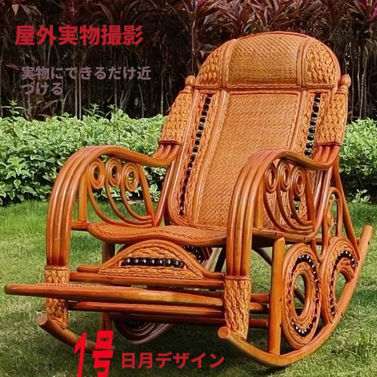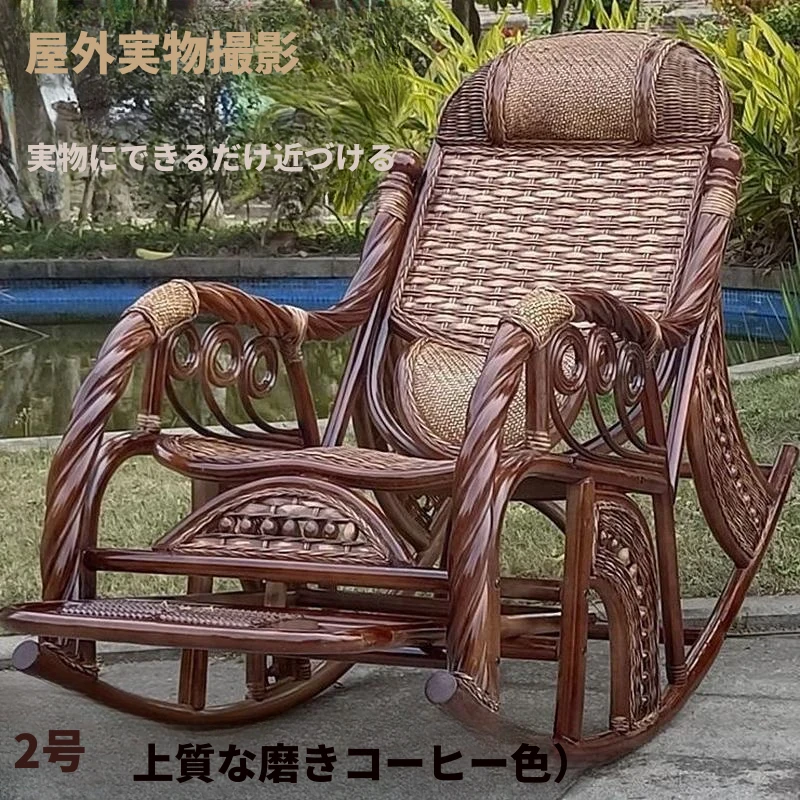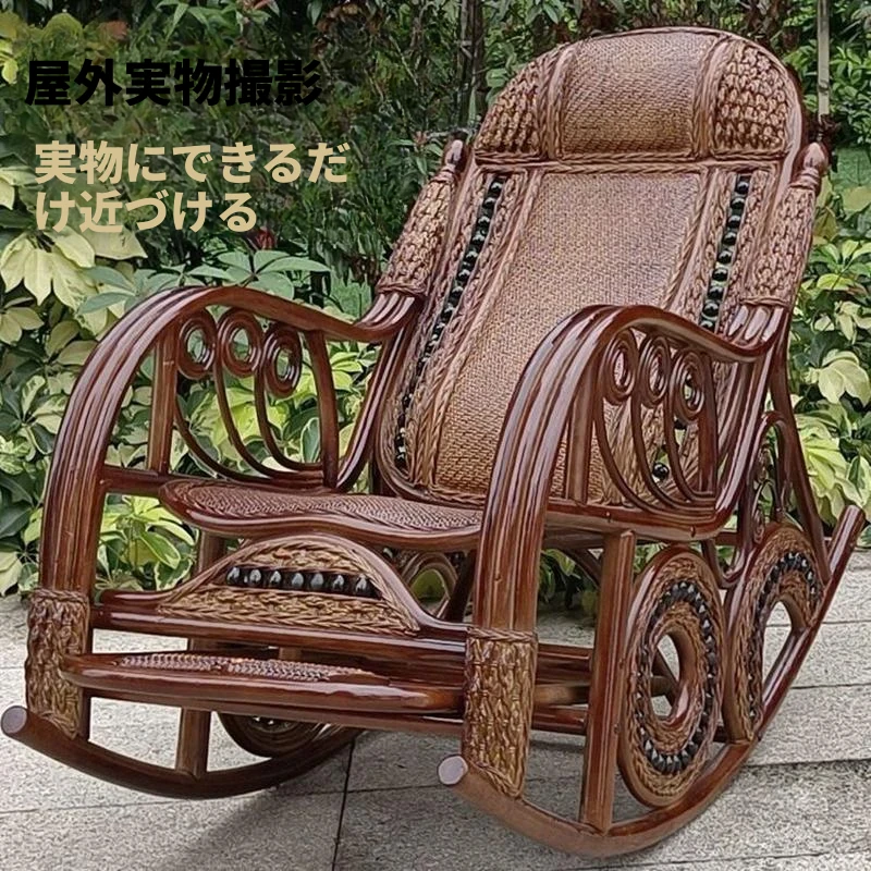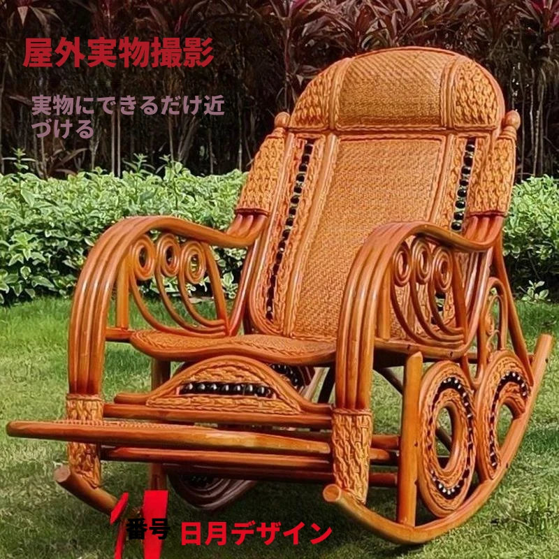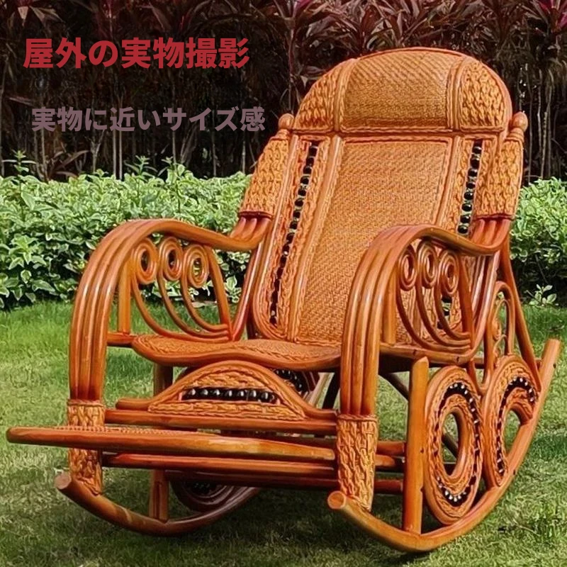 リラックスできる天然ラタンの揺り椅子 - 高齢者向け、バルコニーやリビングに最適!心地よい昼寝タイムをお楽しみください。室内でもゆったりとしたひとときを。