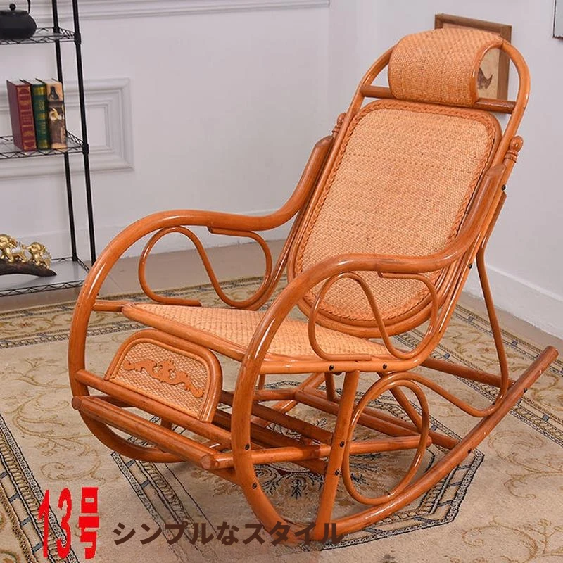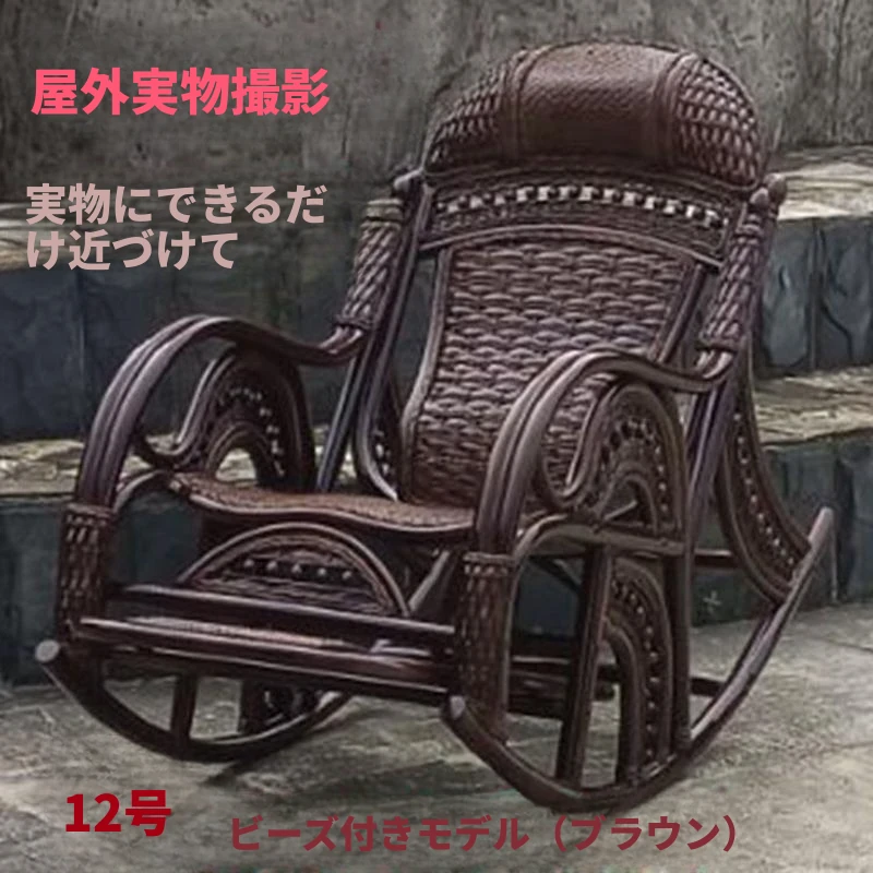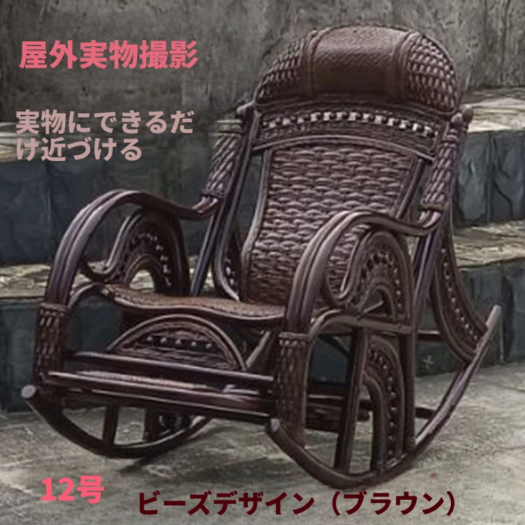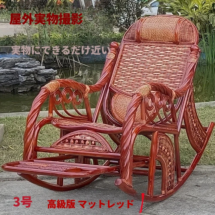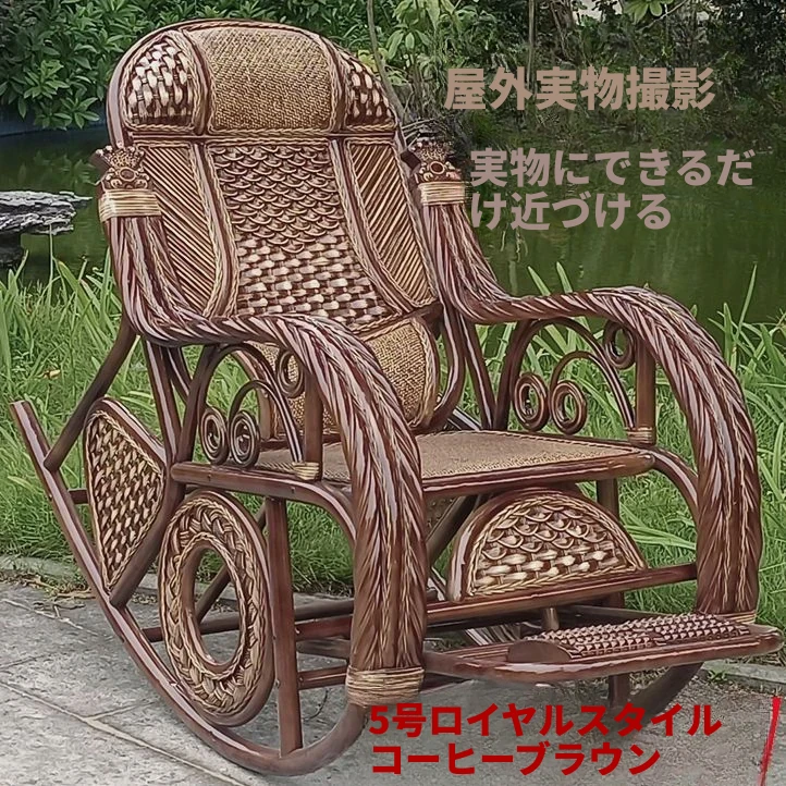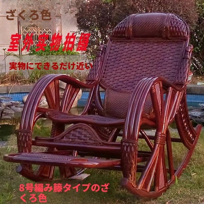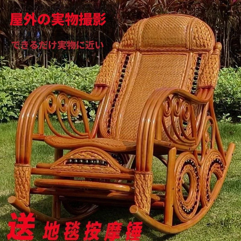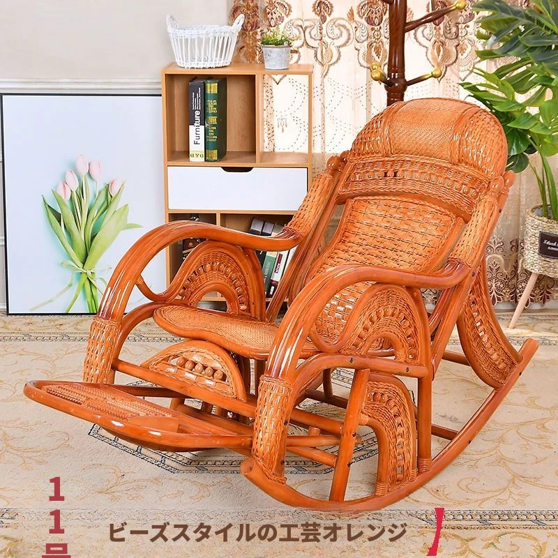 リラックスできる天然ラタンの揺り椅子 - 高齢者向け、バルコニーやリビングに最適!心地よい昼寝タイムをお楽しみください。室内でもゆったりとしたひとときを。