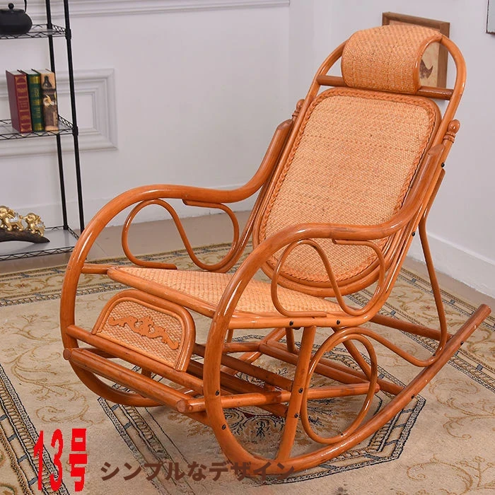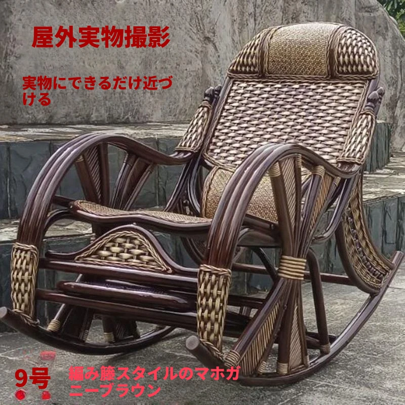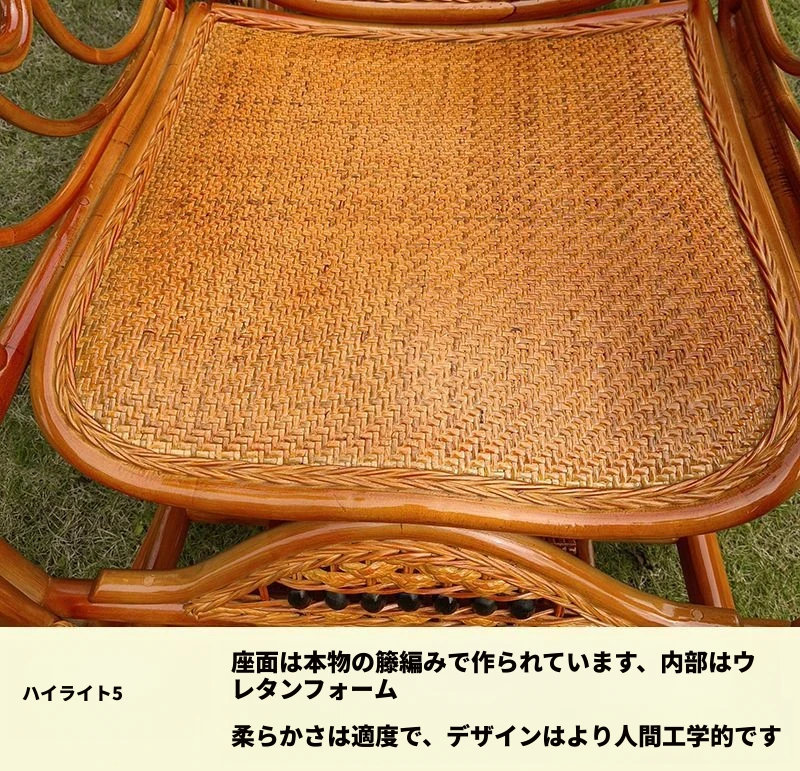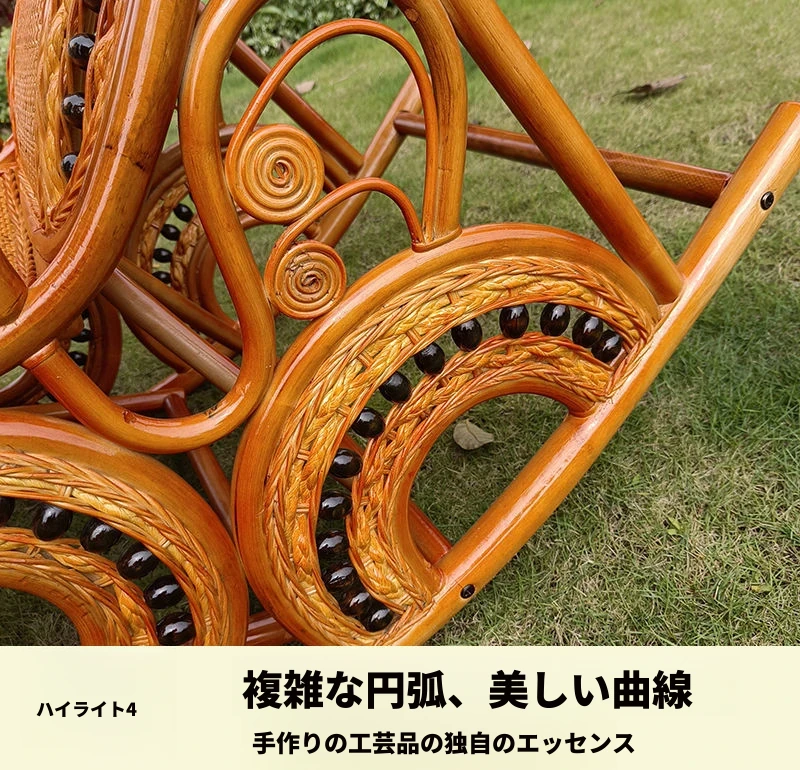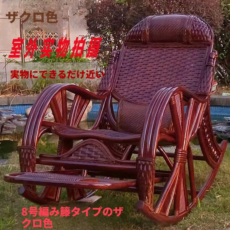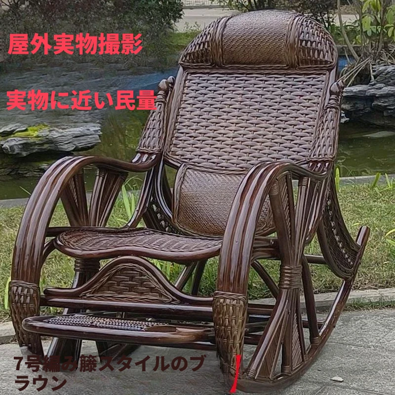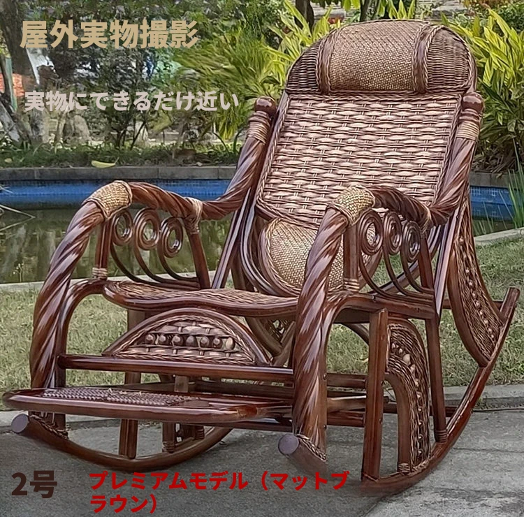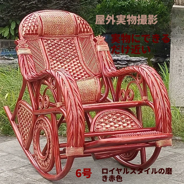リラックスできる天然ラタンの揺り椅子 - 高齢者向け、バルコニーやリビングに最適!心地よい昼寝タイムをお楽しみください。室内でもゆったりとしたひとときを。
