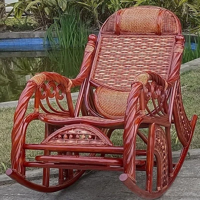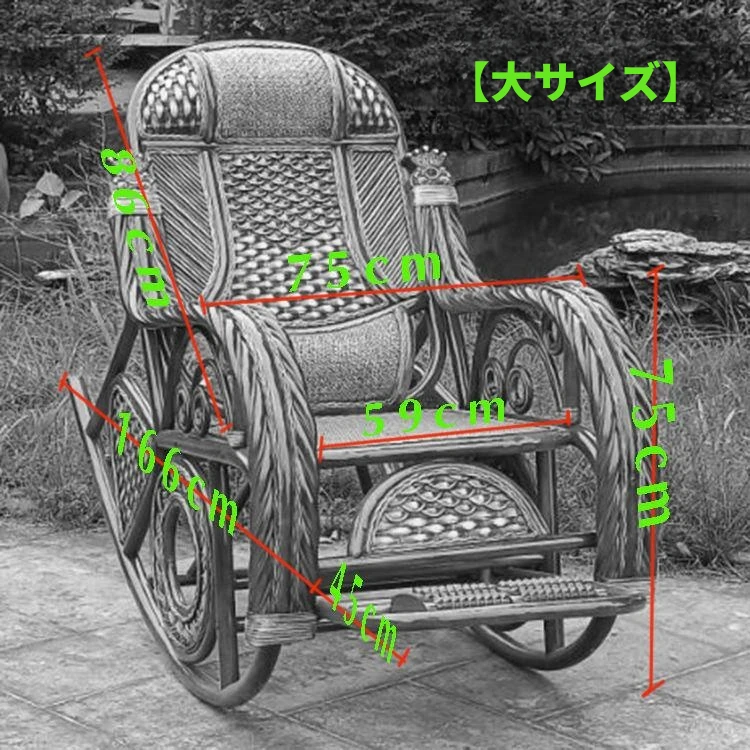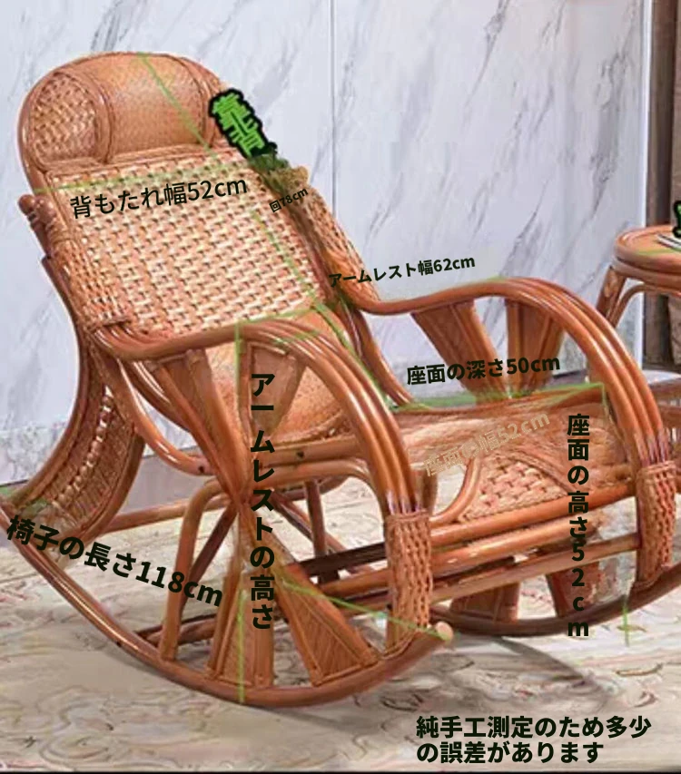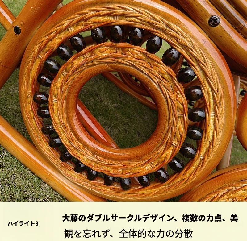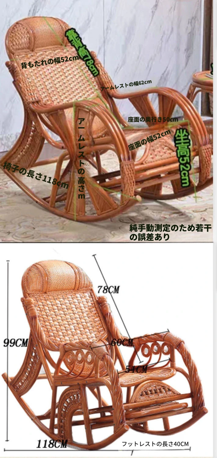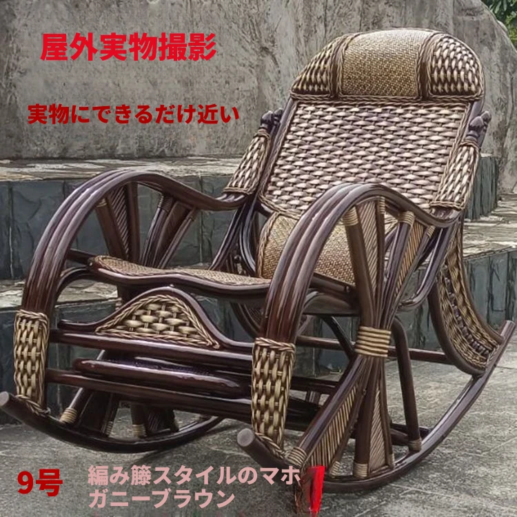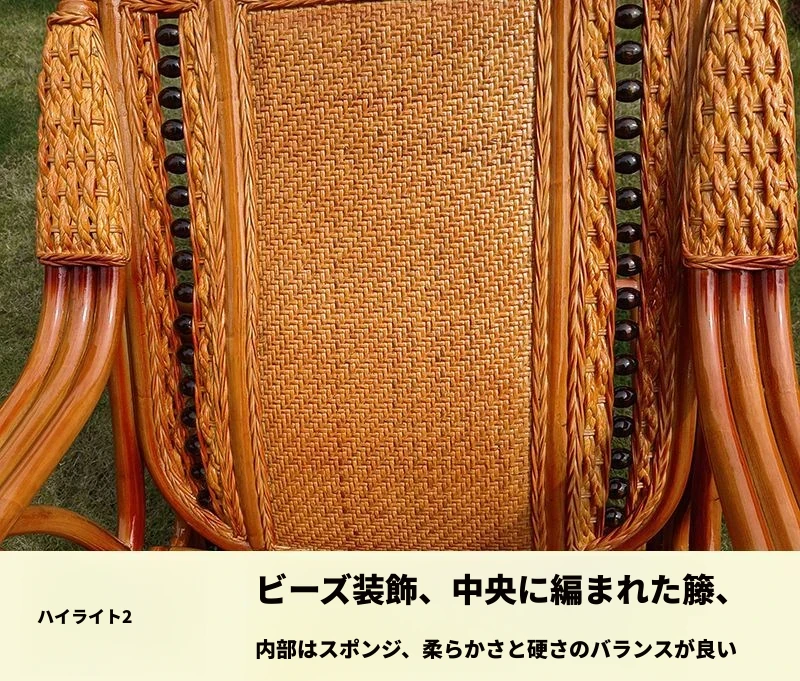 リラックスできる天然ラタンの揺り椅子 - 高齢者向け、バルコニーやリビングに最適!心地よい昼寝タイムをお楽しみください。室内でもゆったりとしたひとときを。