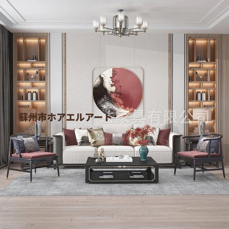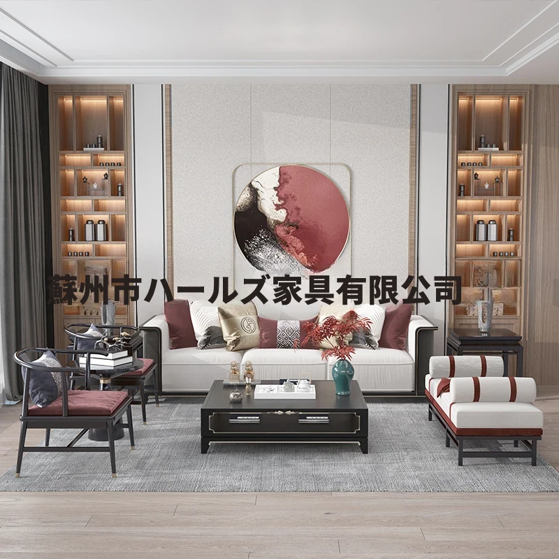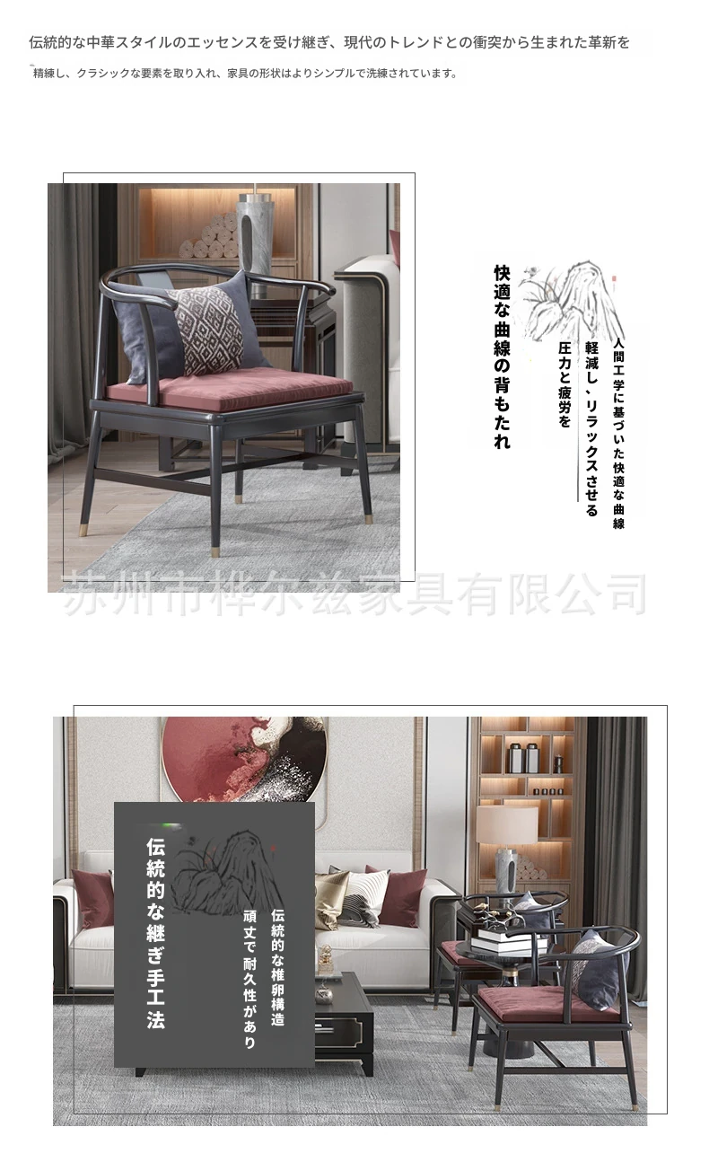 新中式リアルウッドソファ47835|高級感あふれる家居スタイルで、おしゃれなリビングやモデルルームに最適!民宿やクラブハウスにもぴったりなデザインです。
