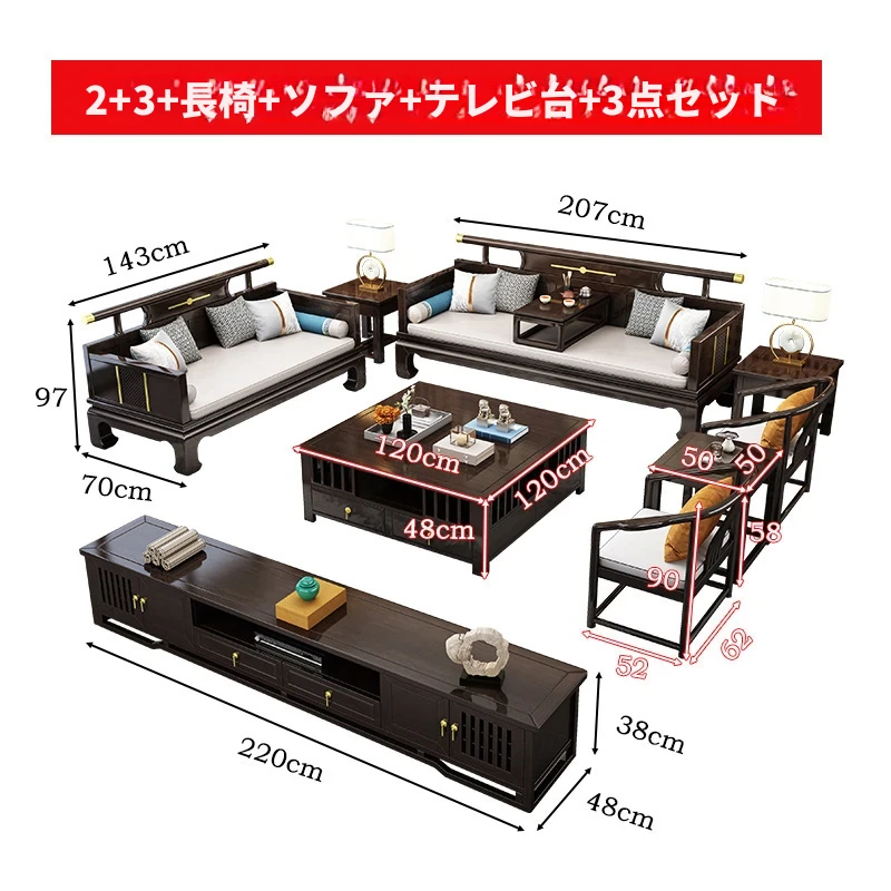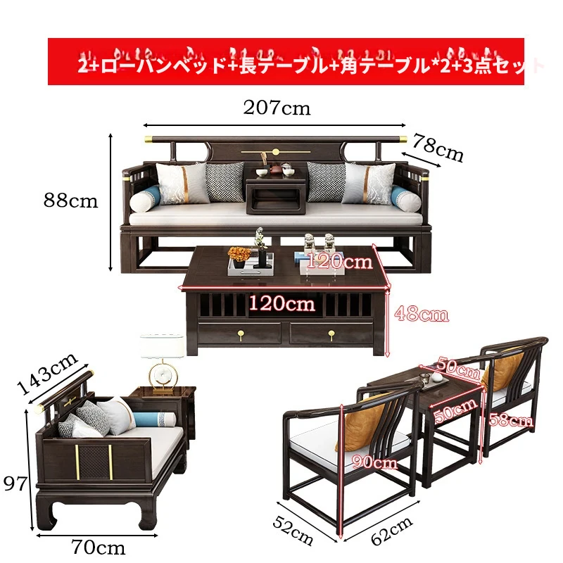 2+羅漢床+コーヒーテーブル+角テーブル*2+3点セット