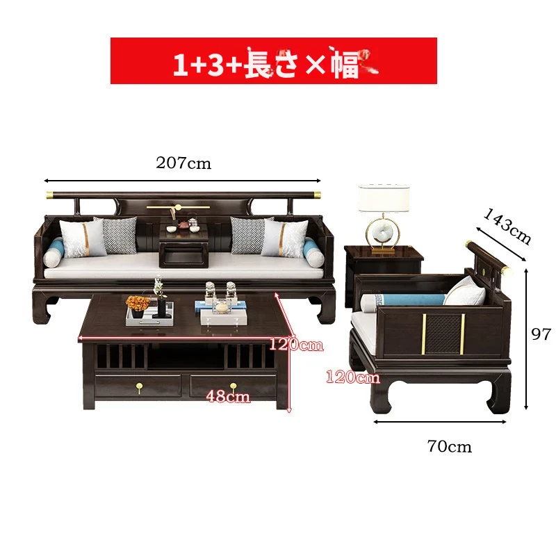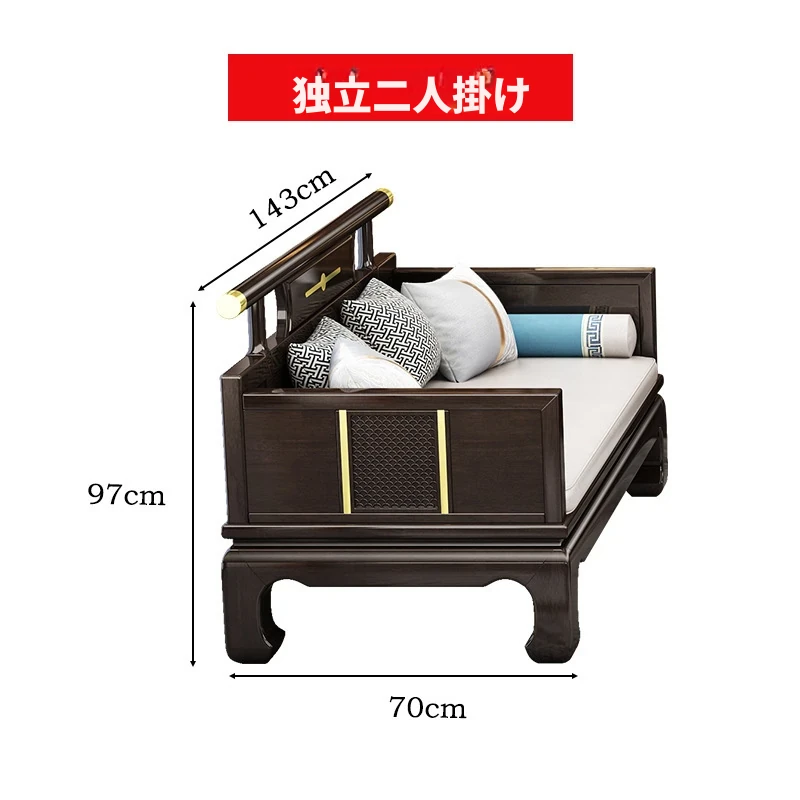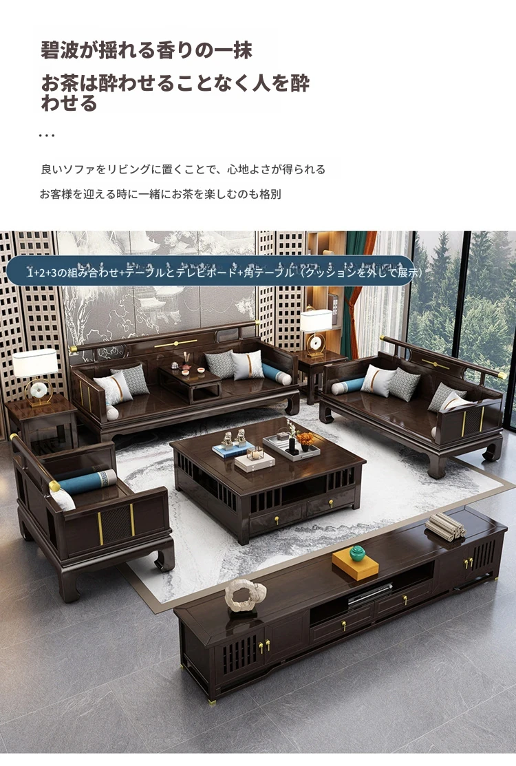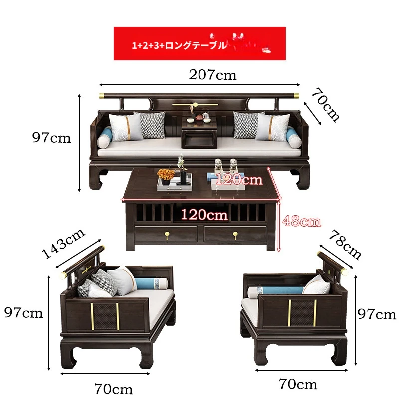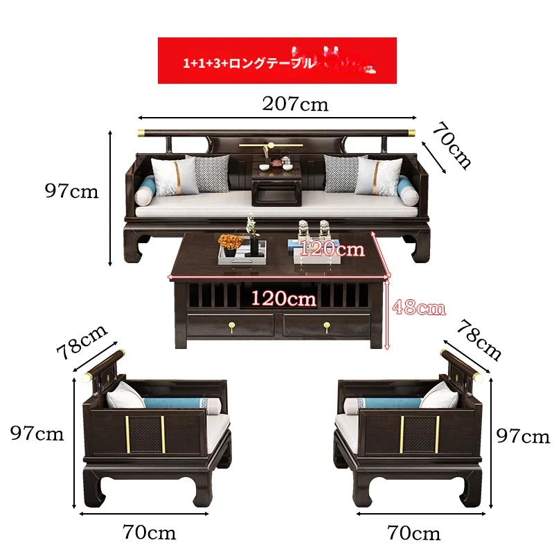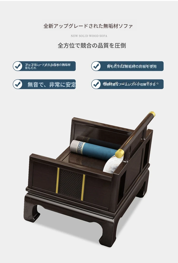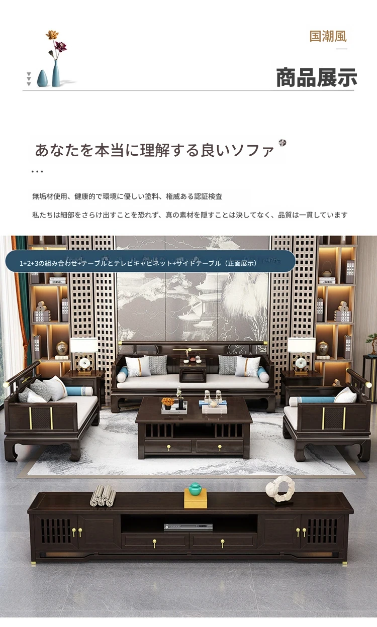 新中式の実木ソファセット - ローハンベッドとプッシュプル折りたたみ機能付き!小さなお部屋にもぴったりな多機能家具で、快適なリビング空間を演出します。