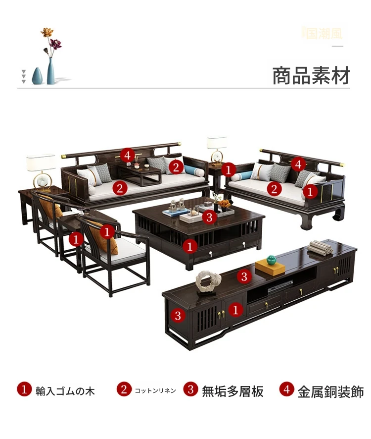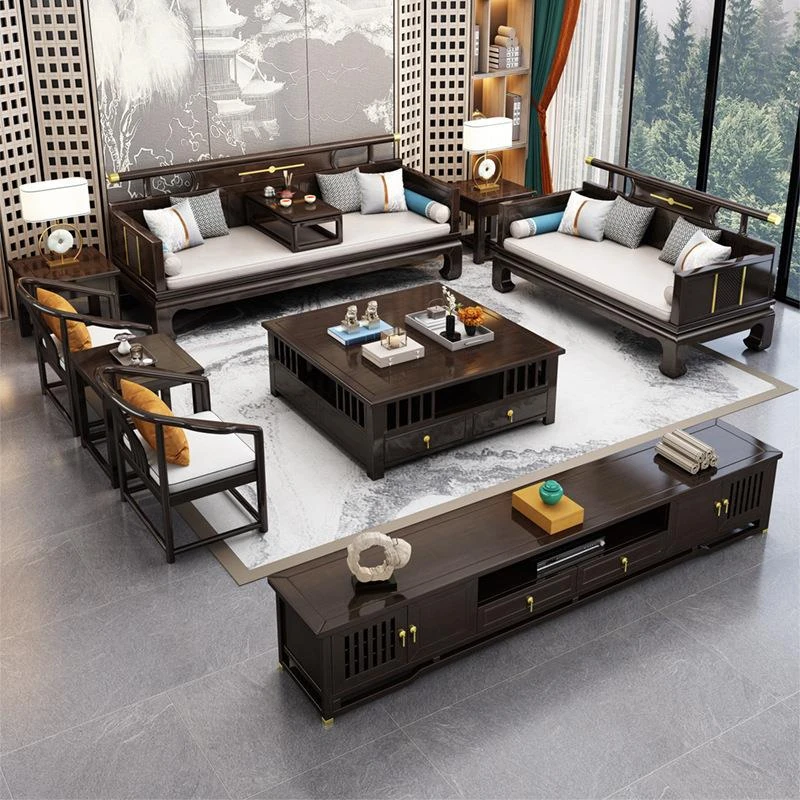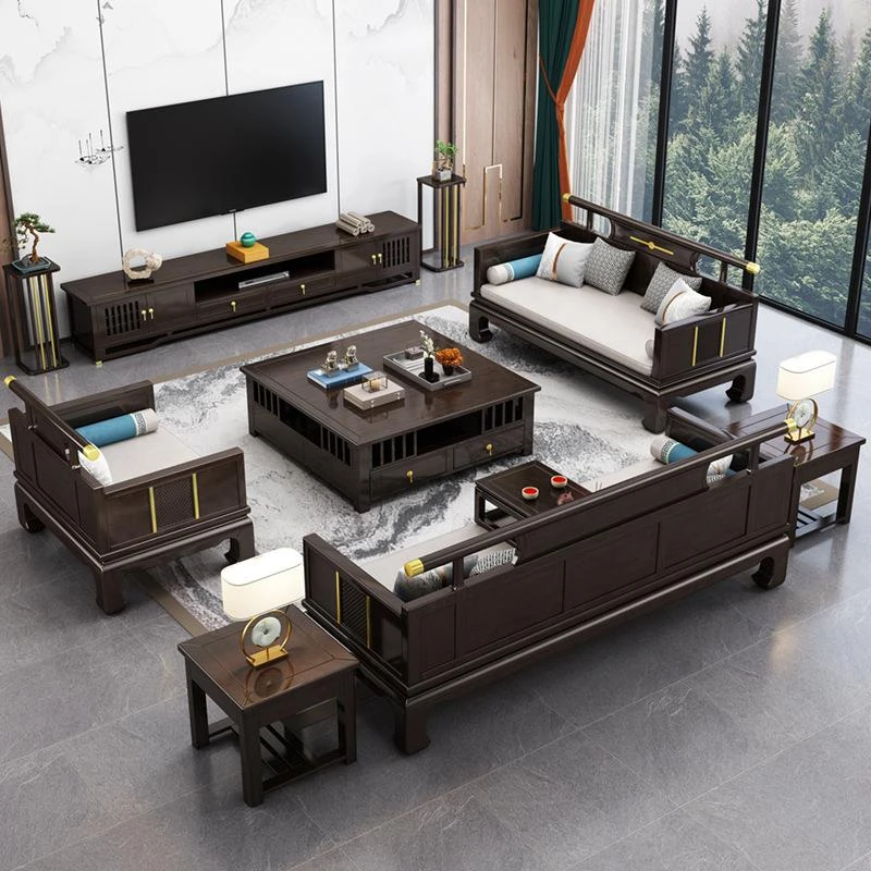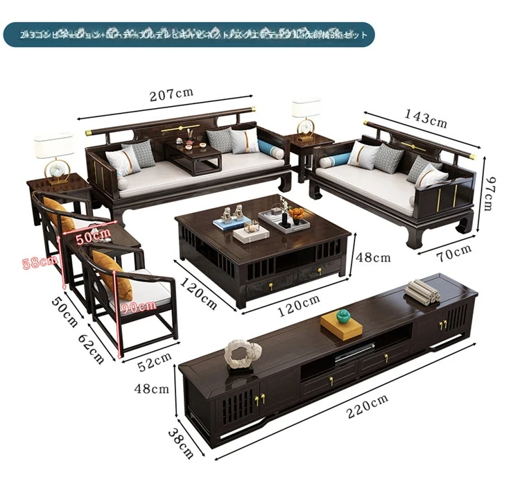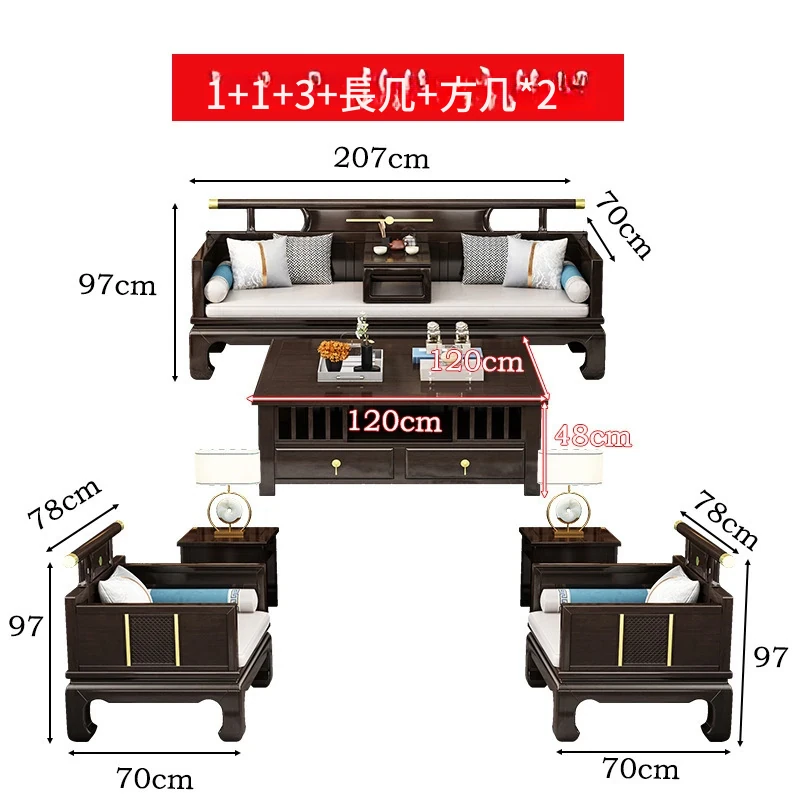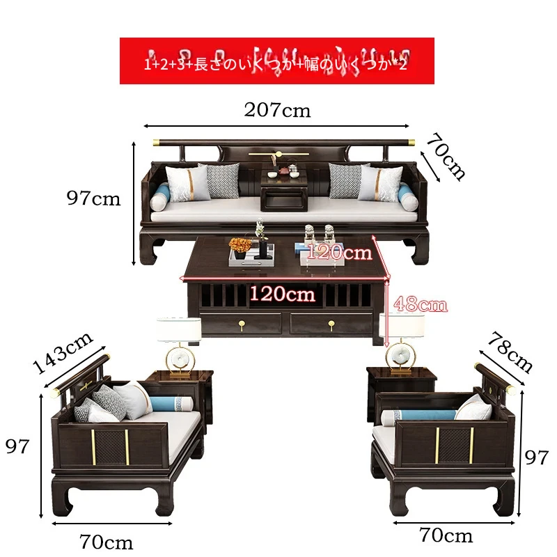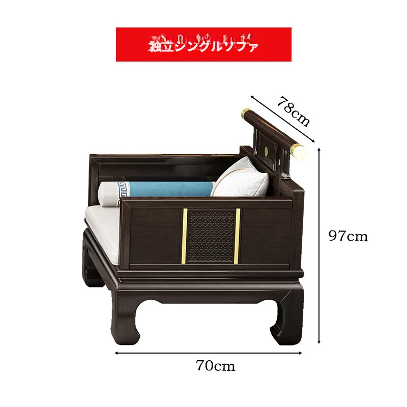新中式の実木ソファセット - ローハンベッドとプッシュプル折りたたみ機能付き!小さなお部屋にもぴったりな多機能家具で、快適なリビング空間を演出します。