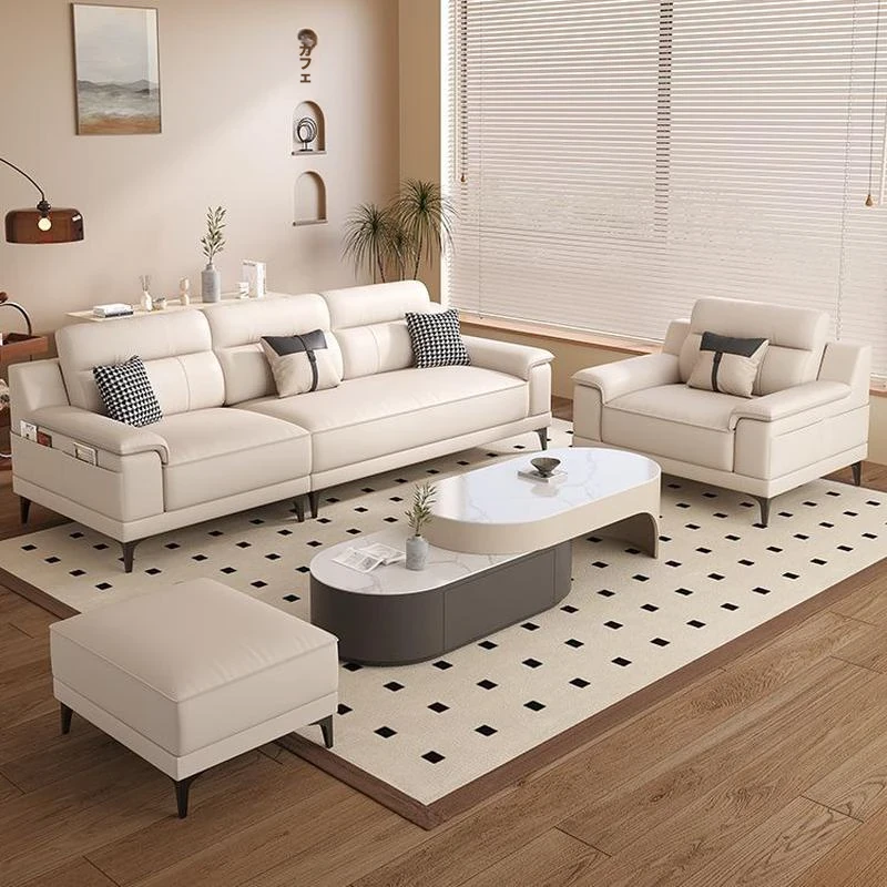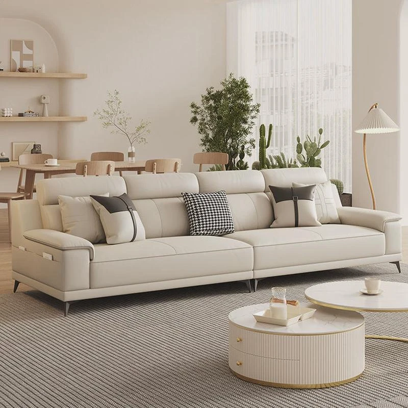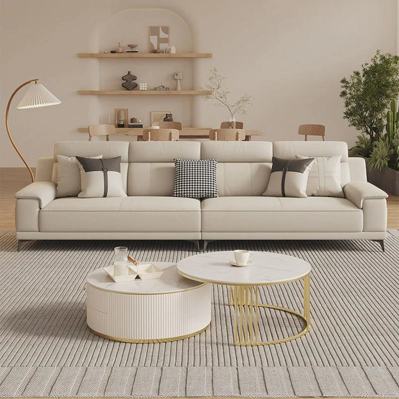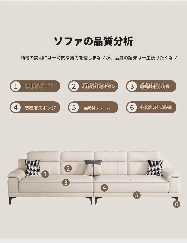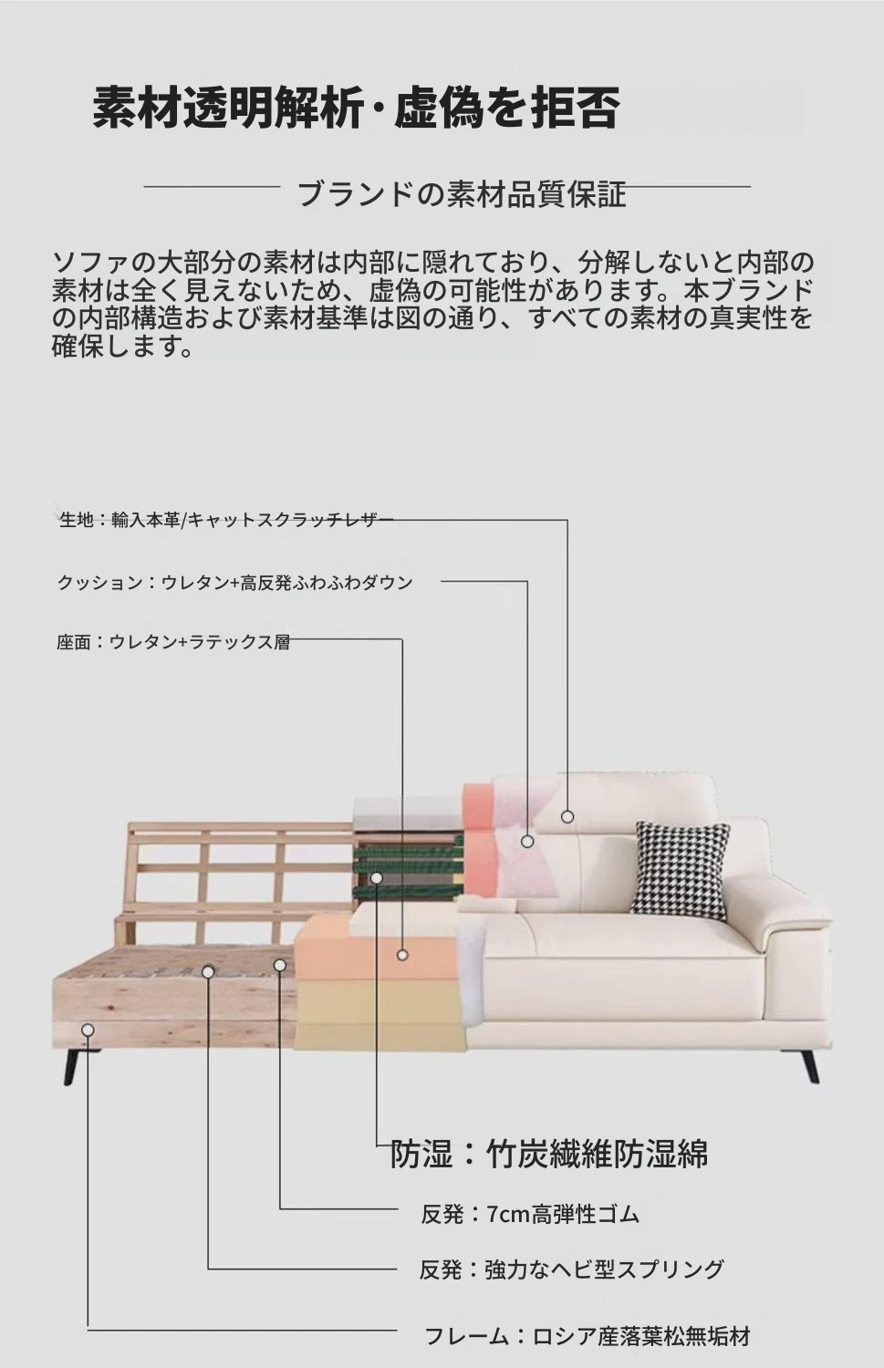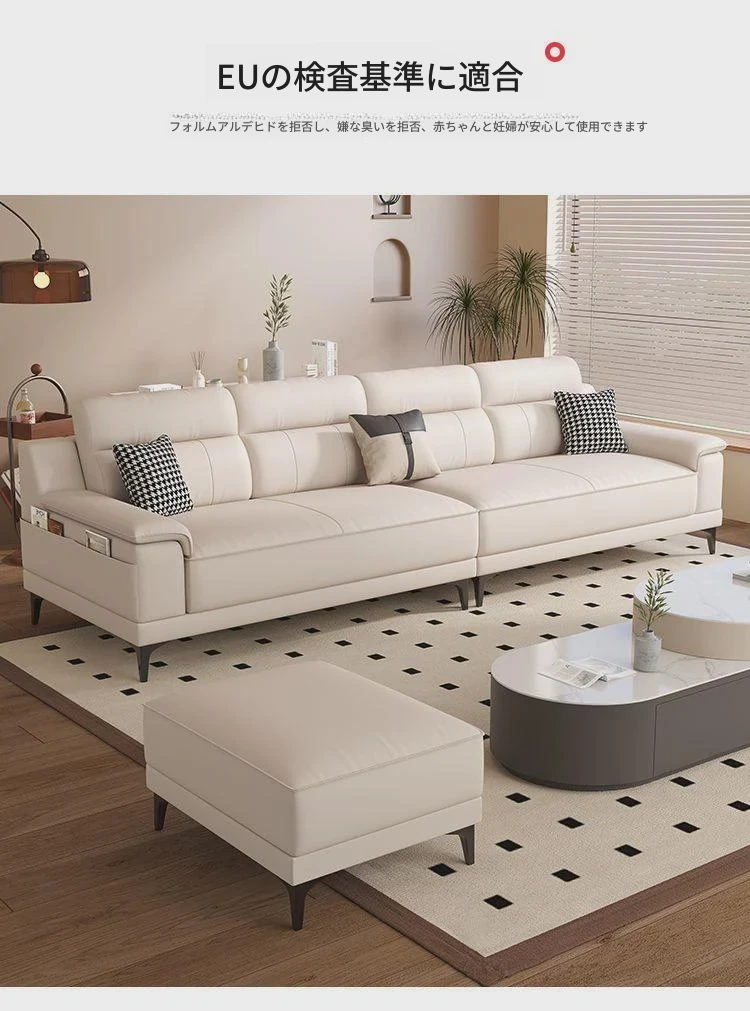新作!ミニマリストデザインのクリーム色キャットクロー真皮ソファー。北欧モダンスタイルで、リビングルームに最適。小型スペースにもぴったり!お手入れ不要で、シンプルな美しさをお楽しみください。