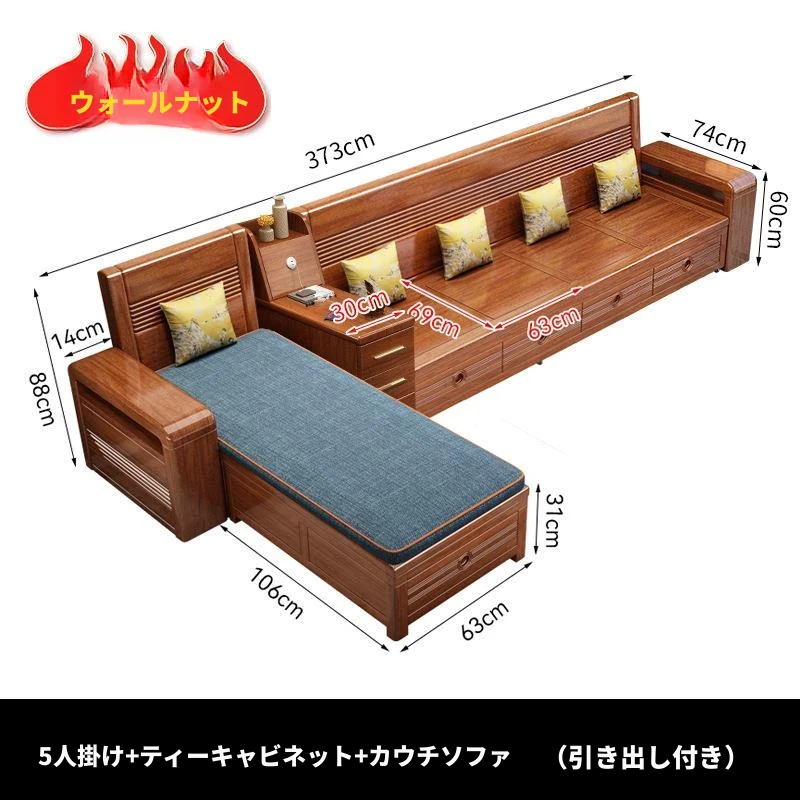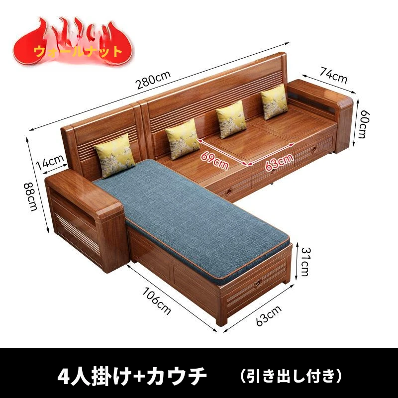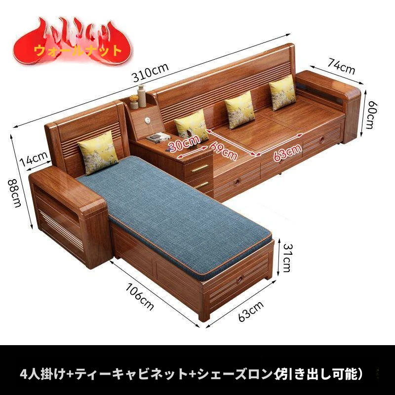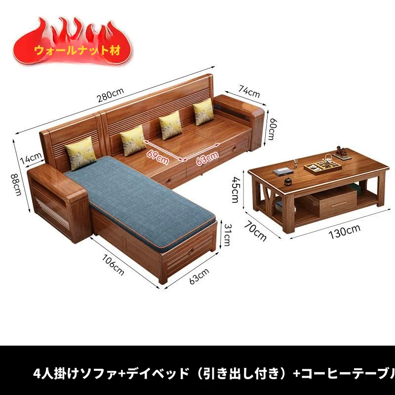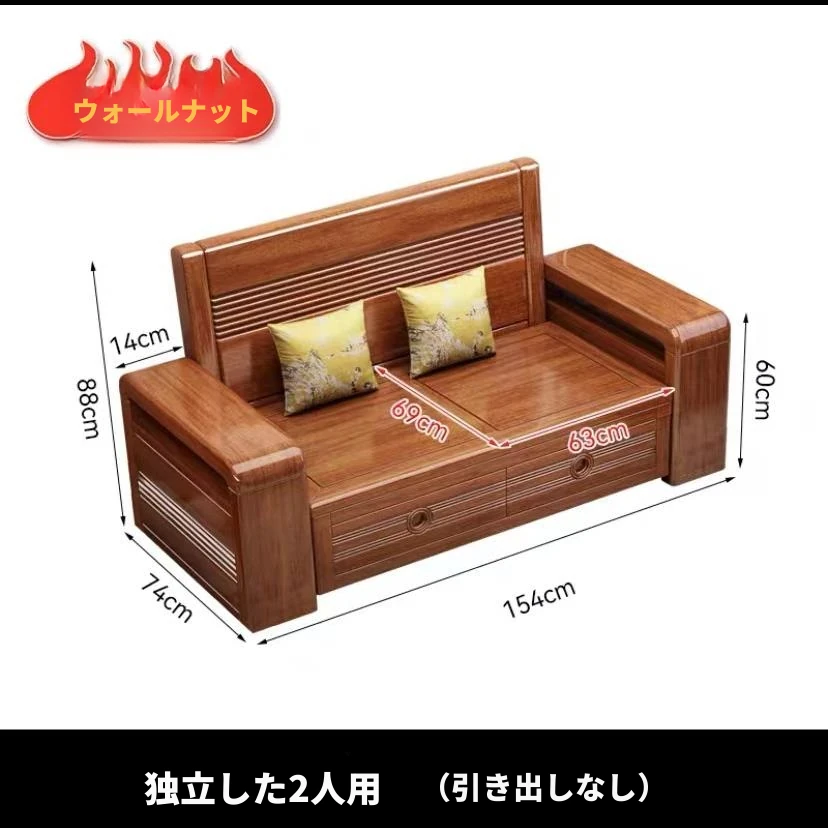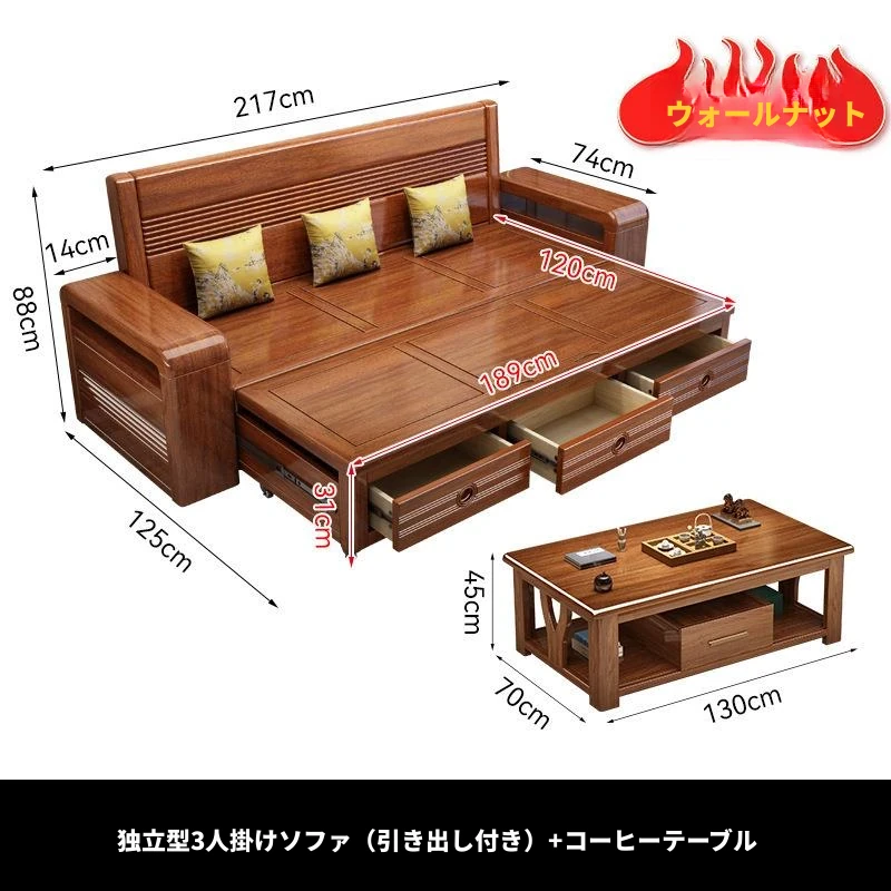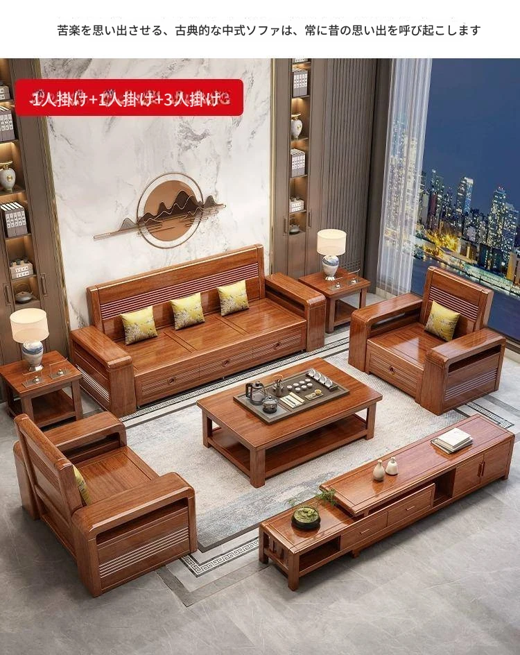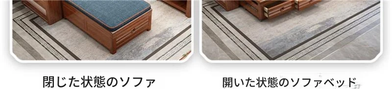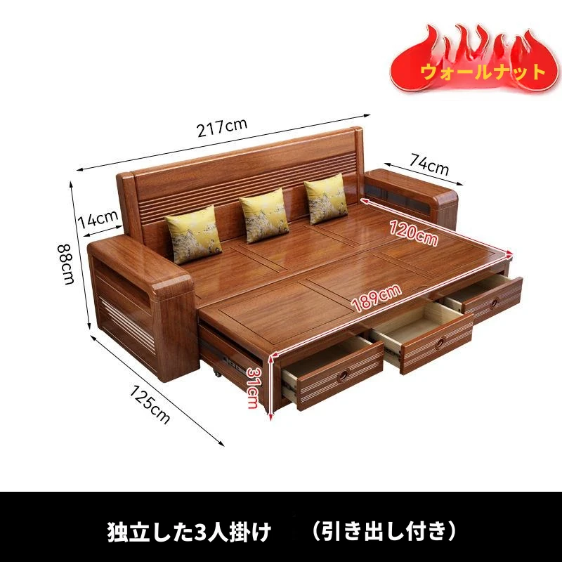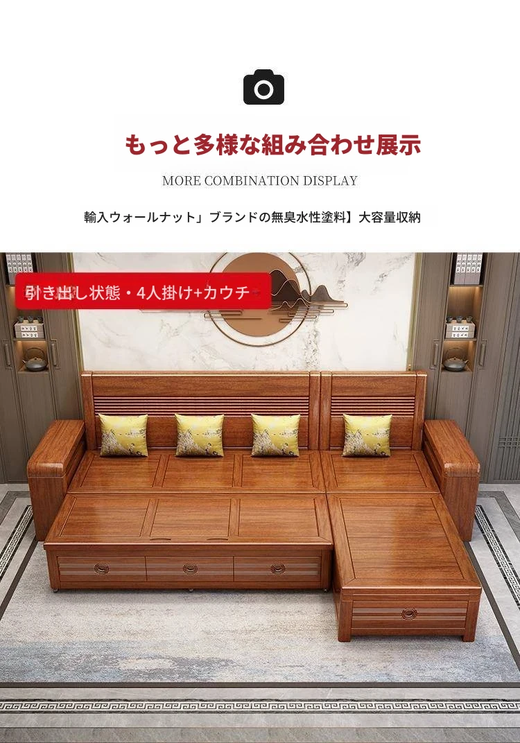 新作!おしゃれなリビング用無垢材ソファ - コンパクトな3人掛け、引き出し収納付き・新中式デザインの多機能ソファベッド!狭いお部屋にもぴったりなスタイルと機能性を兼ね備えた一品です。