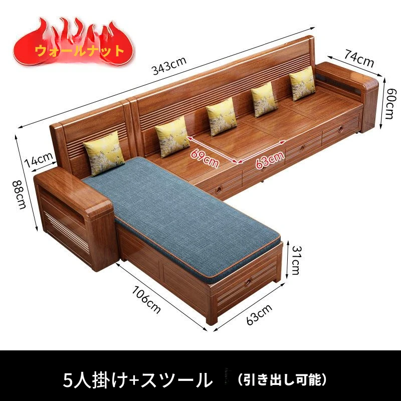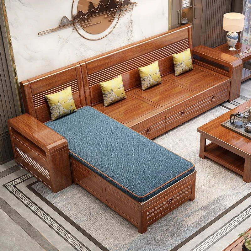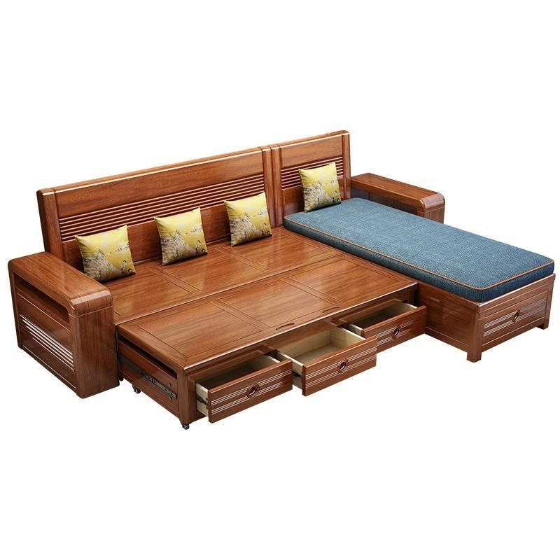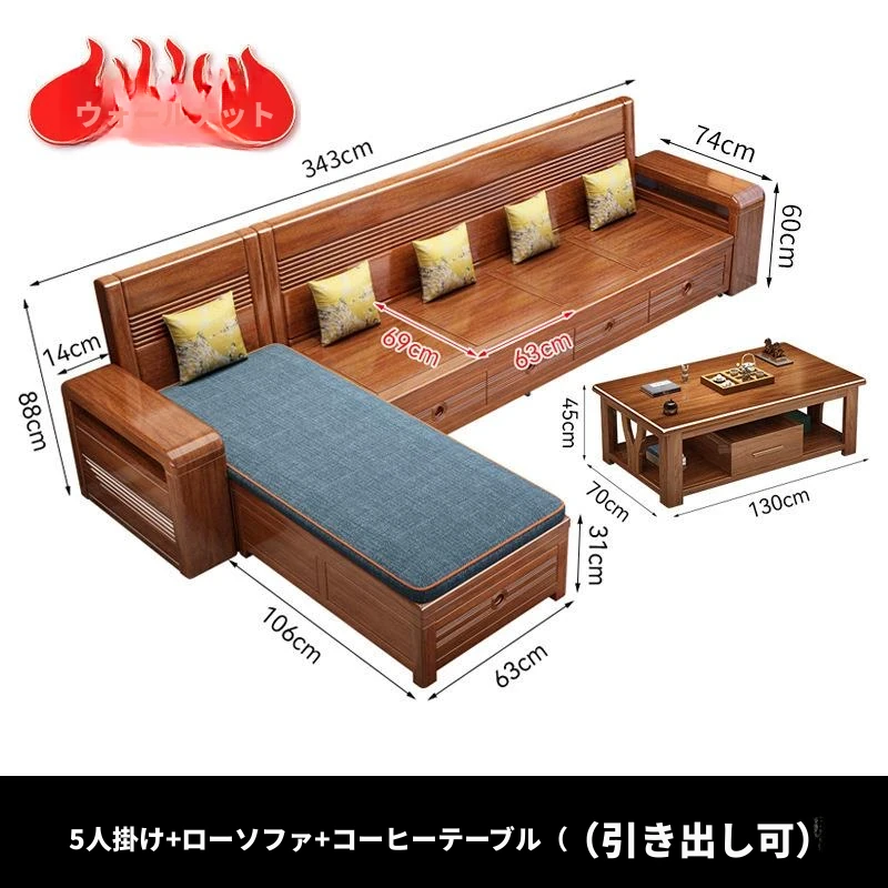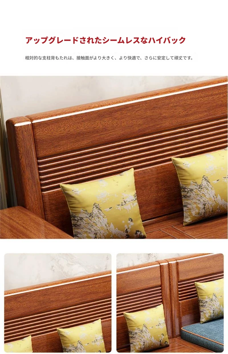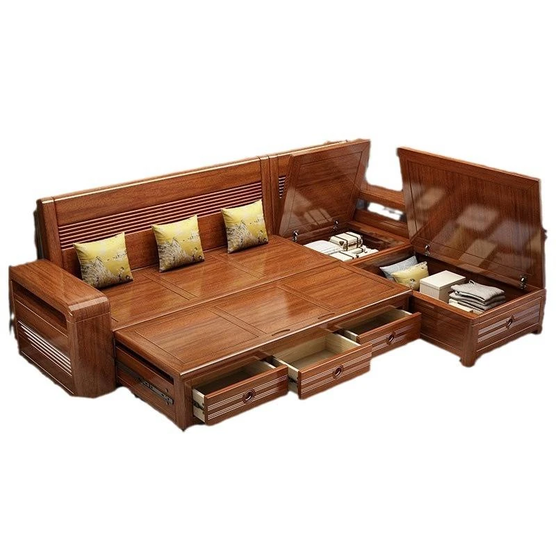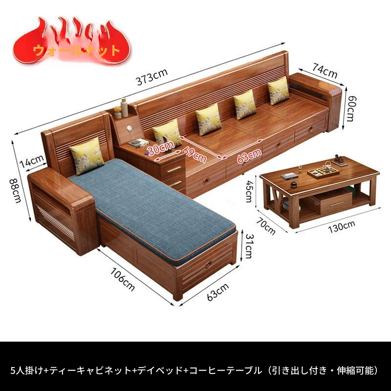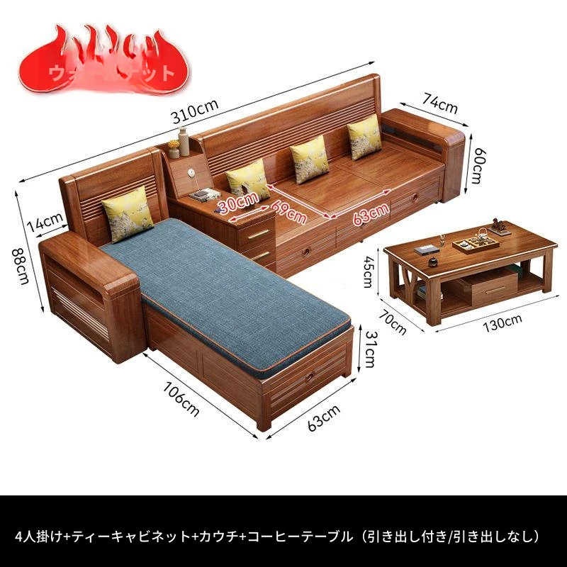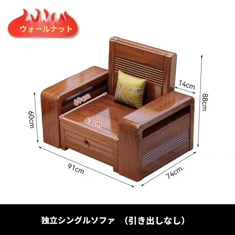 新作!おしゃれなリビング用無垢材ソファ - コンパクトな3人掛け、引き出し収納付き・新中式デザインの多機能ソファベッド!狭いお部屋にもぴったりなスタイルと機能性を兼ね備えた一品です。