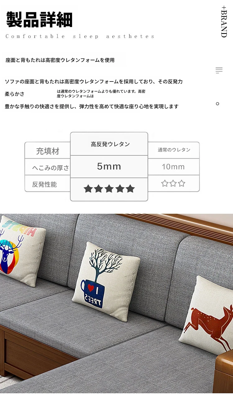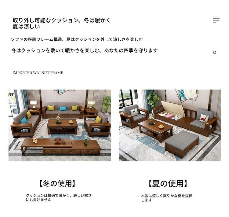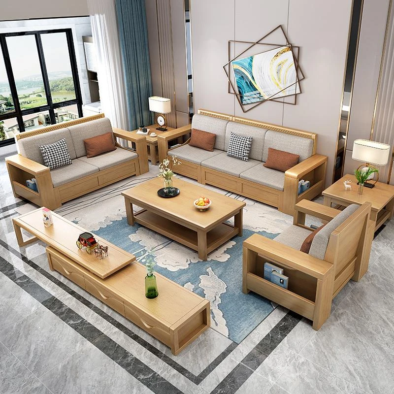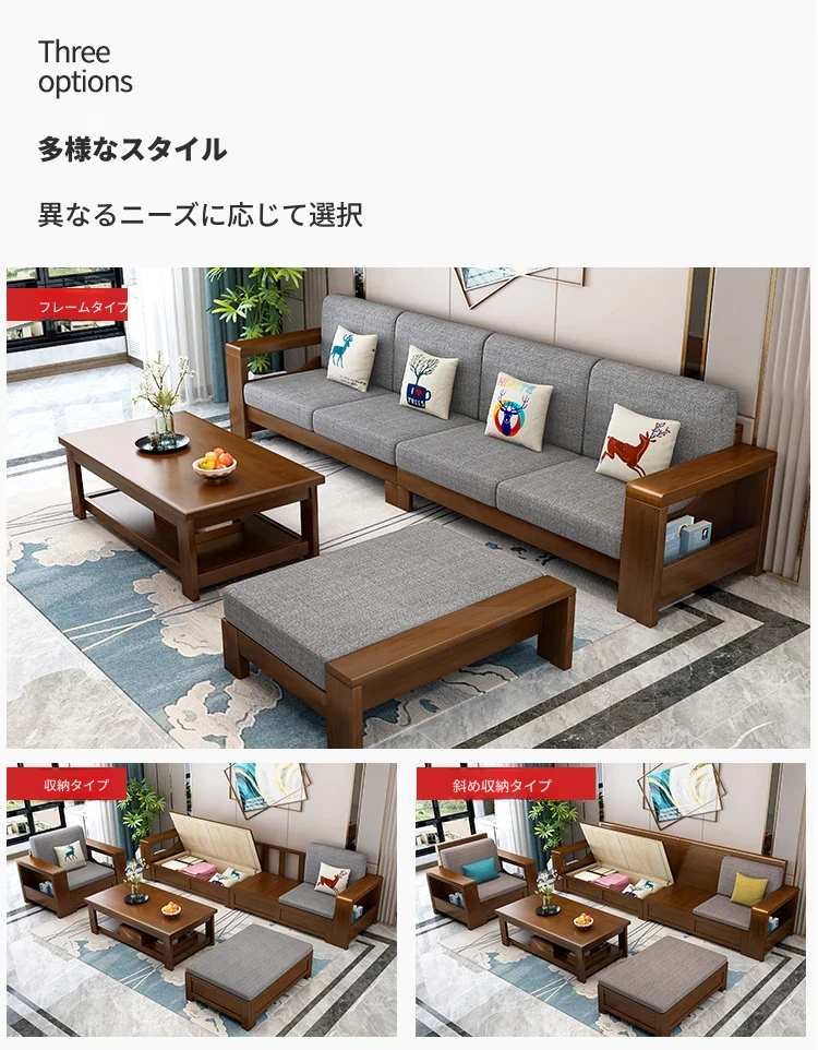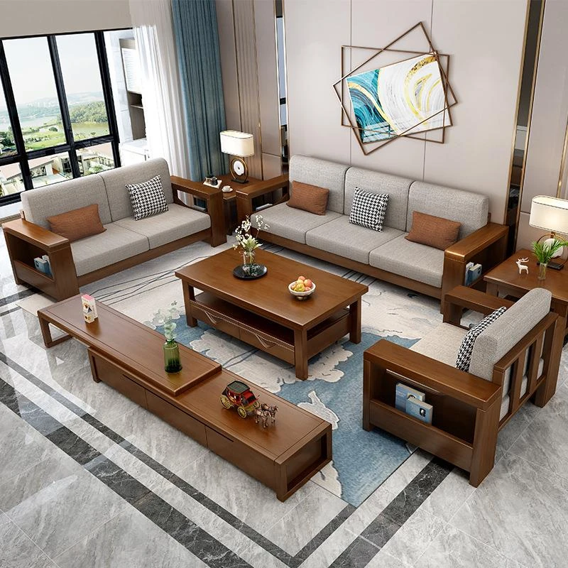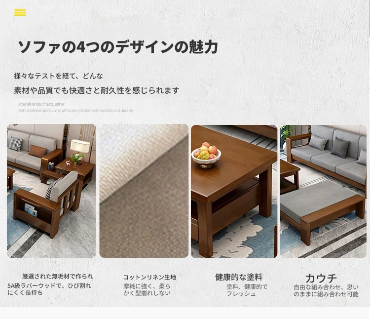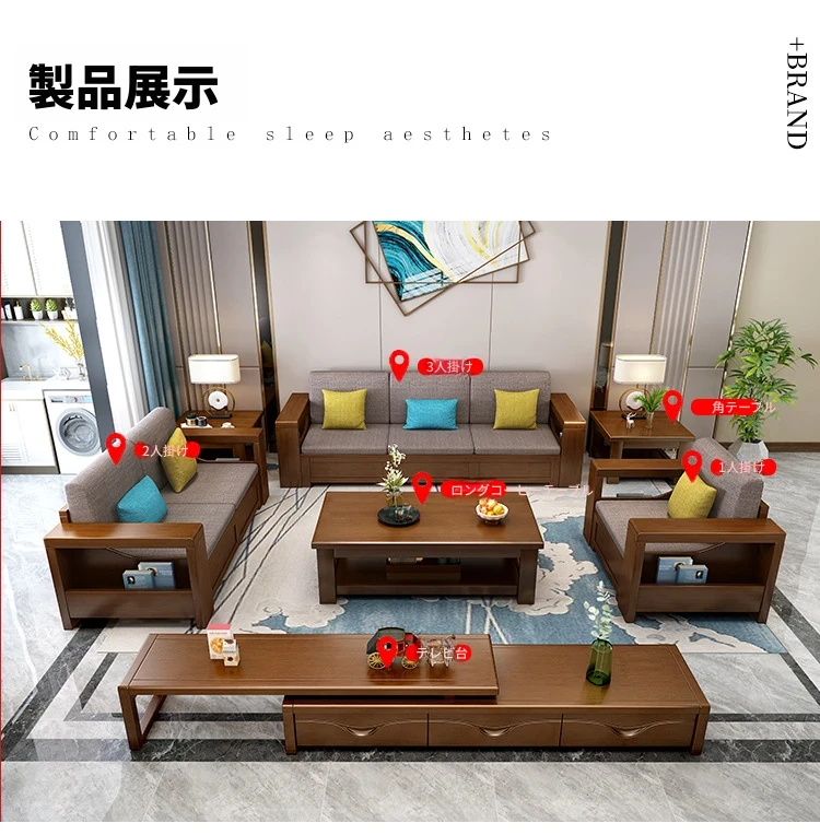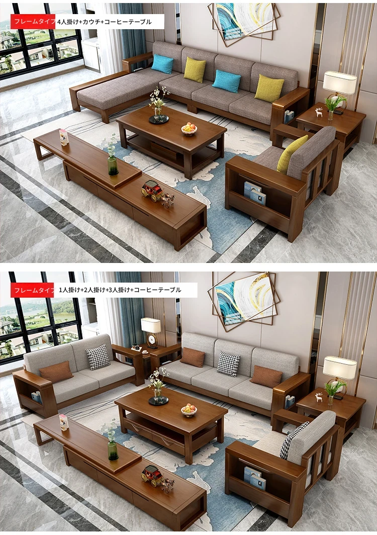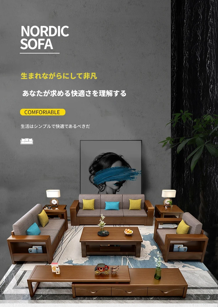 北欧スタイルの布製実木ソファセット|小型・大型住宅やオフィスに最適な多機能リビング家具|ホテルにもぴったりの高品質デザイン