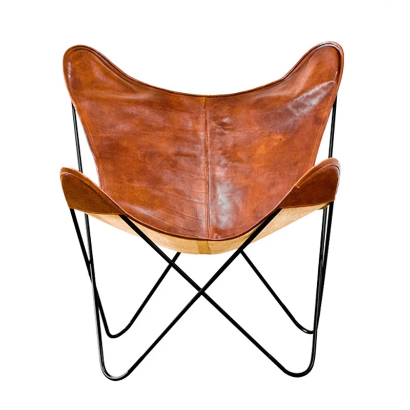 北欧スタイルのリラックスチェア!本革使用のバタフライチェア、デザイナーによる一人用の快適な昼寝ソファ。おしゃれで居心地抜群の背もたれ付き、リビングにぴったり!