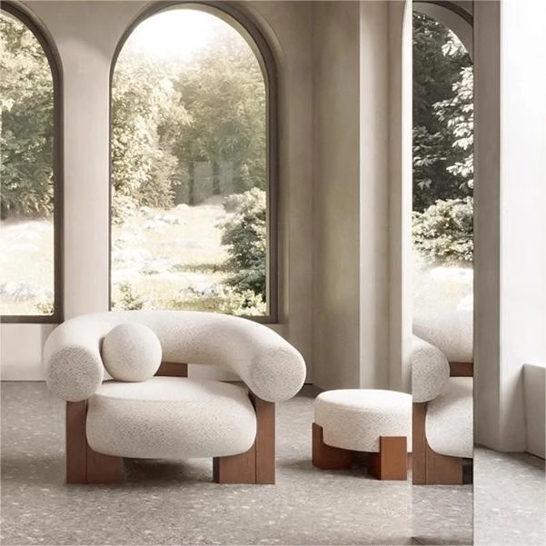 北欧スタイルの軽奢華モダンデザイン!デザイナーによる一人掛け・三人掛けの高級無垢材ソファ。美容院や不動産ショールーム、ヴィラエリア、ホテルに最適な上質なソファで、洗練された空間を演出します。