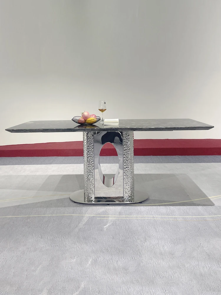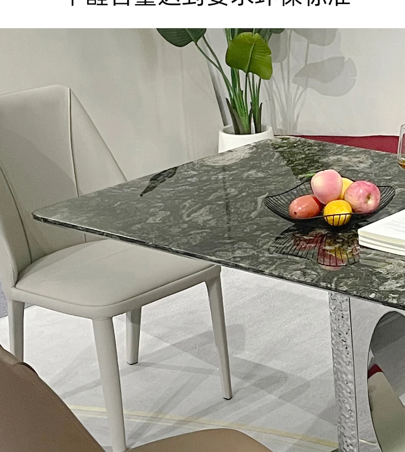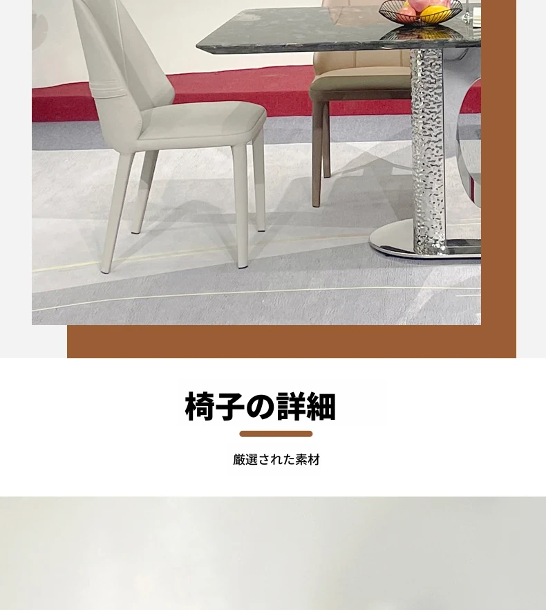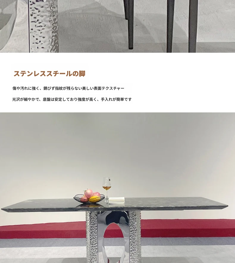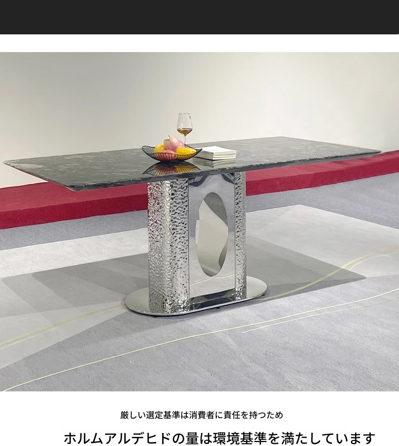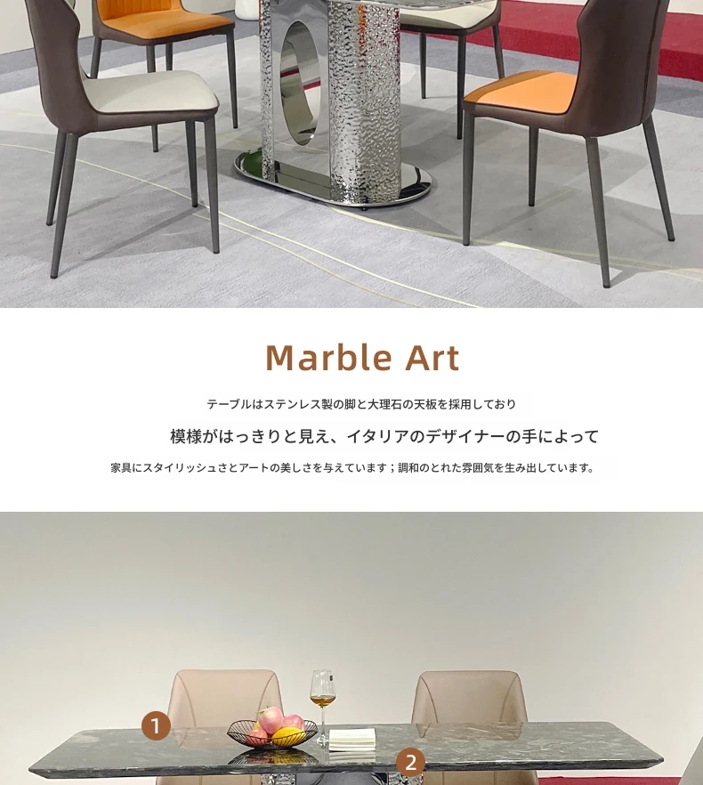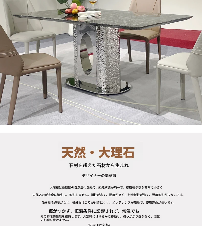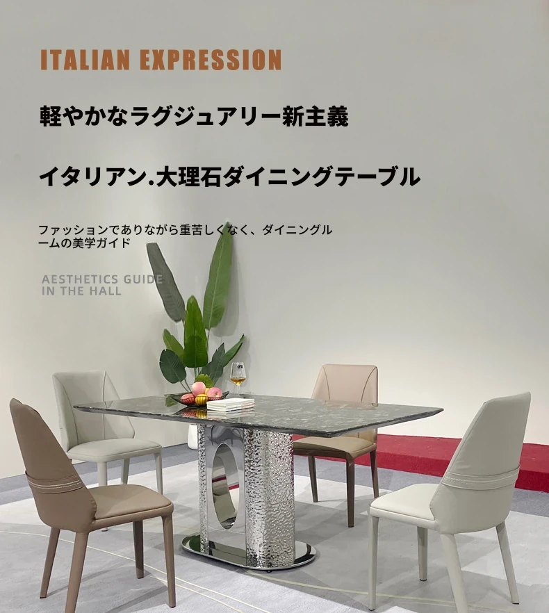 北欧風の軽奢大理石テーブル|モダンでシンプルな小型ダイニングテーブル|長方形・ステンレス製フレーム|おしゃれな家庭用食卓に最適!