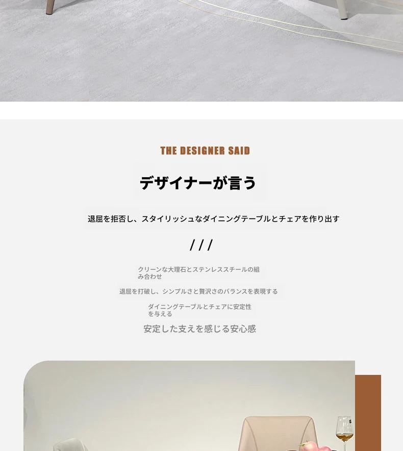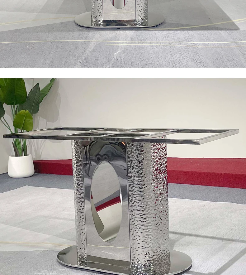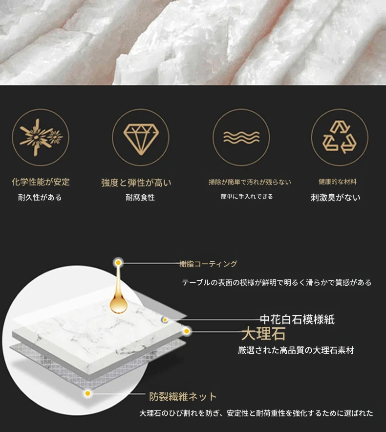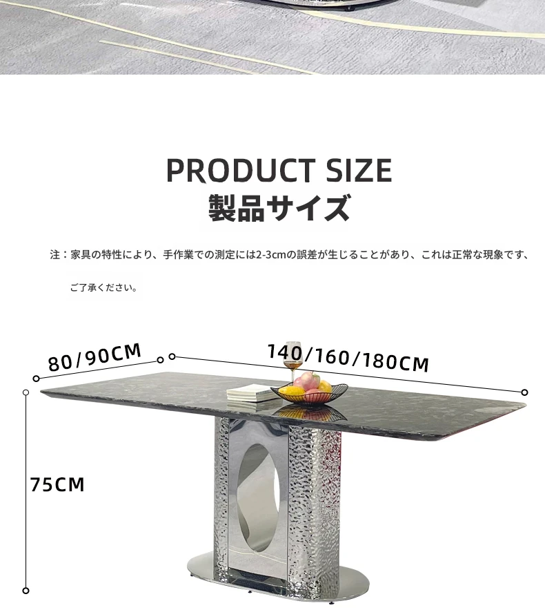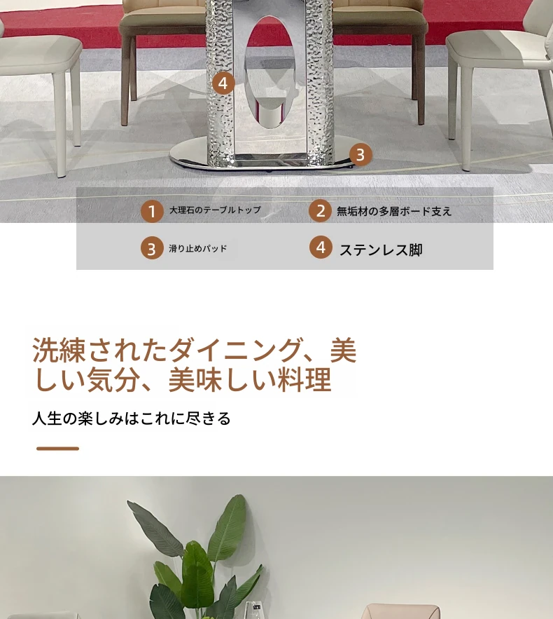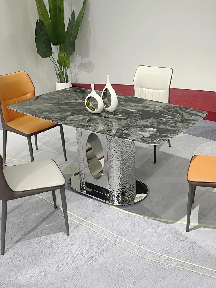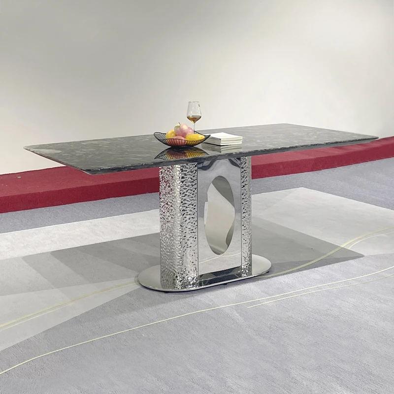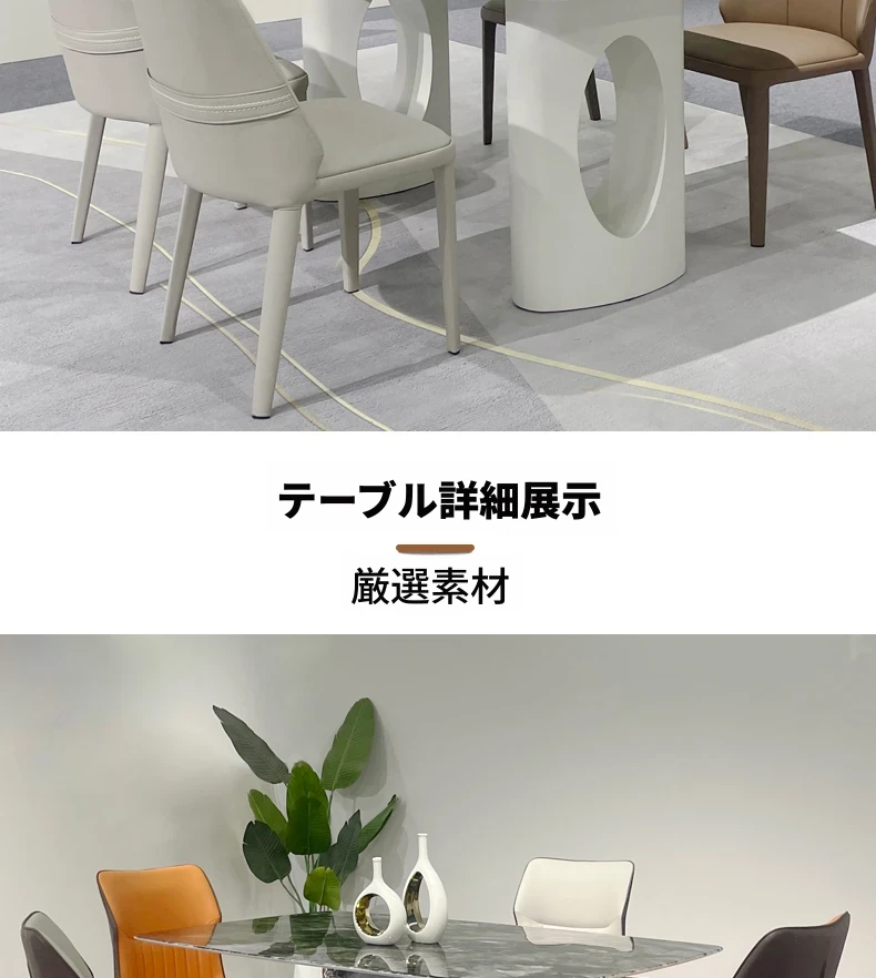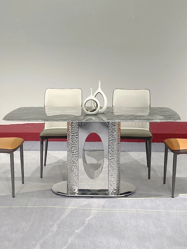 北欧風の軽奢大理石テーブル|モダンでシンプルな小型ダイニングテーブル|長方形・ステンレス製フレーム|おしゃれな家庭用食卓に最適!