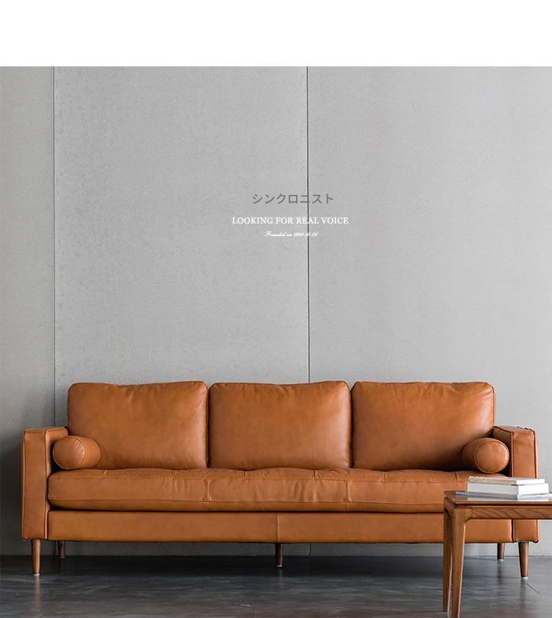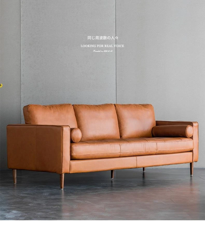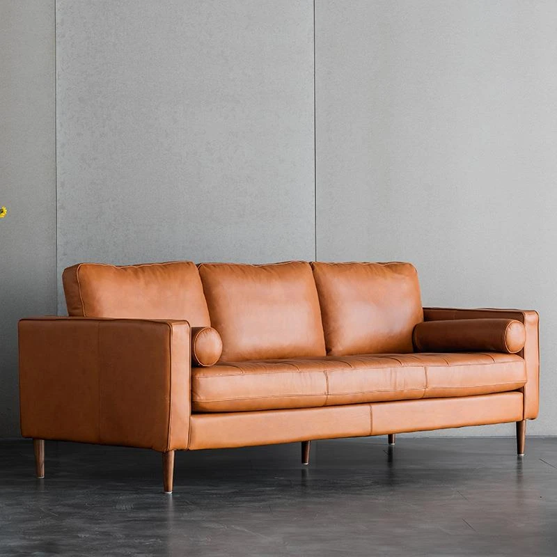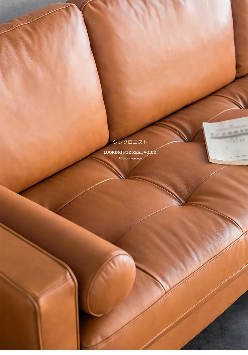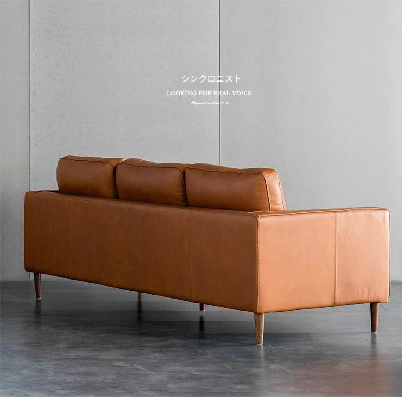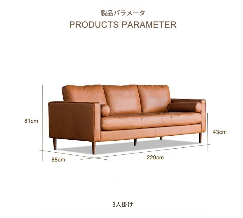 同頻者リビング用北欧モダン本革ソファー - 上質な牛革使用、シンプルでスタイリッシュなデザイン、小型スペースにもぴったりな3人掛けソファ!快適な座り心地でお部屋を華やかに演出。
