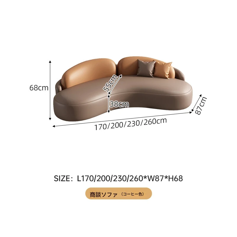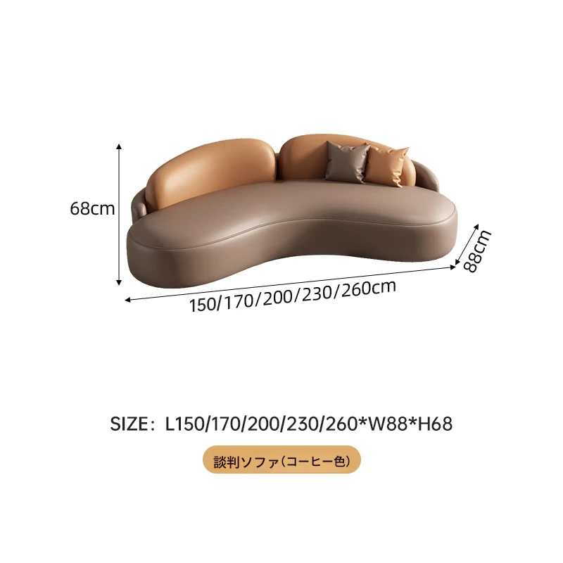 会談用五人ソファ(2.6メートル)【コーヒー色】