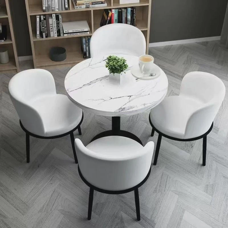 北欧スタイルのシンプルな接客テーブルと椅子のセット - オフィスや休憩スペースに最適!おしゃれなバルコニーや会議室にもぴったりの小さな円形テーブルで、心地よいひとときを演出します。
