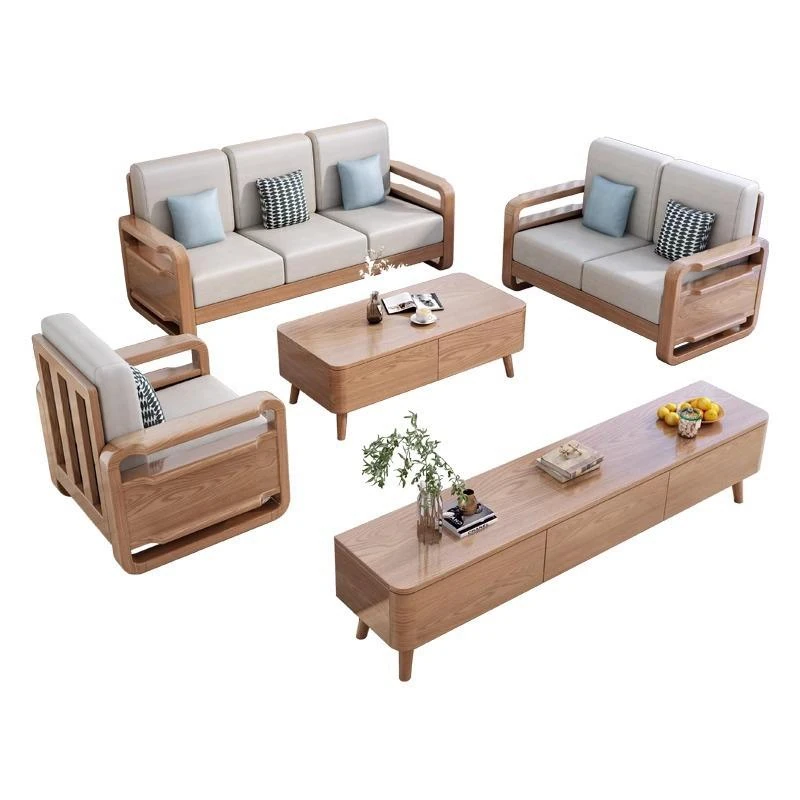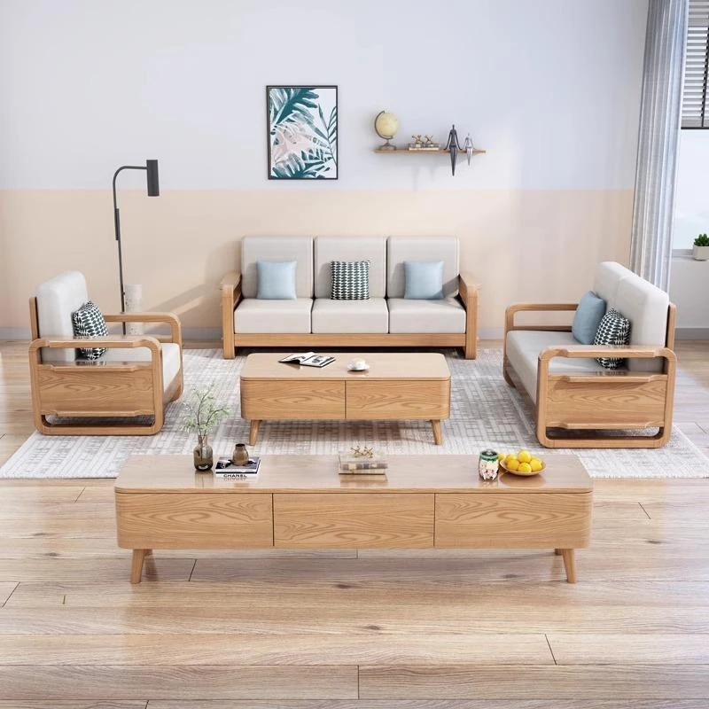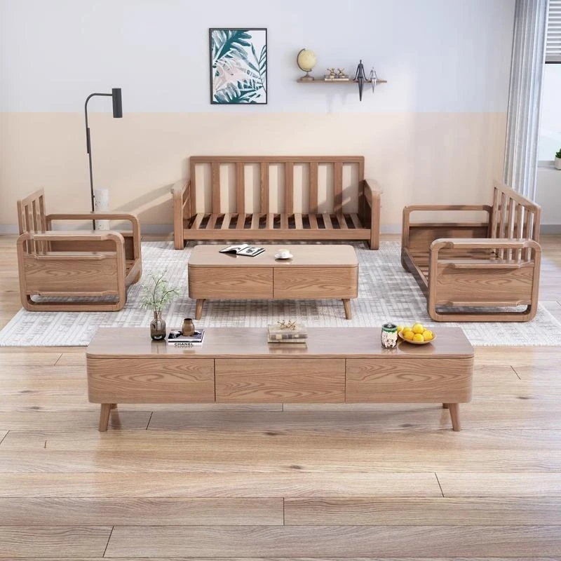 ホワイトアッシュ無垢材ソファ123コンビネーション - 北欧スタイルの小型住宅に最適!現代的でシンプルなデザインの3人掛け木製リビング家具。快適さとスタイリッシュさを兼ね備えた、あなたの家にぴったりの選択!