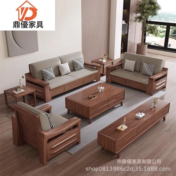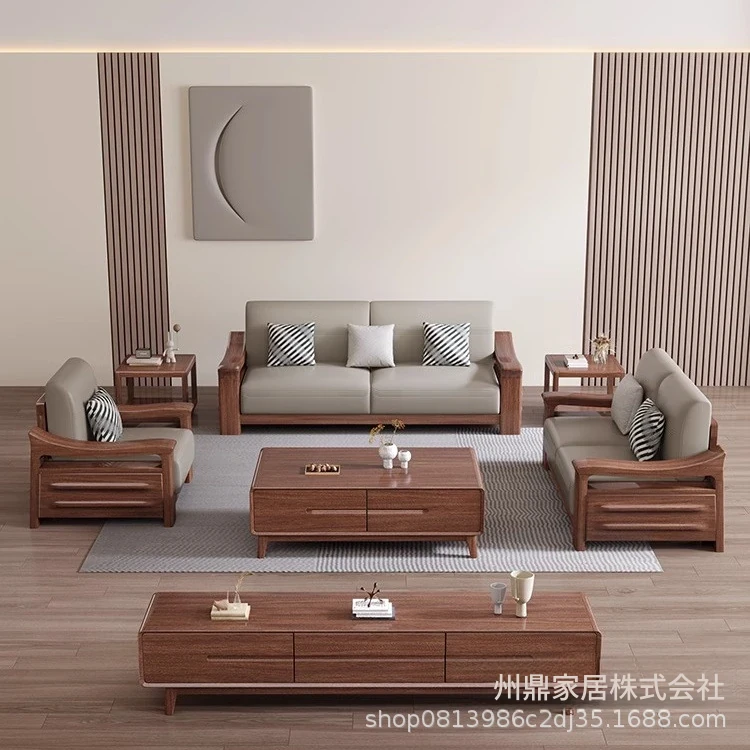 北欧風ウォールナット無垢材ソファセット - 小型リビングにぴったり!収納機能付きのモダンシンプルなファブリックソファで、快適なひとときをお楽しみください。