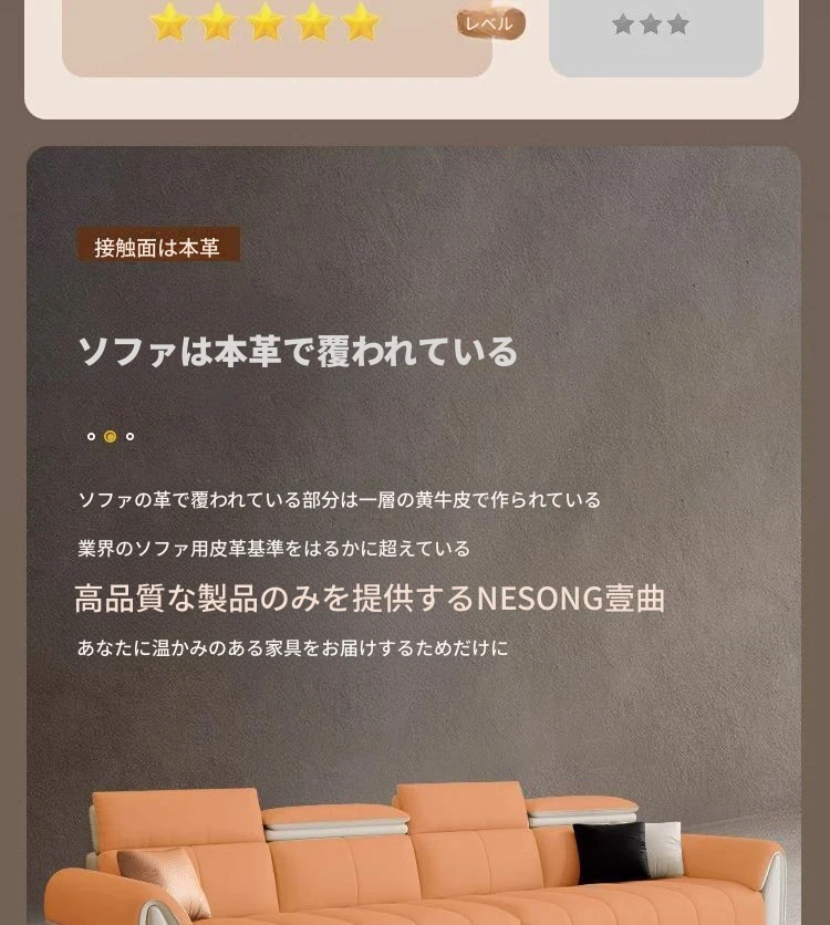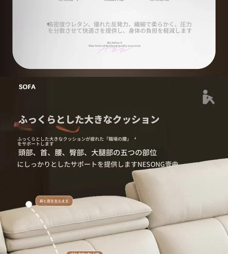 接触面頭層牛革+ラテックス仕様+松のフレーム+調整可能なヘッドレスト