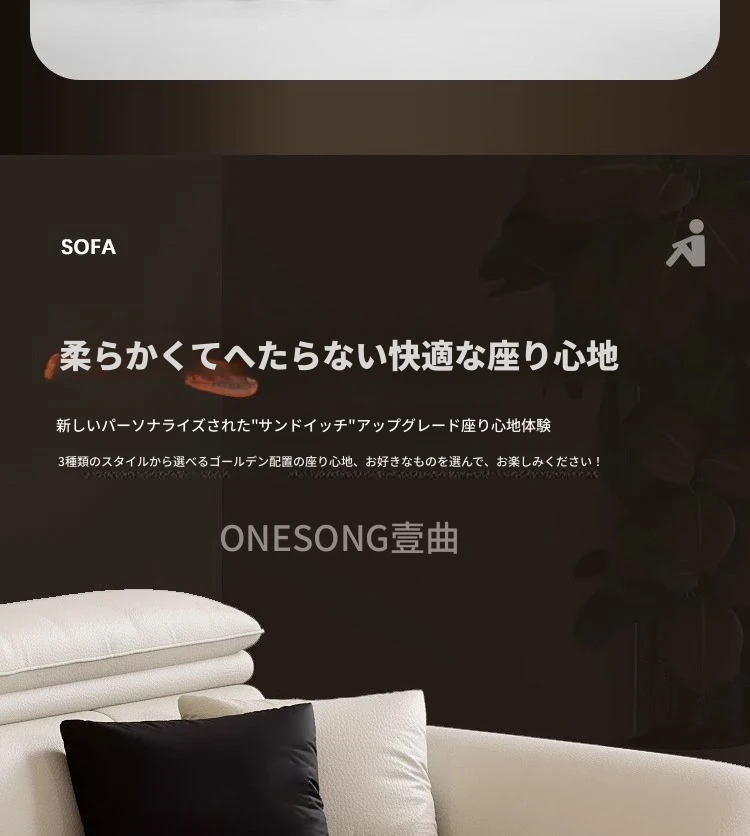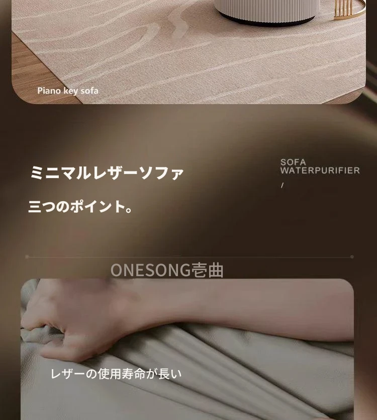 一曲の高級本革ソファ 小型モダンミニマリスト向けリビング用 ピアノ鍵盤デザインのスリム3人掛けソファ - 快適さとスタイルを兼ね備えた贅沢な選択!