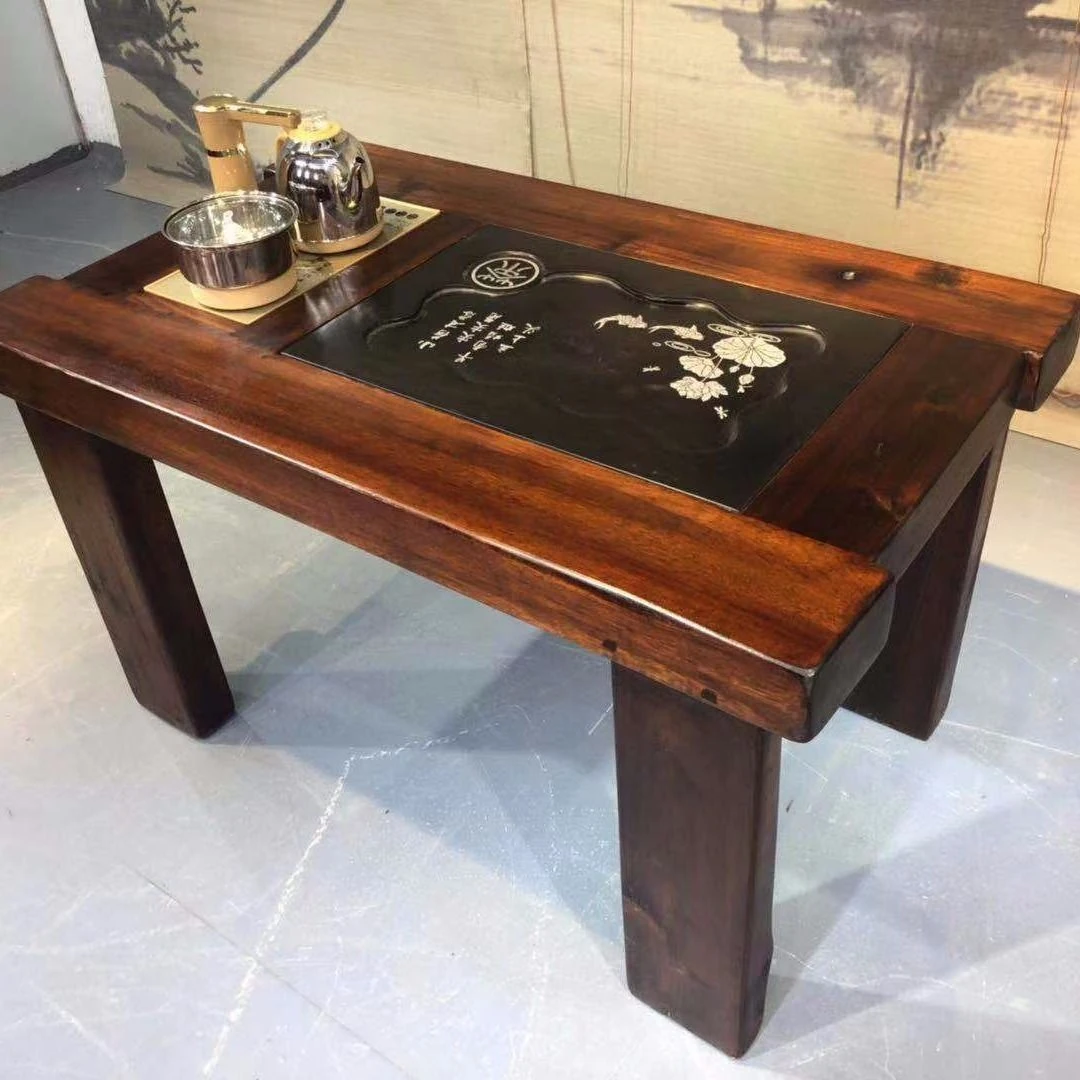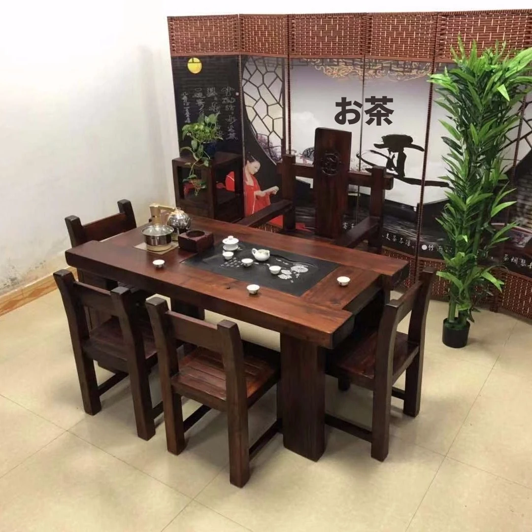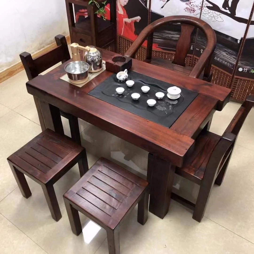 高級感溢れる老船木製茶卓セット|新中式デザインの実木製ティーテーブル|リビングにぴったりなコンパクトサイズ|優雅なティータイムを演出します!