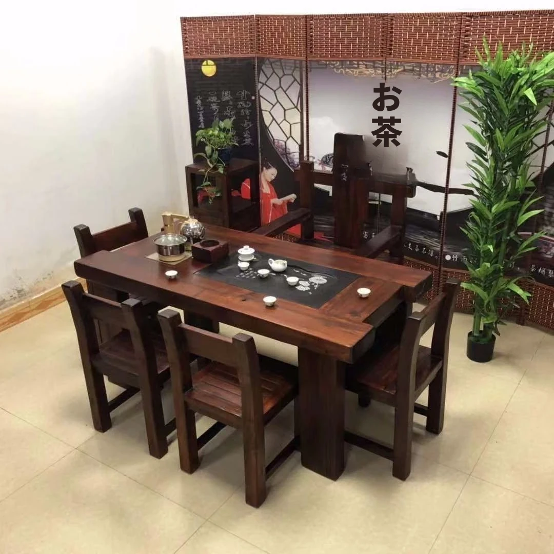 1.6メートル茶卓+4背もたれ+1彫刻のドラゴン