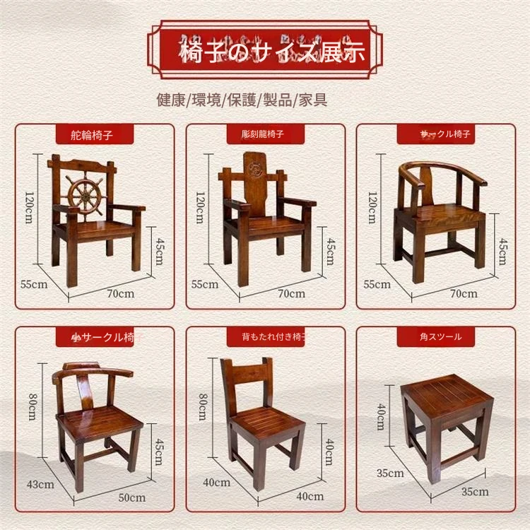 1.35メートル茶卓+4背もたれ+1彫刻のドラゴン