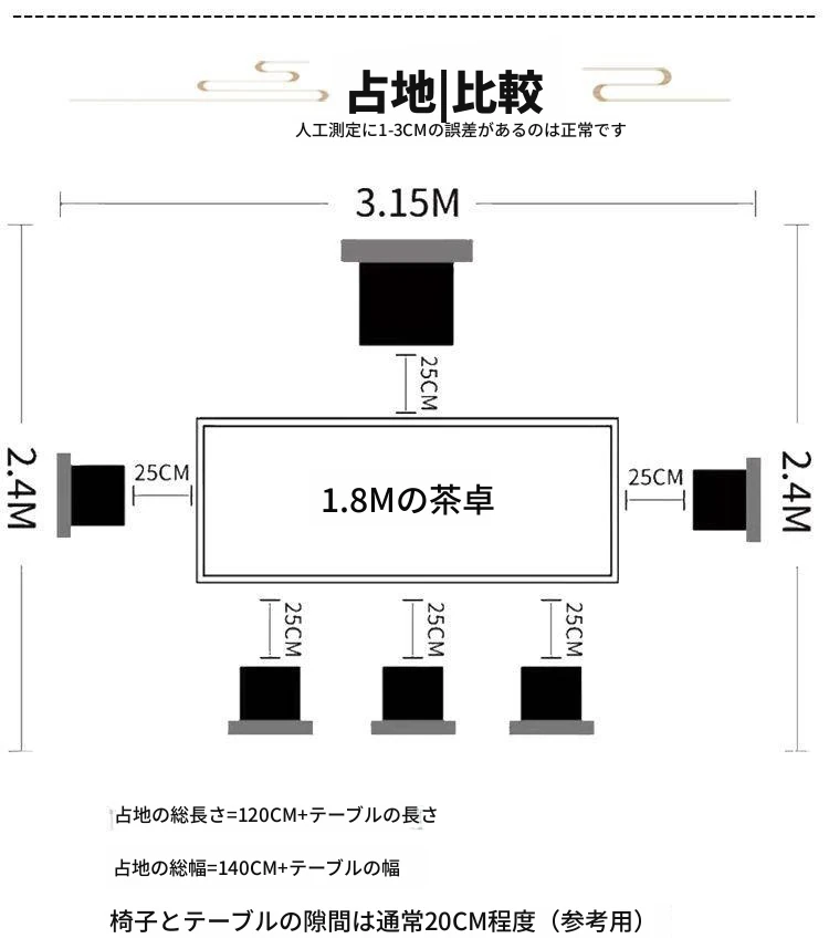 2.4メートル囲碁盤茶卓+5背もたれ+1舵取り