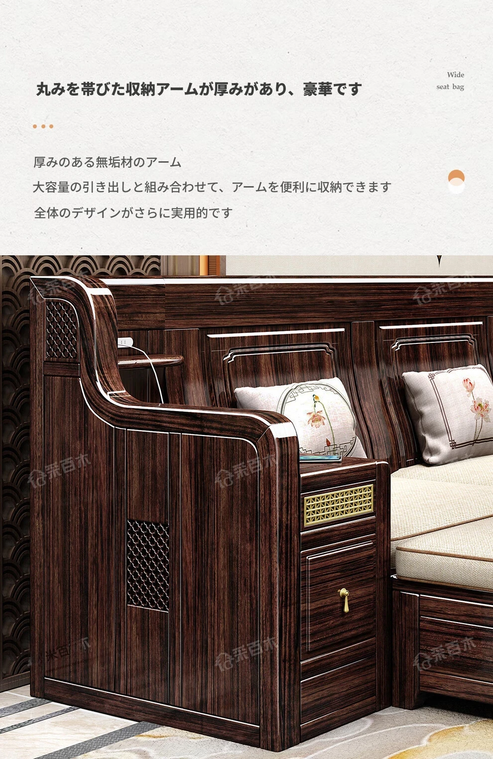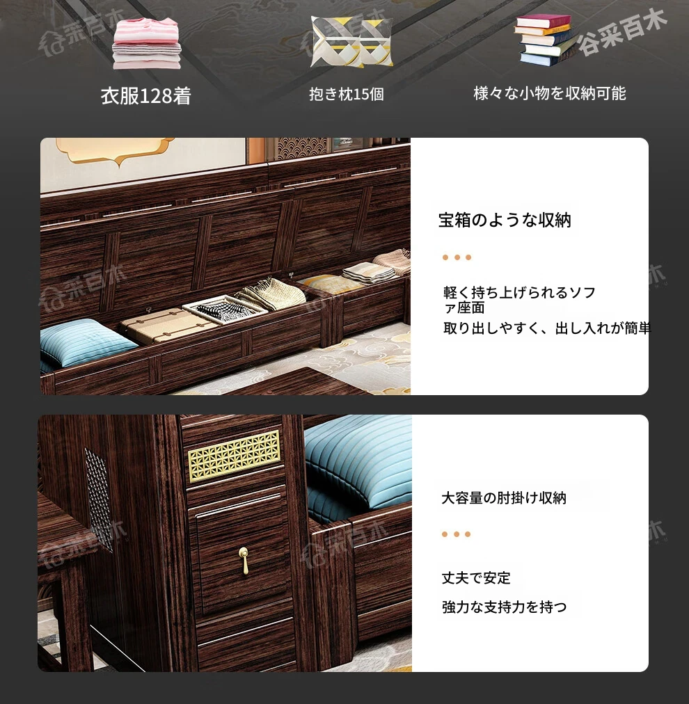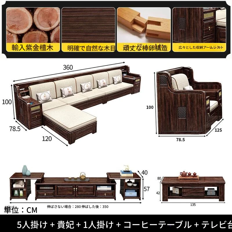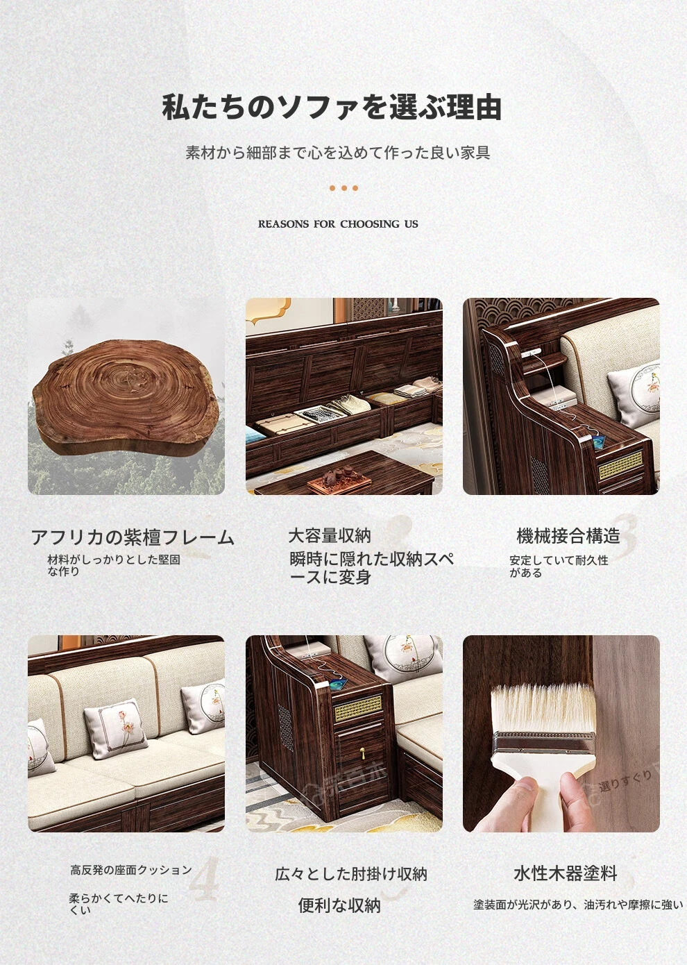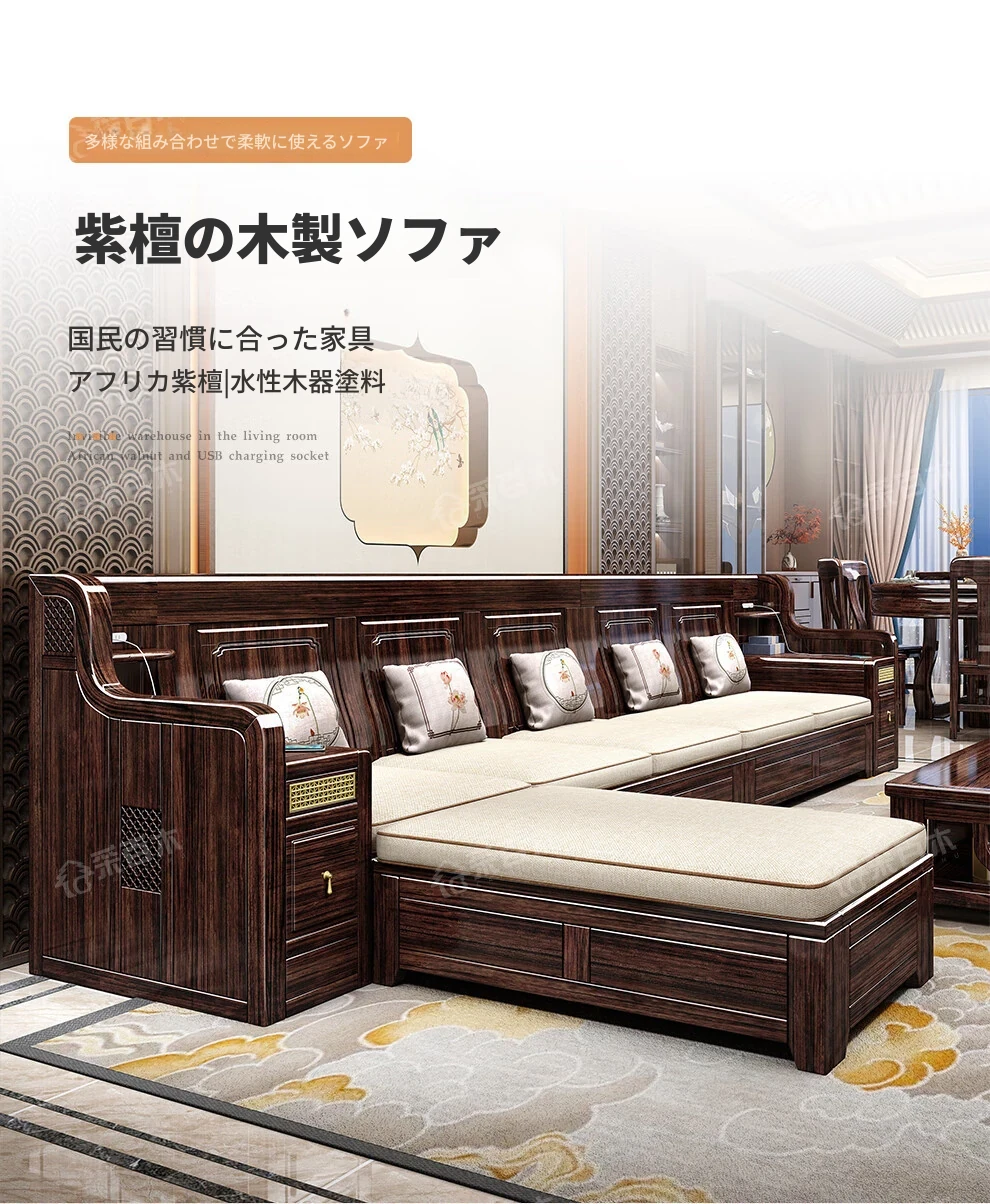 紫金檀木の実木製ソファセット - 冬も夏も使える収納付きの貴妃ソファ!高級感溢れる中国風デザインで、別荘や家庭のリビングにぴったり。居心地良く、スタイリッシュな空間を演出します。